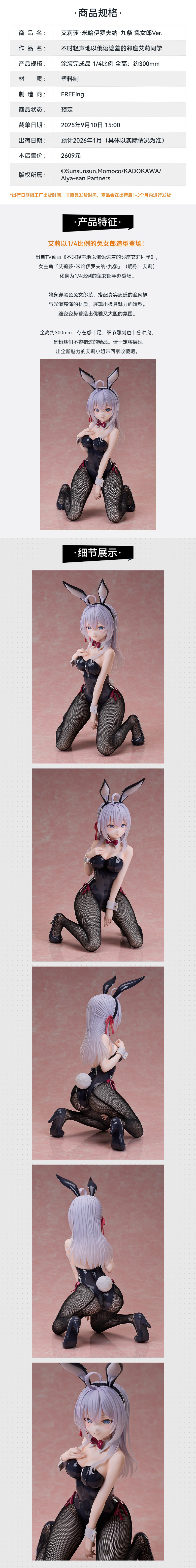 【GSC现货】1/4比例艾莉莎·米哈伊罗夫纳·九条 兔女郎Ver. 不时轻声地以俄语遮羞的邻座艾莉同学