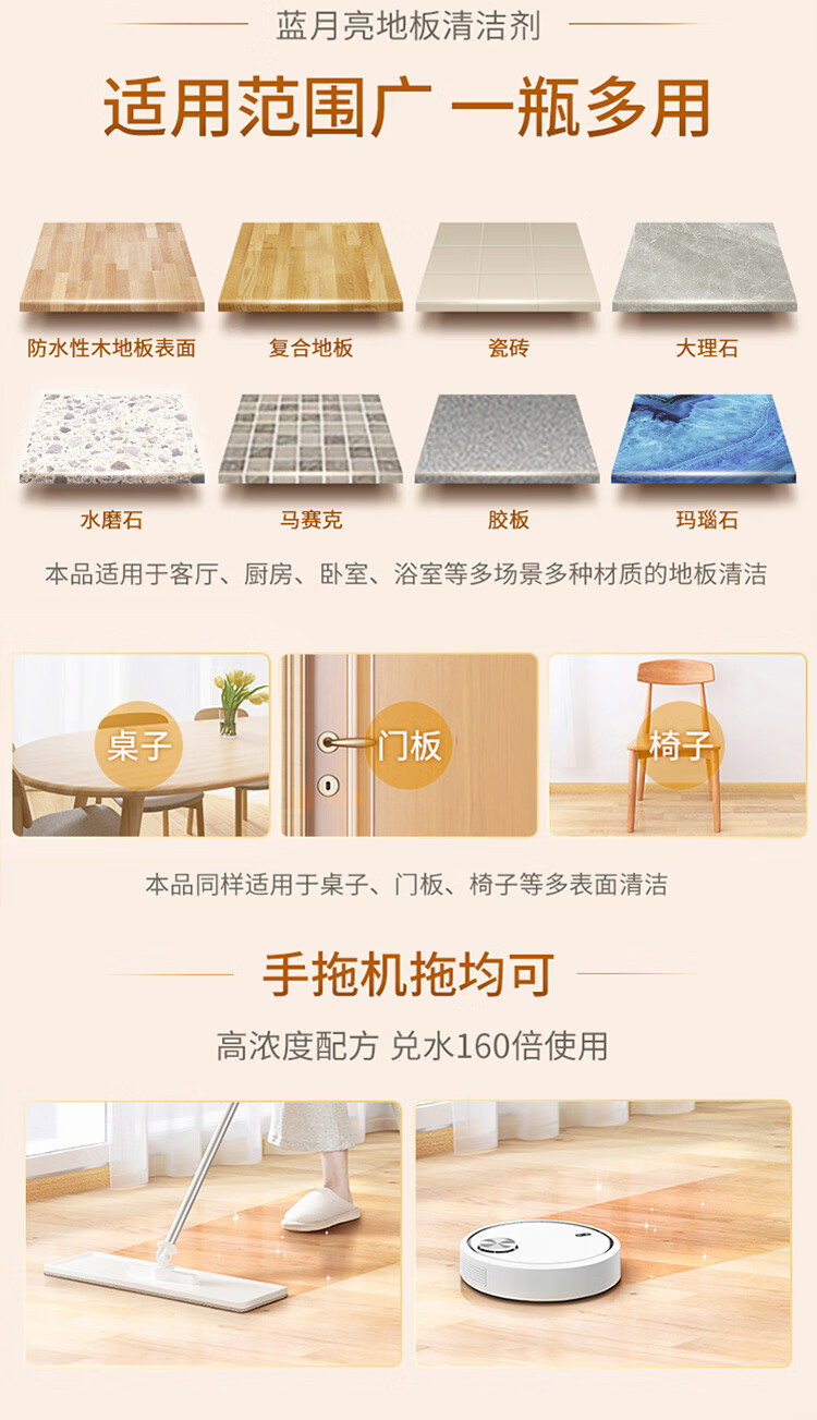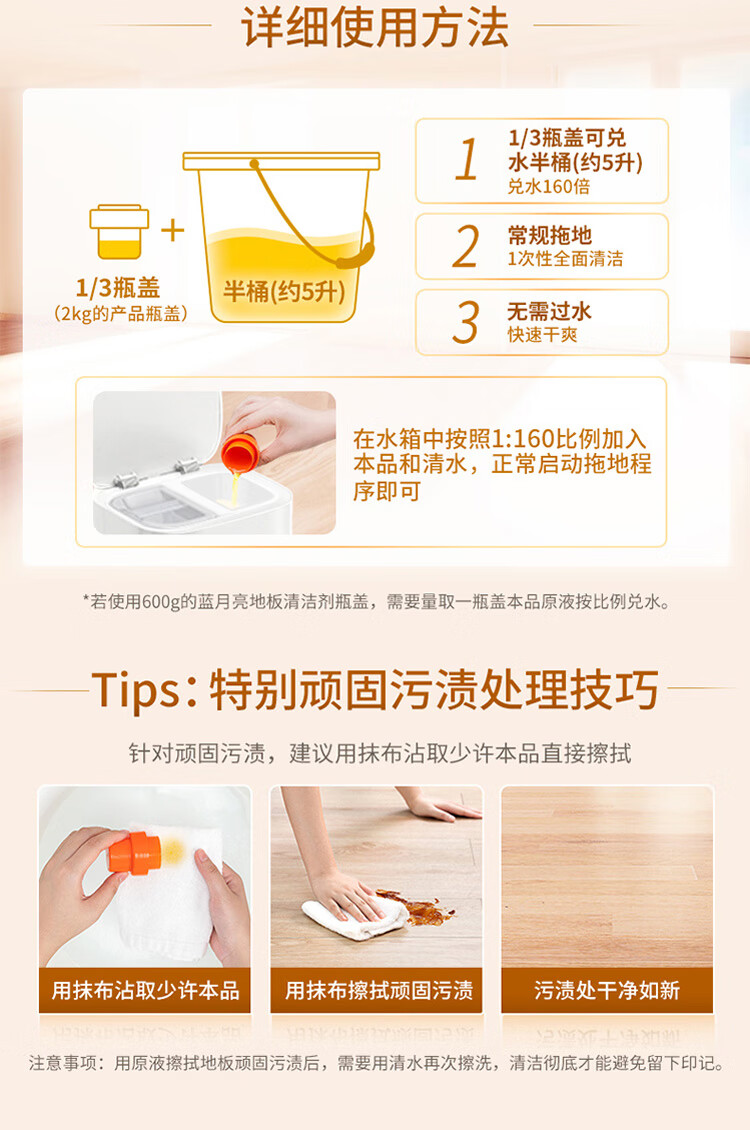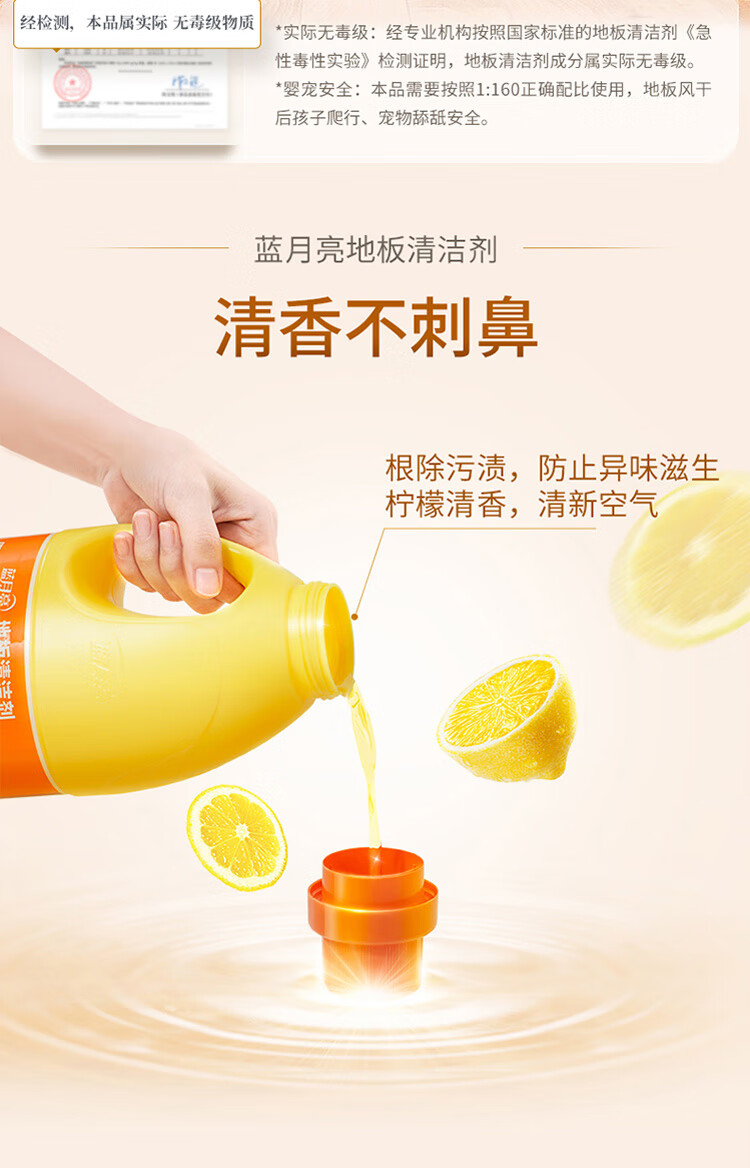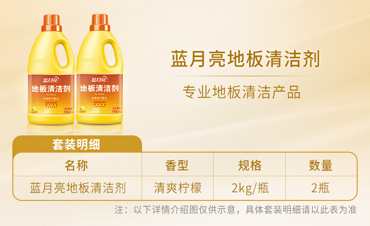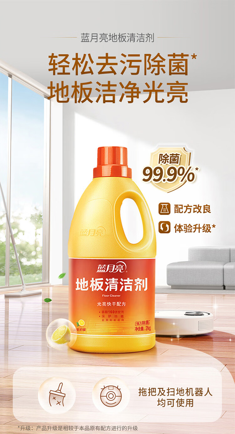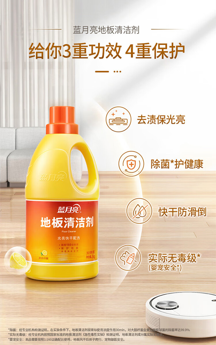 蓝月亮清洁剂_2kg*2瓶 实木地板瓷砖水泥地厕所除菌 地板净 柠檬香 【家庭装】