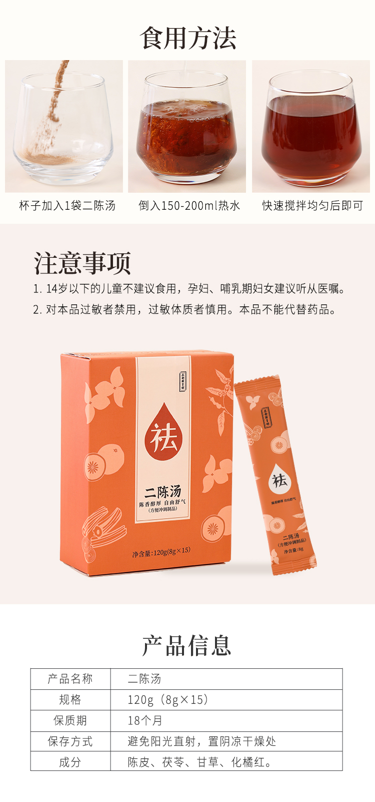 正安 二陈汤 陈香醇厚 自由舒气 120g (8gx15)