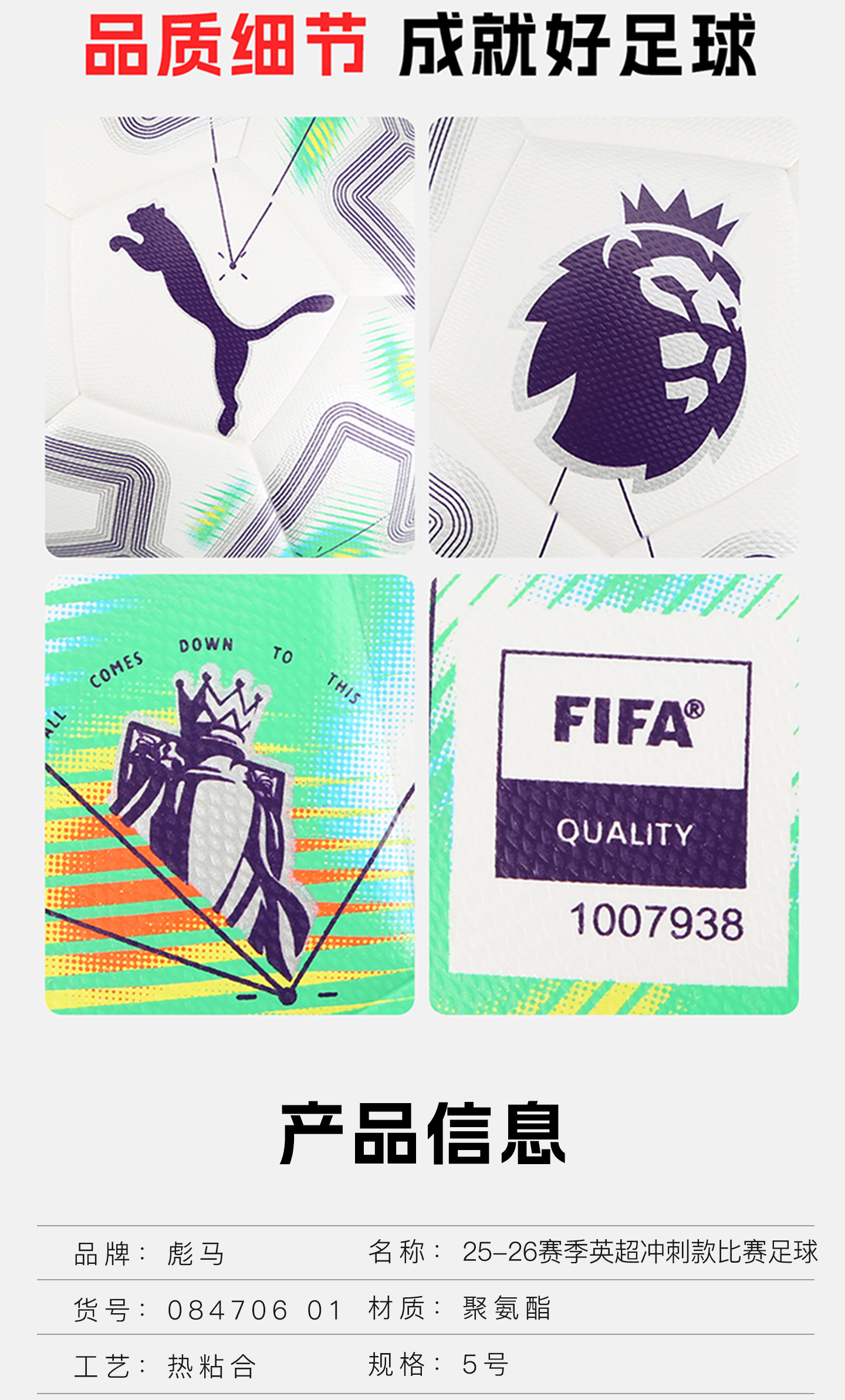 小李子彪马25-26赛季英超联赛冲刺款5号热粘合比赛足球084706 01