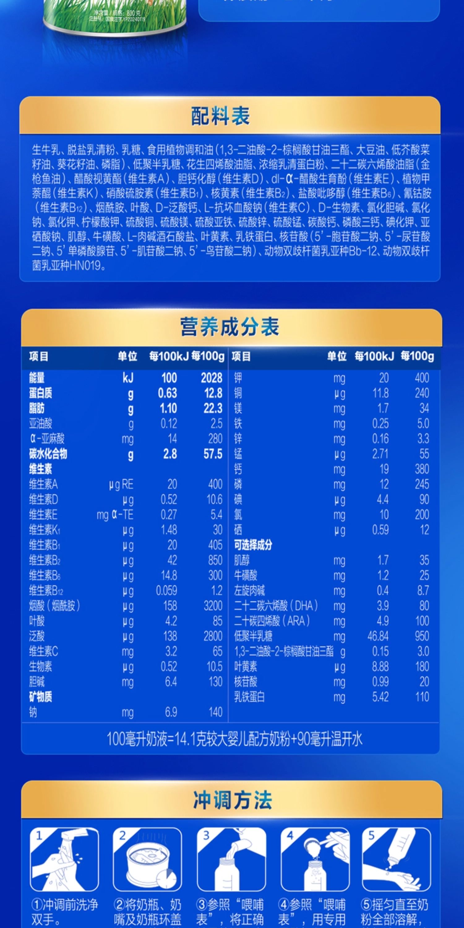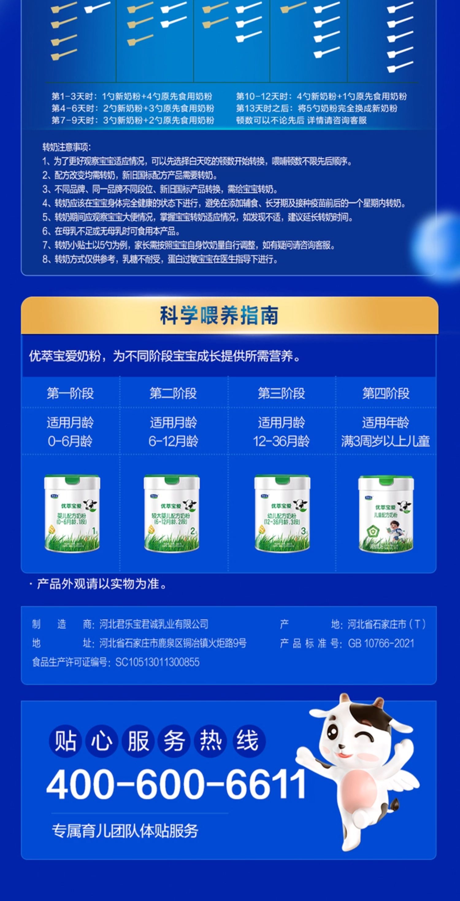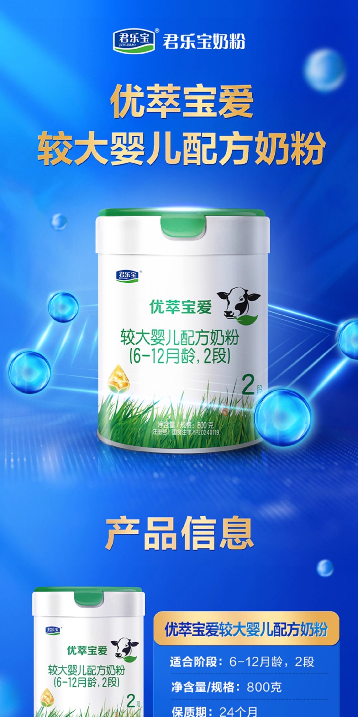 君乐宝优萃宝爱较大婴儿配方奶粉800g2段