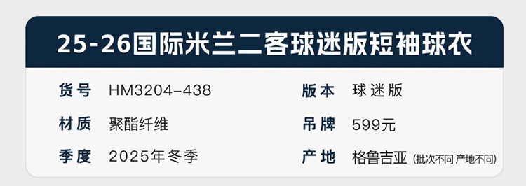 小李子NIKE耐克25-26赛季国际米兰球迷版二客第三球衣HM3204-438