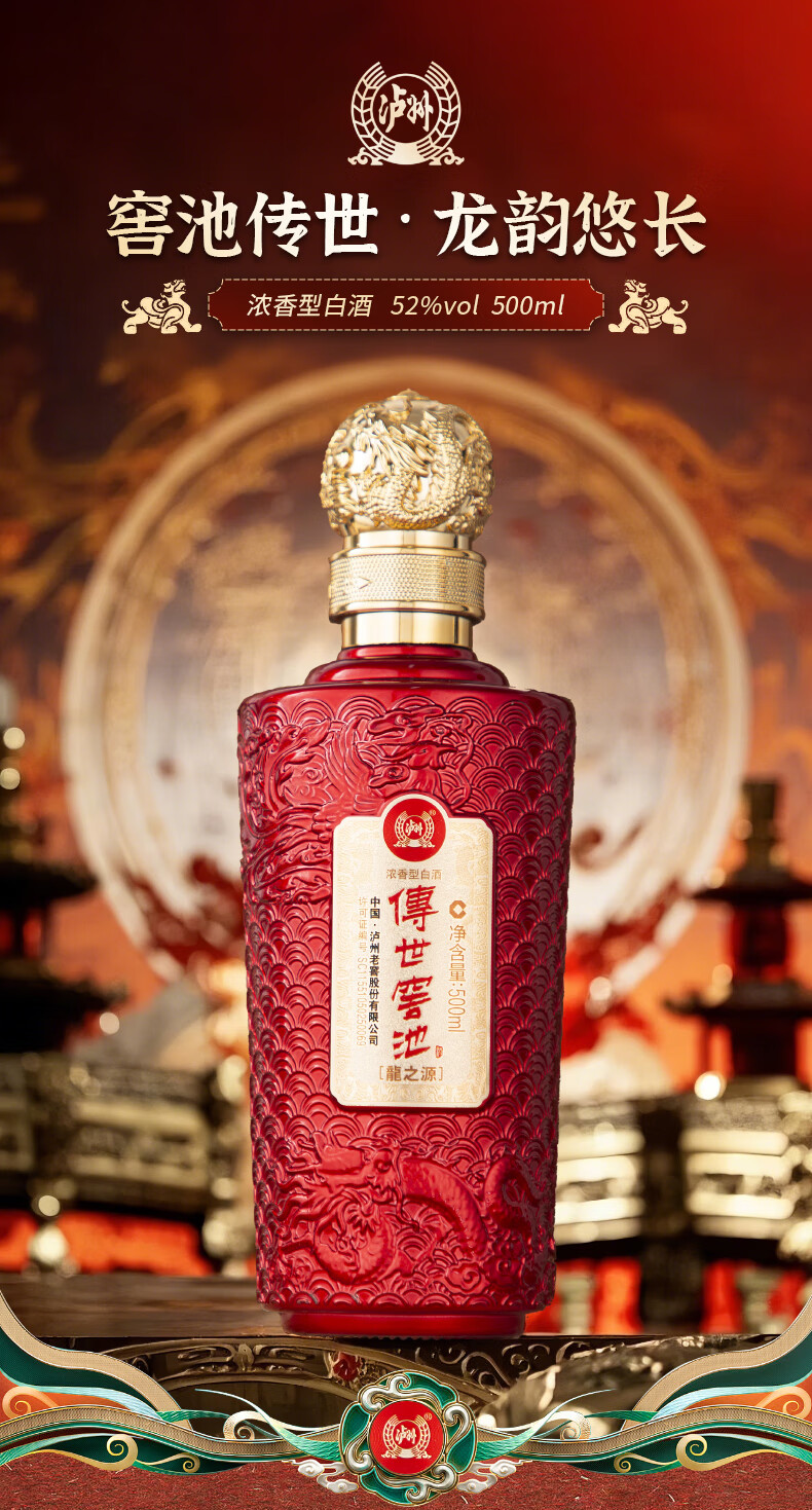 泸州老窖【传世窖池-龙之源】52度浓香型白酒 原厂封条 酒香浓郁 入口醇厚柔绵 回味悠长 龙韵包装瓶 高端上档次