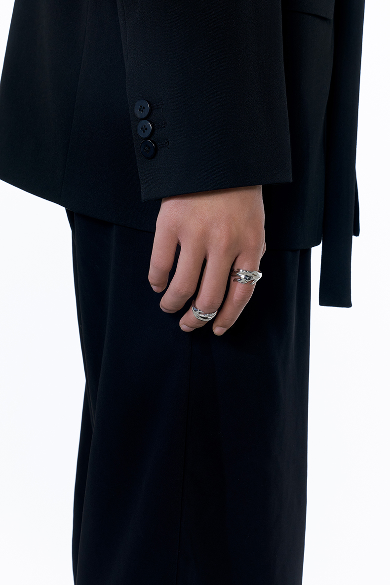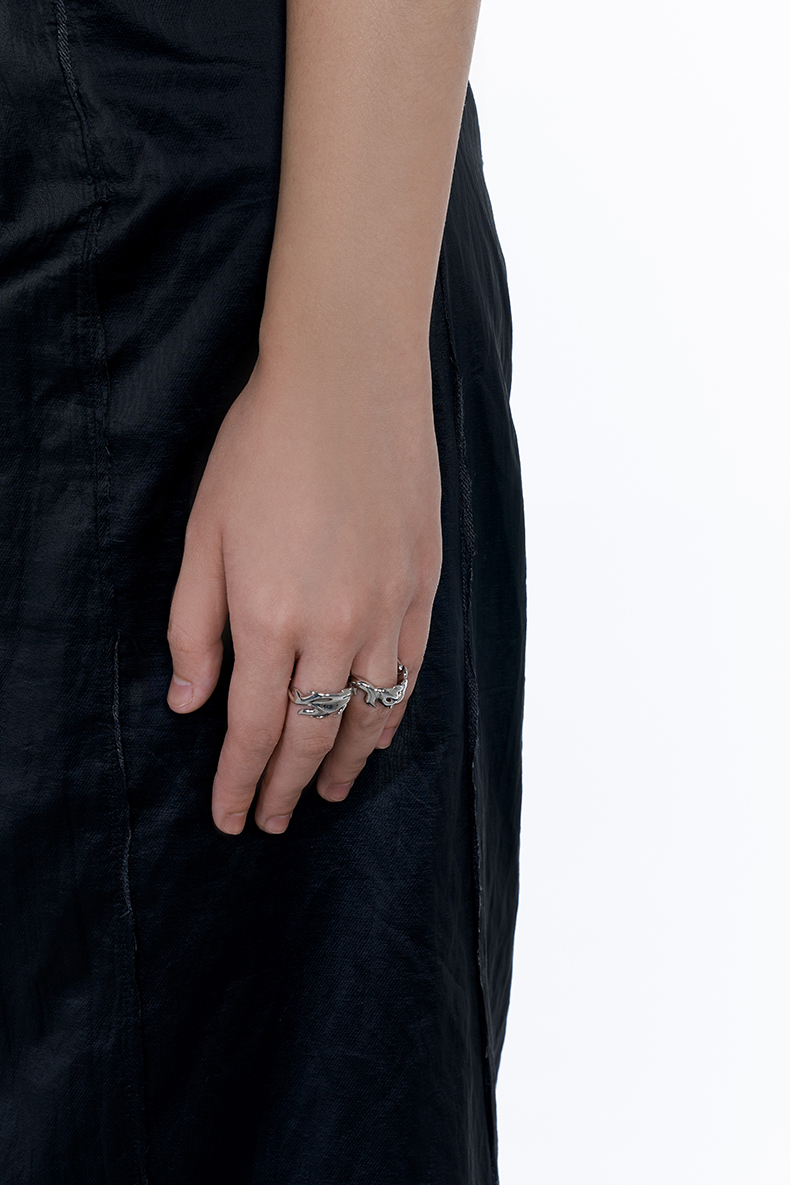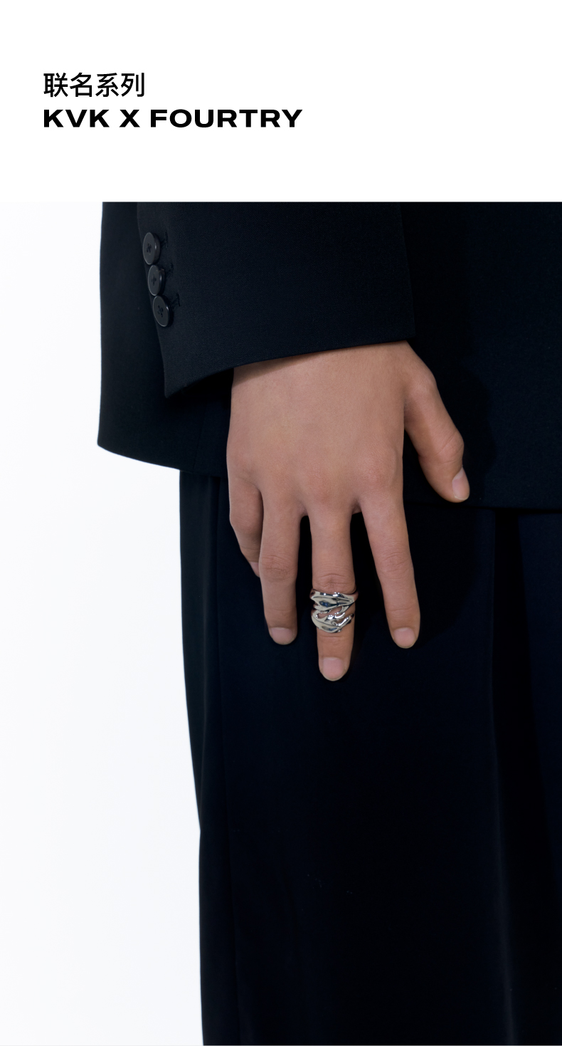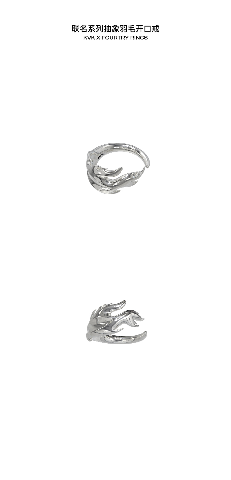 KVK×fourtry 潮流合伙人2 抽象羽毛开口戒指2021新款925银戒指