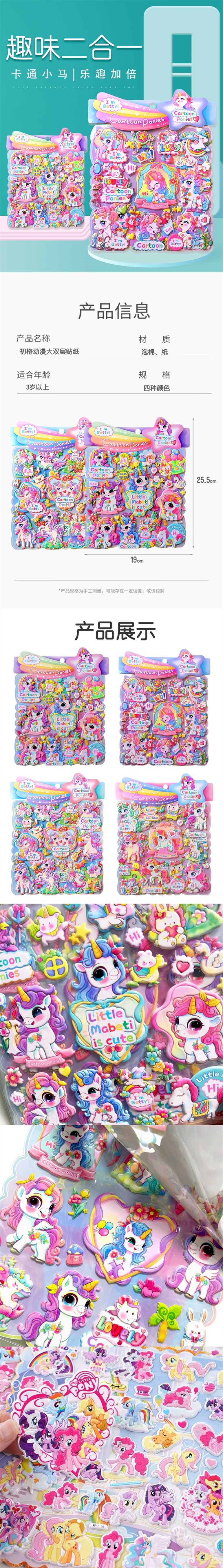 小马宝莉大号双层泡棉立体贴纸1板 卡通手帐贴3d立体泡泡贴益智玩具礼物女孩奖励粘贴画