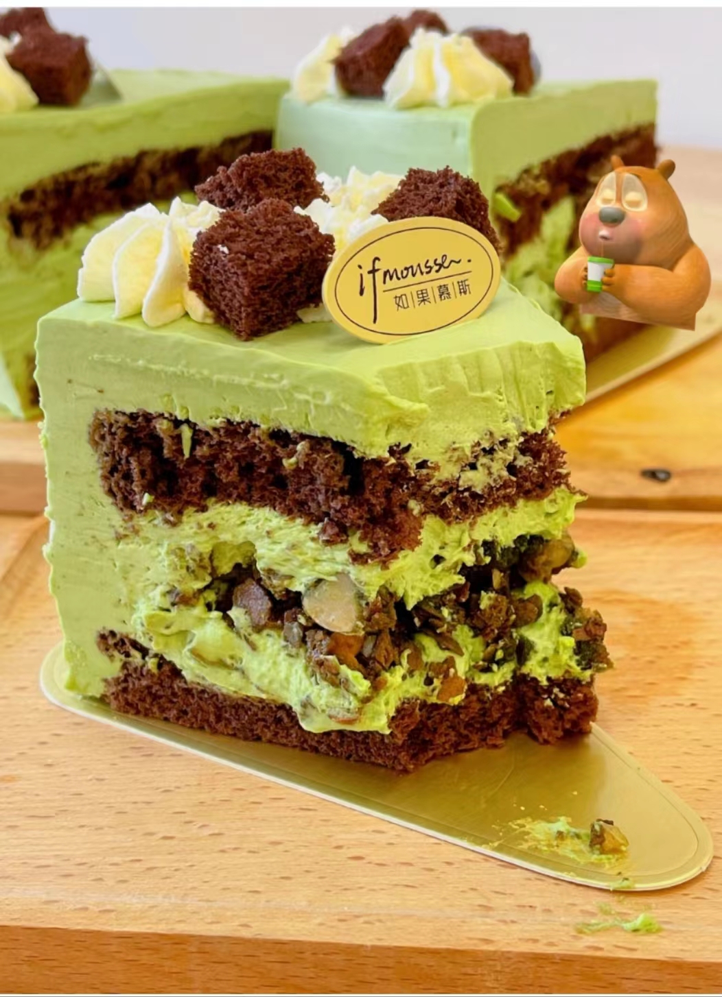 这是一款满满的诚意之作 一口下去满是高级的味道 口感超级丰富 开心果奶油搭配摩卡坯 里面肉眼可见的超大颗榛子盒巧克力薄脆 入口很丝滑搭配脆脆的口感 幸福感爆棚