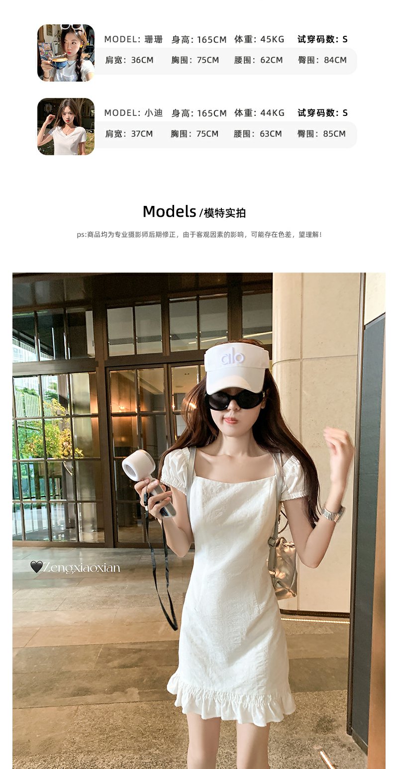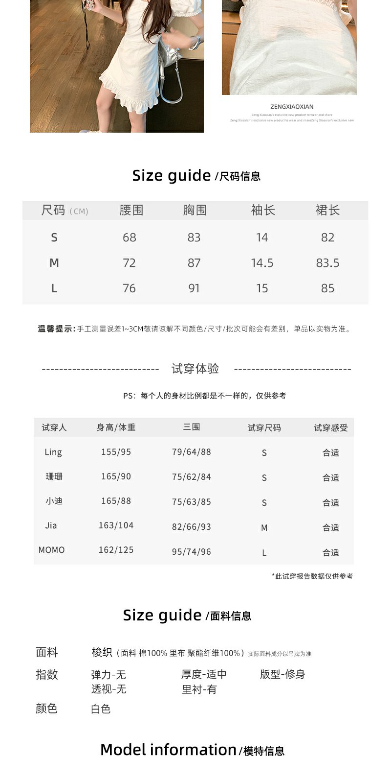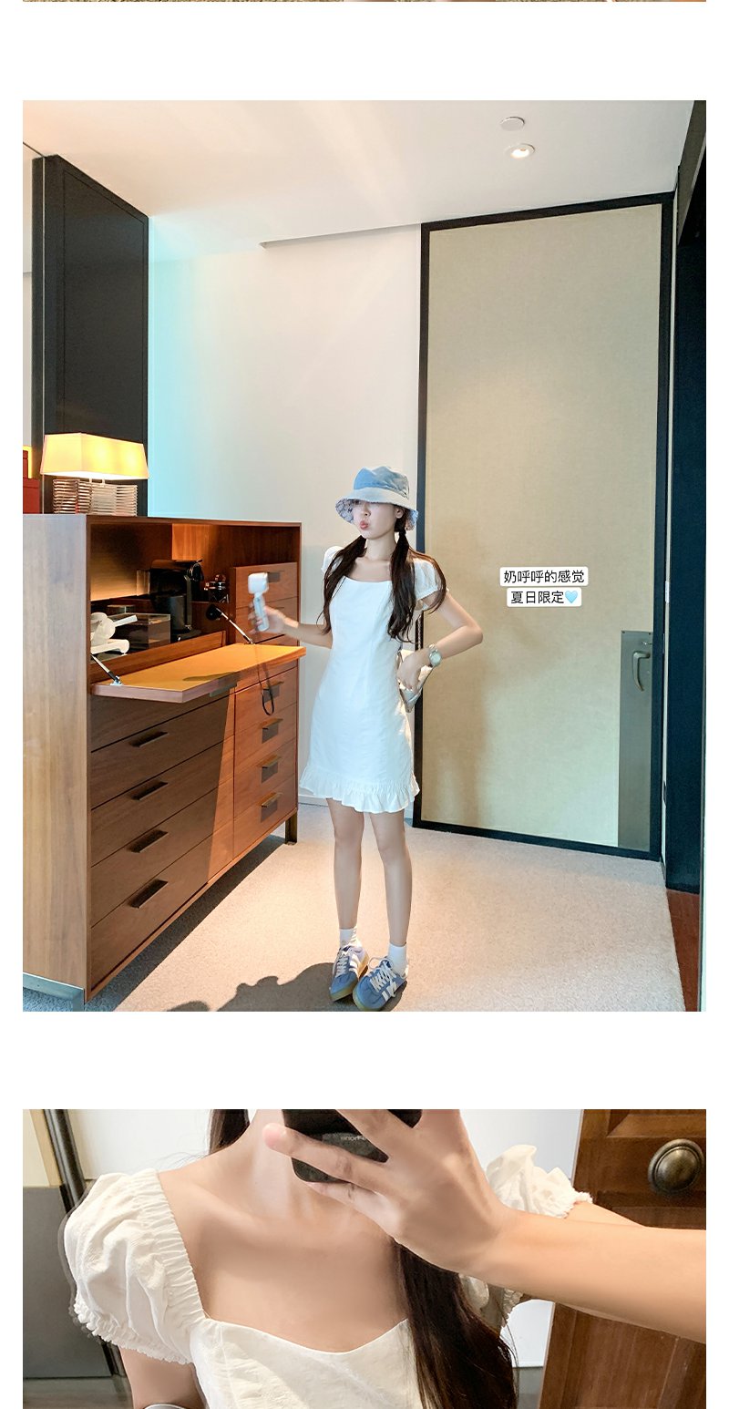 <曾小咸推荐>韩系方领泡泡袖收腰显瘦连衣裙