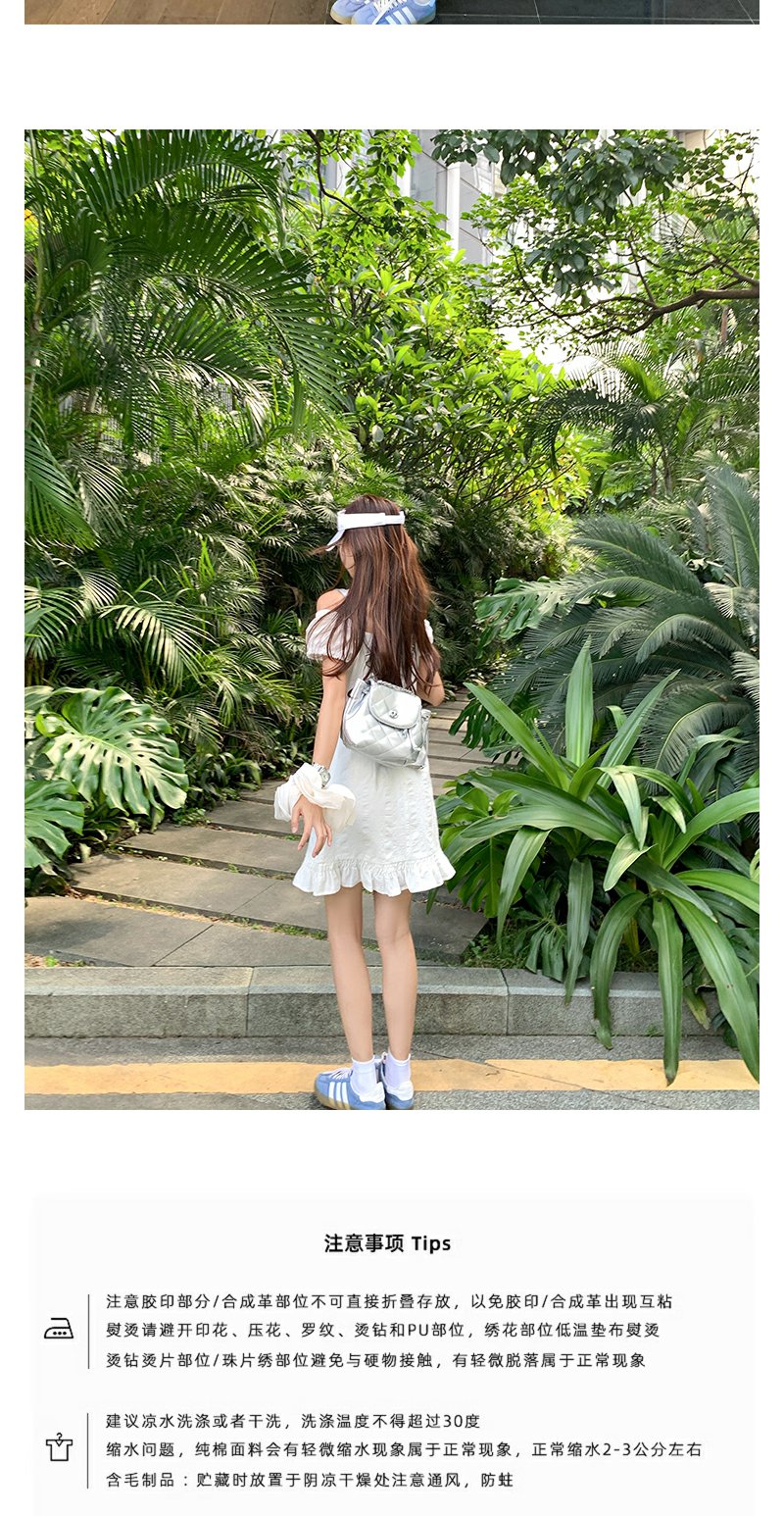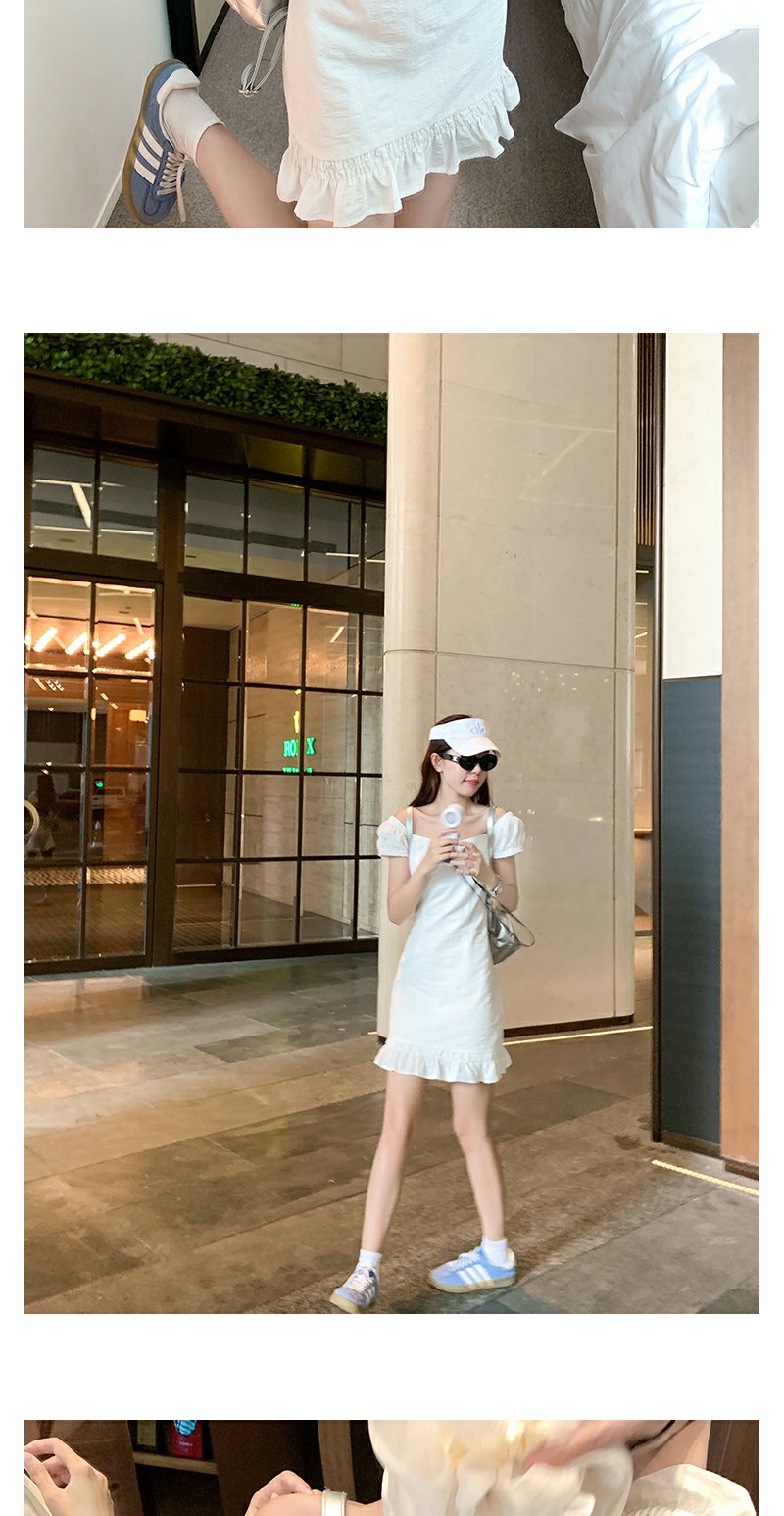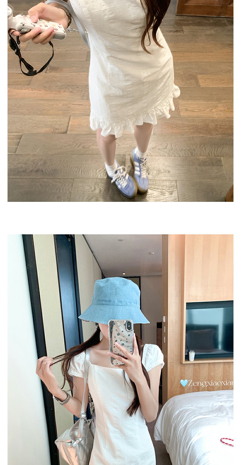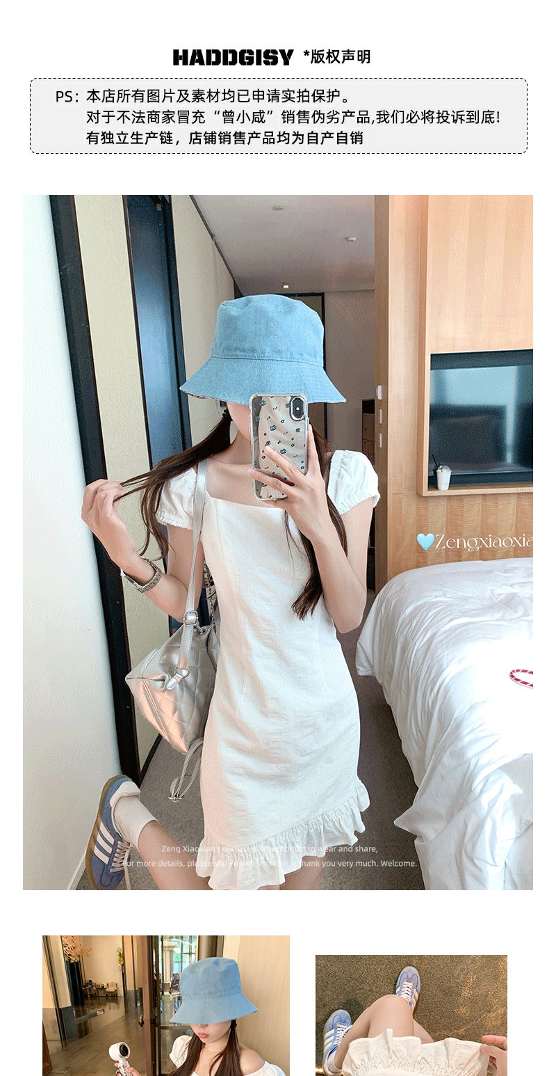 <曾小咸推荐>韩系方领泡泡袖收腰显瘦连衣裙