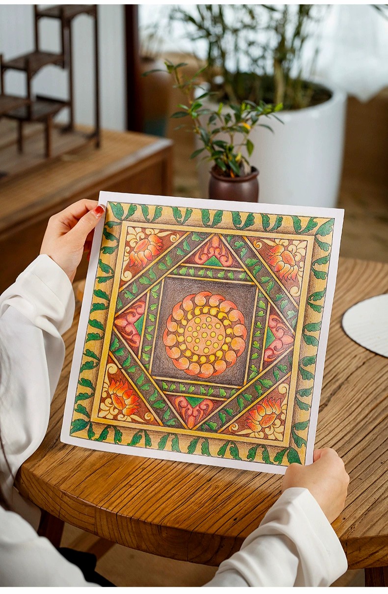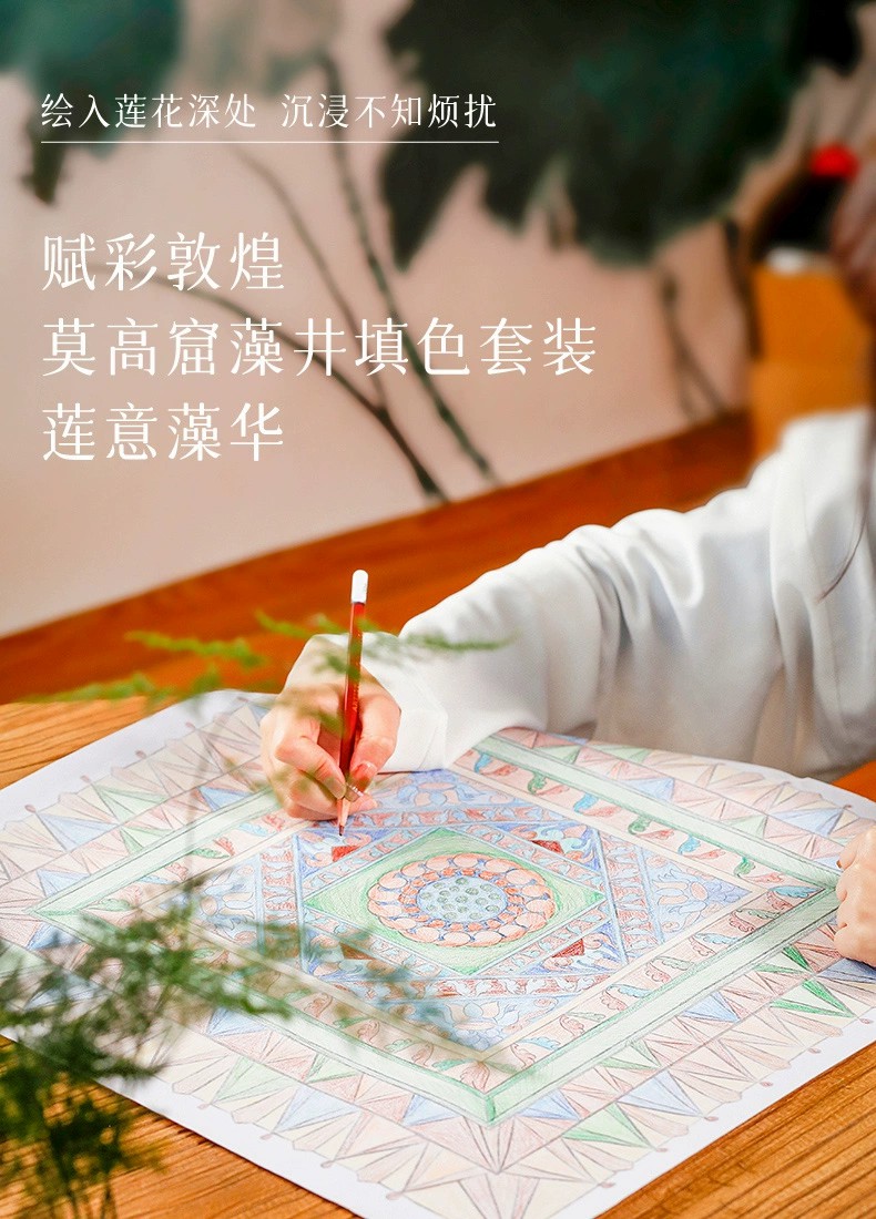 敦煌研究院 赋彩敦煌藻井绘画套装 diy创作减压填色高清还原壁画