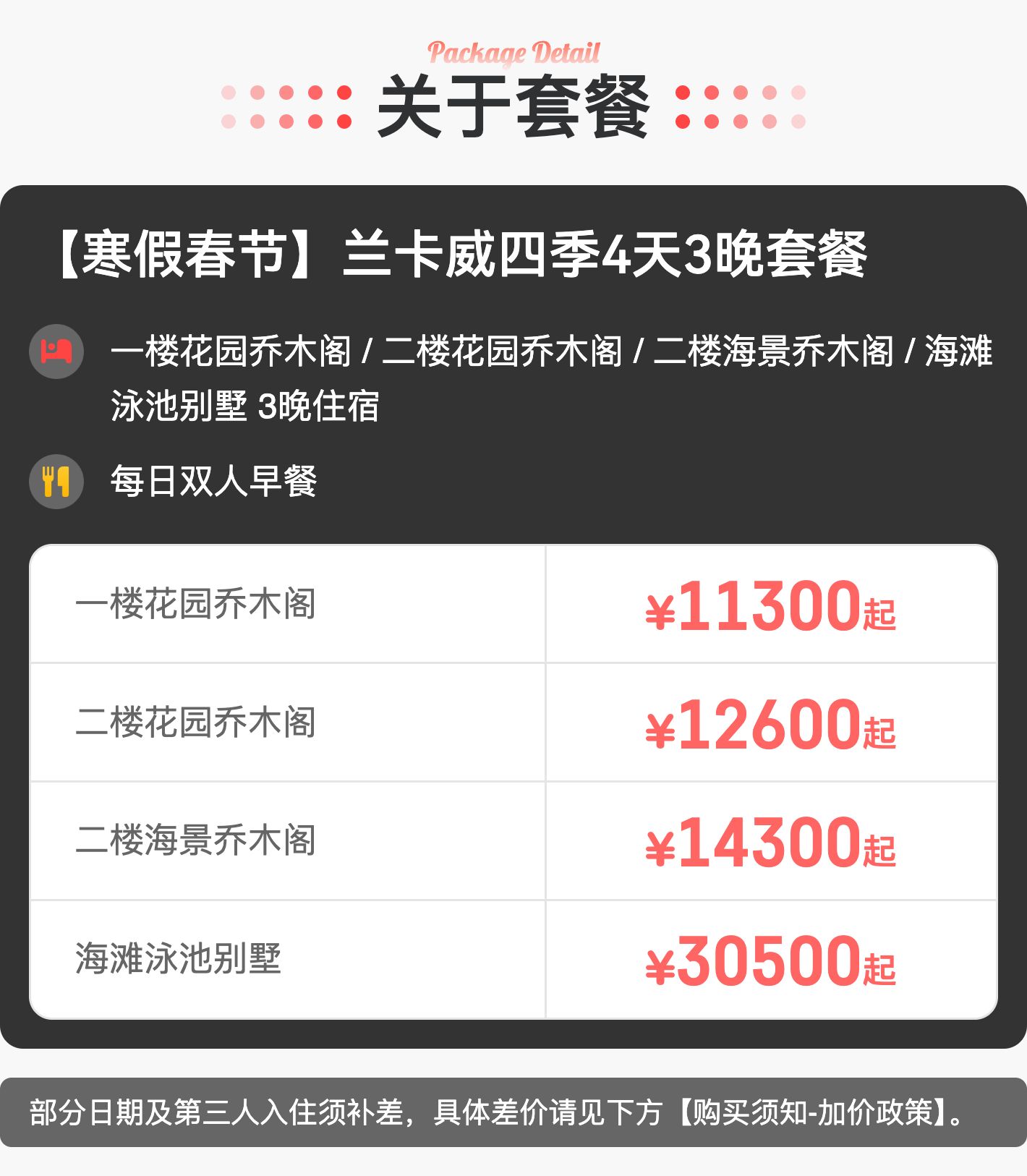 4天3晚【马来西亚兰卡威四季】寒假/春节可用!入住花园乔木阁/海滩泳池别墅,含每日双早,赏TOP级别日落美景,亲子推荐~