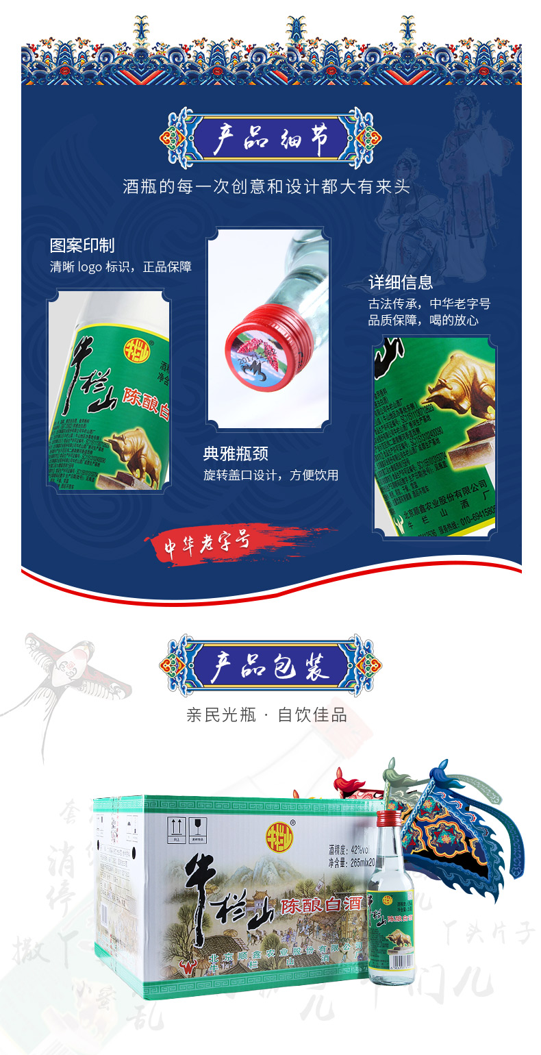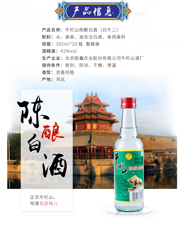 牛栏山 白酒 陈酿白酒 42度 265ml*20瓶 整箱装(白牛二/牛白瓶)