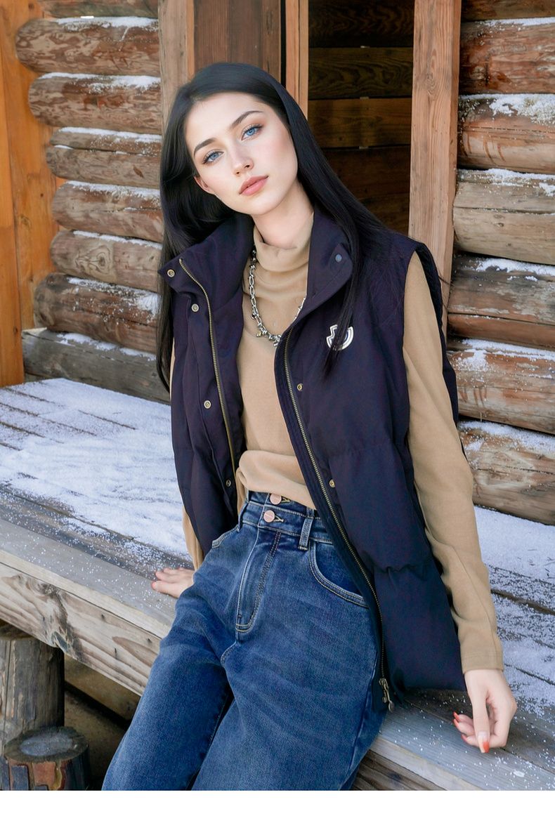 谜底羽绒马甲女2025秋新款百搭纯色立领鸭绒羽绒服无袖257MY8809