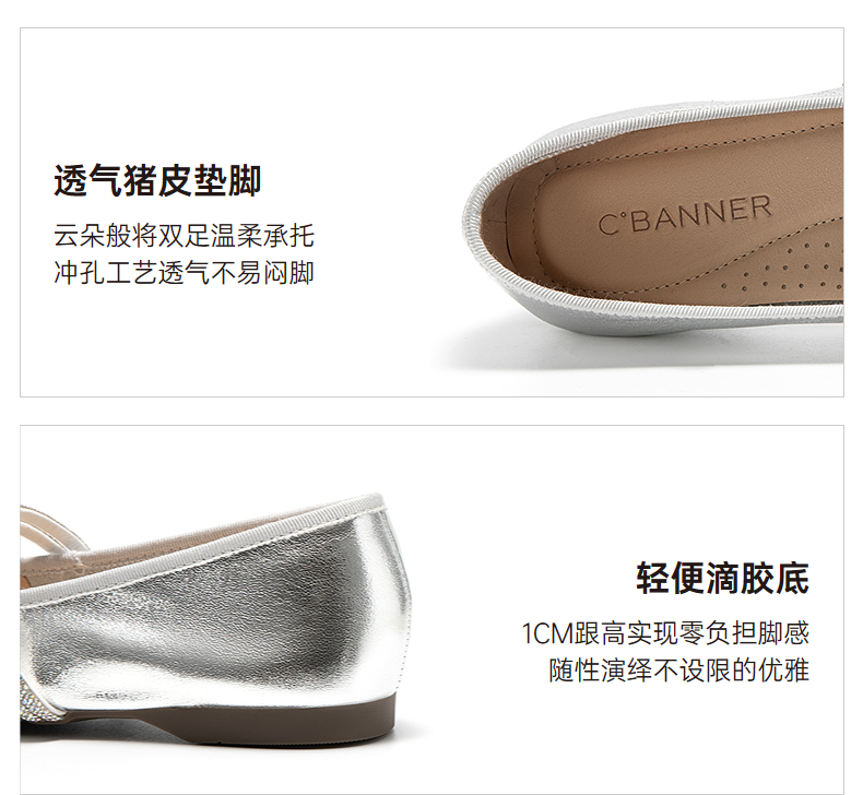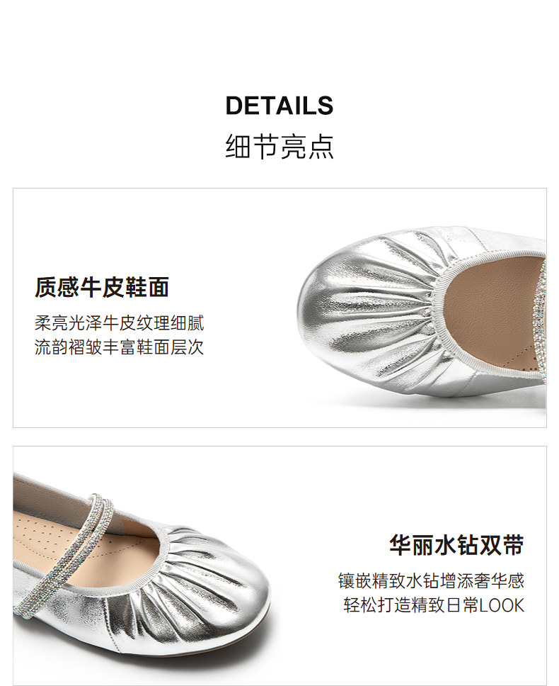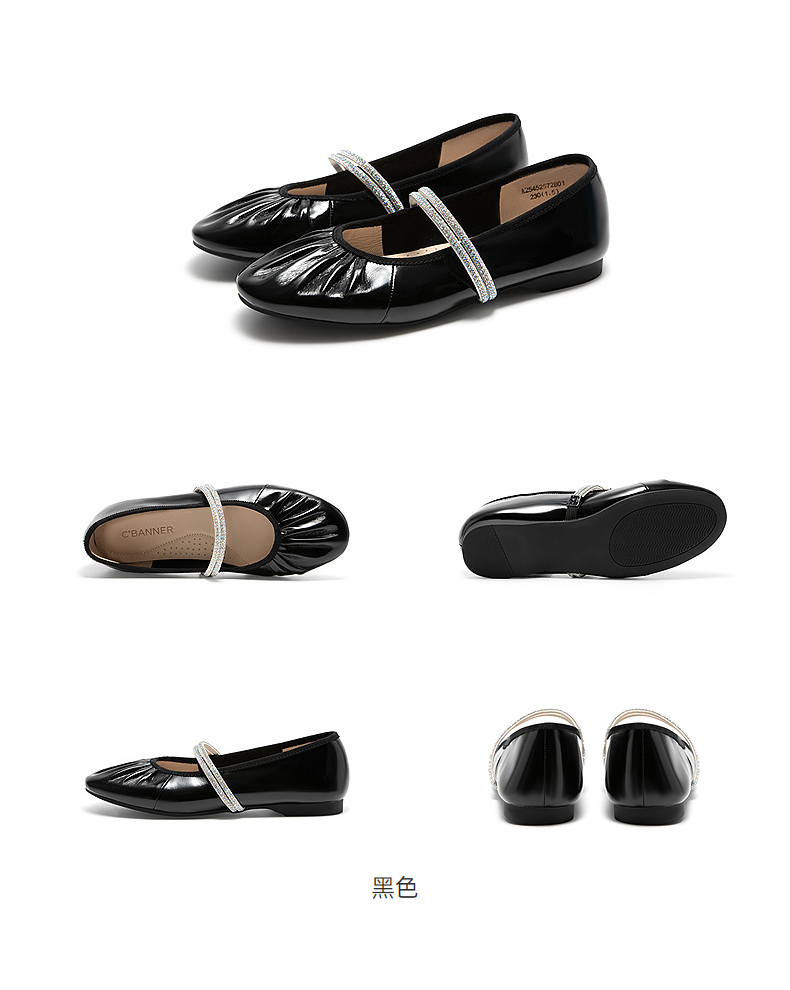 千百度褶皱钻带玛丽珍鞋女平底休闲单鞋不累脚晚晚鞋A25452572
