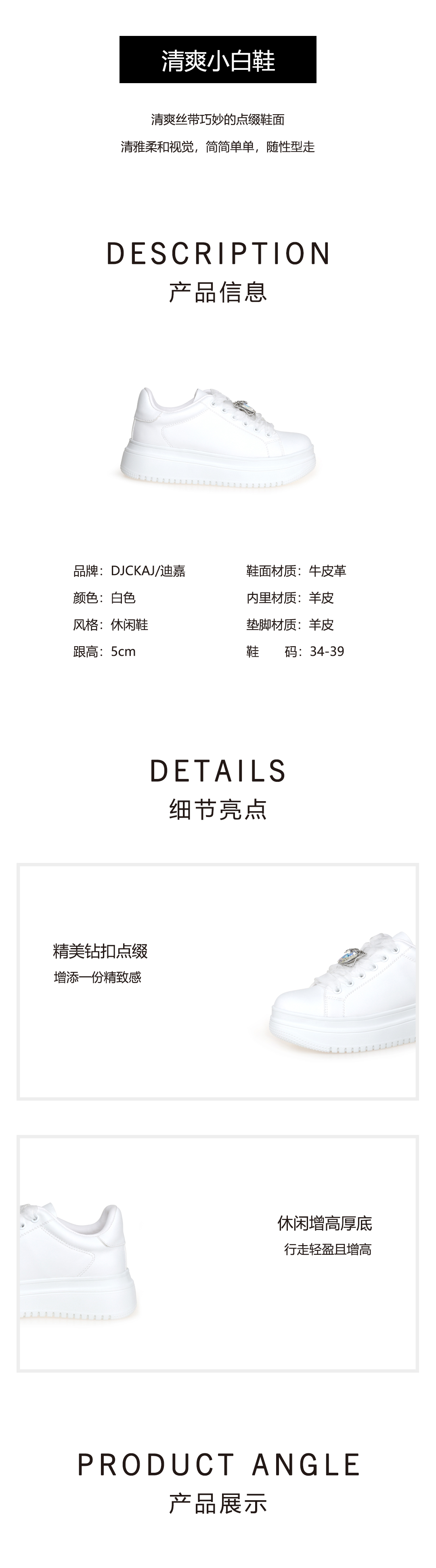 豪麟名鞋奥莱迪嘉女鞋时尚休闲鞋牛皮革DJJGA51WX007白色 原价1960元
