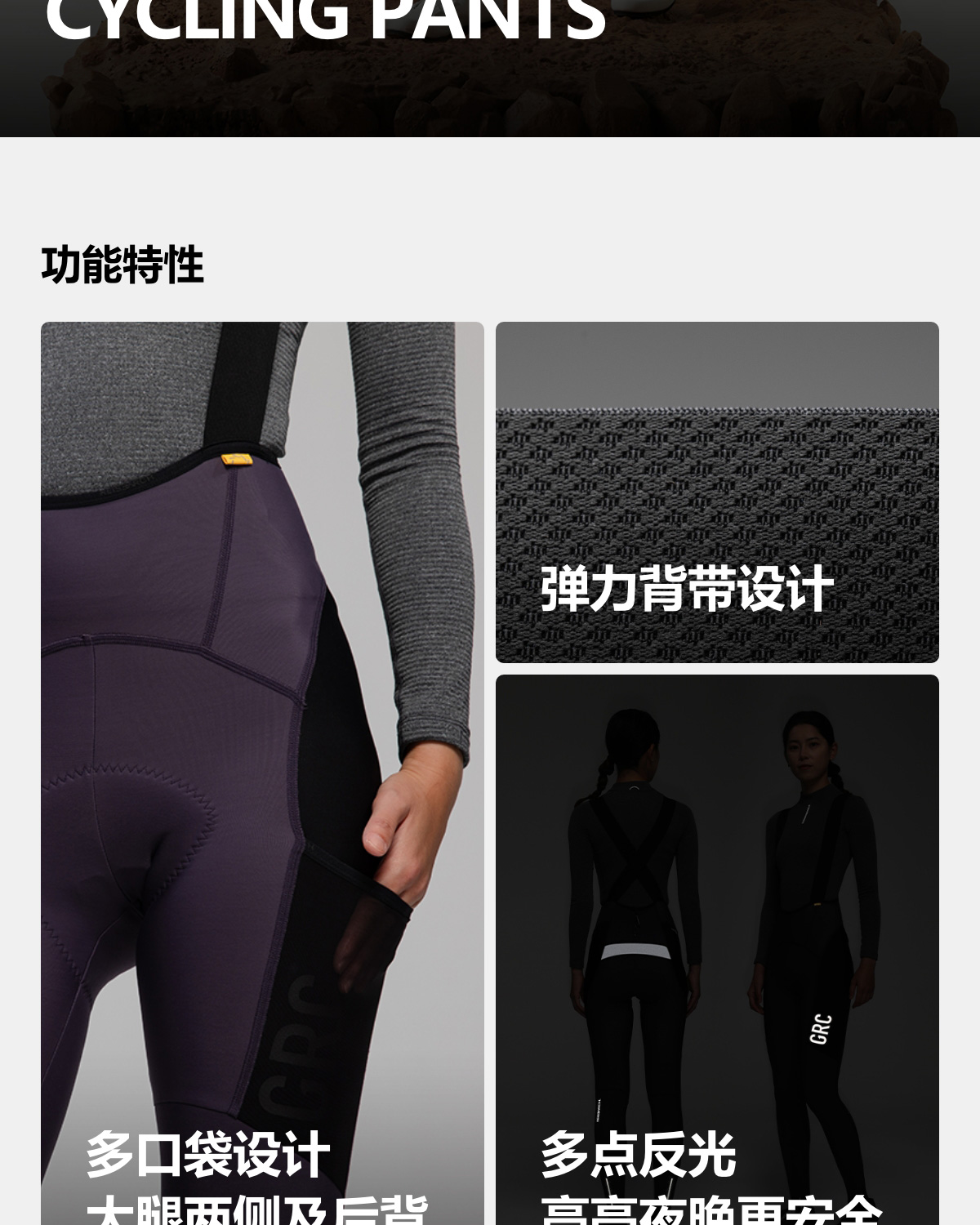 GRC桀骜无尽秋冬新款女士RESEARCH多功能保暖背带自行车骑行长裤