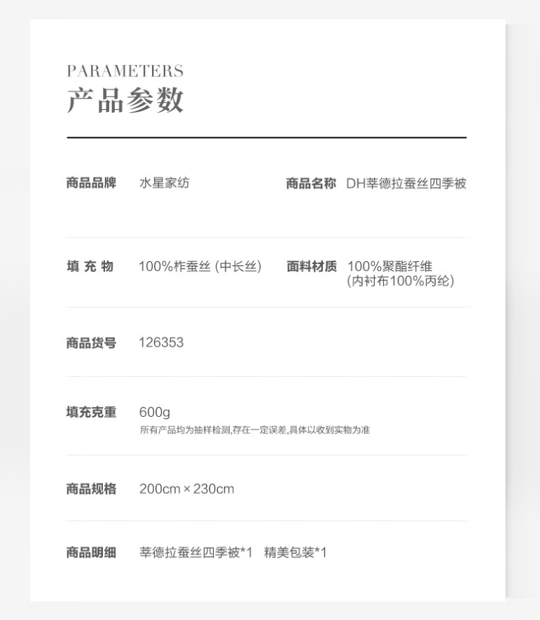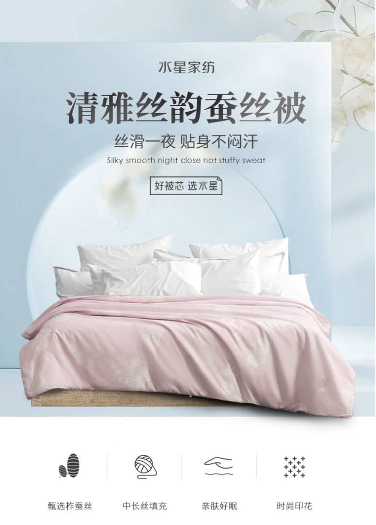 【水星家纺蚕丝被】春秋被双人被子DH【线下专柜同款】 清雅丝韵蚕丝被HD 200X230cm/条