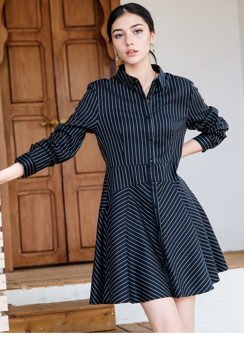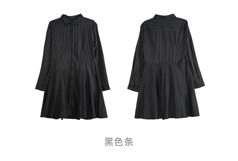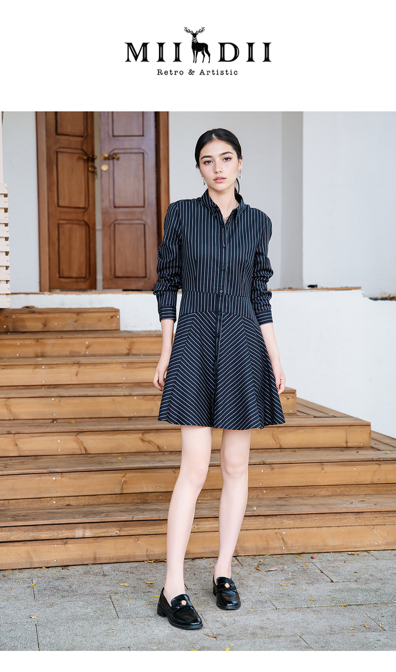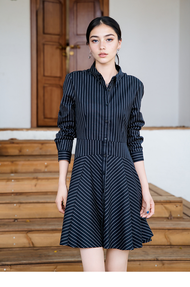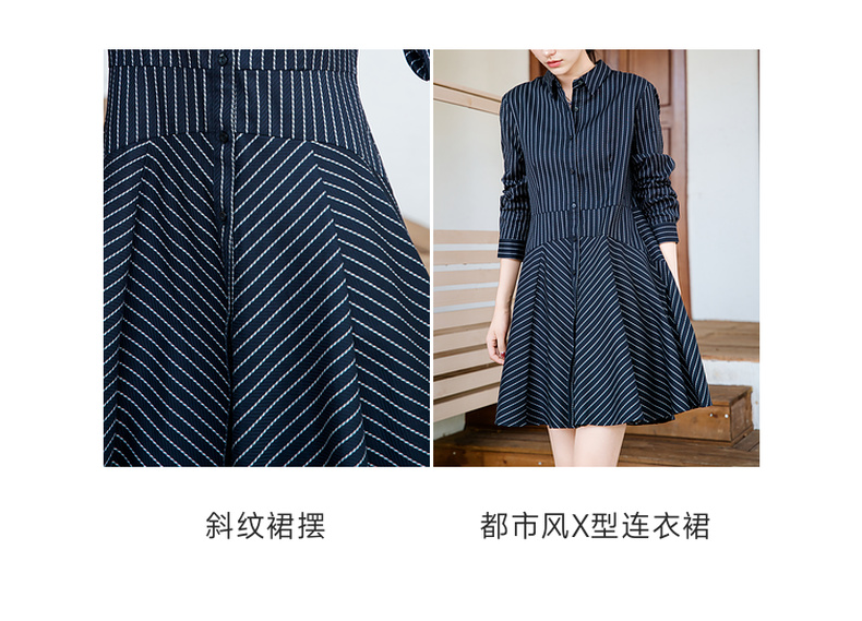 谜底条纹连衣裙长袖2025秋新款复古通勤设计感伞裙短裙257ML7813