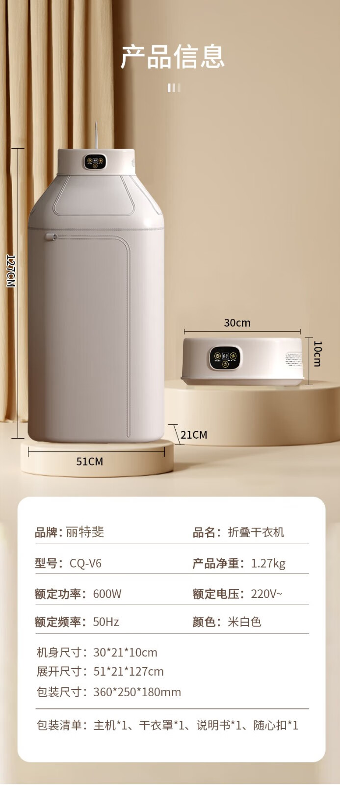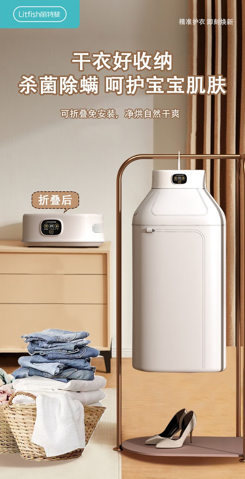 【小家电】丽特斐烘干机家用小型婴儿烘衣服折叠便携式干衣机 CQ-V6 HF