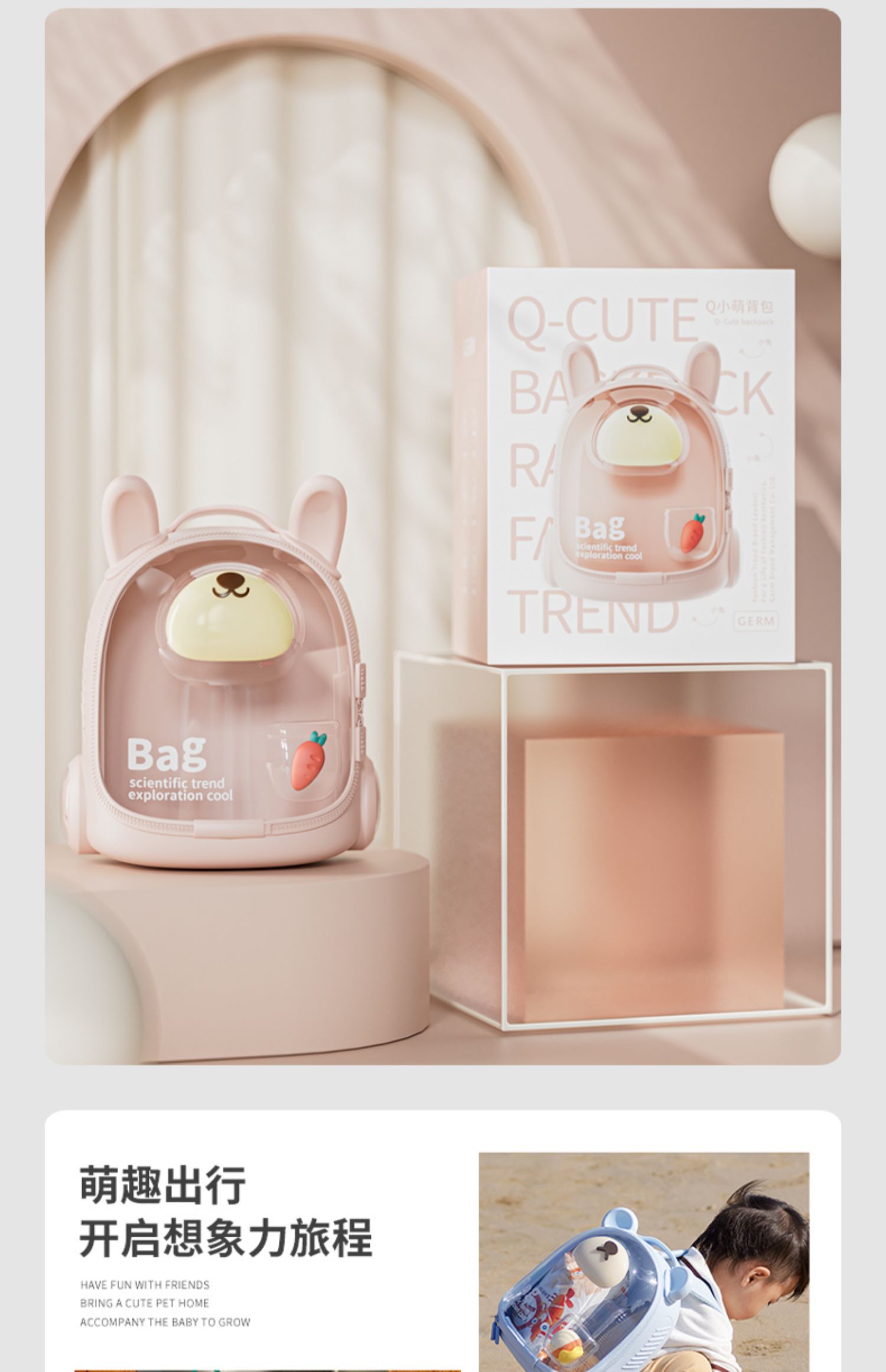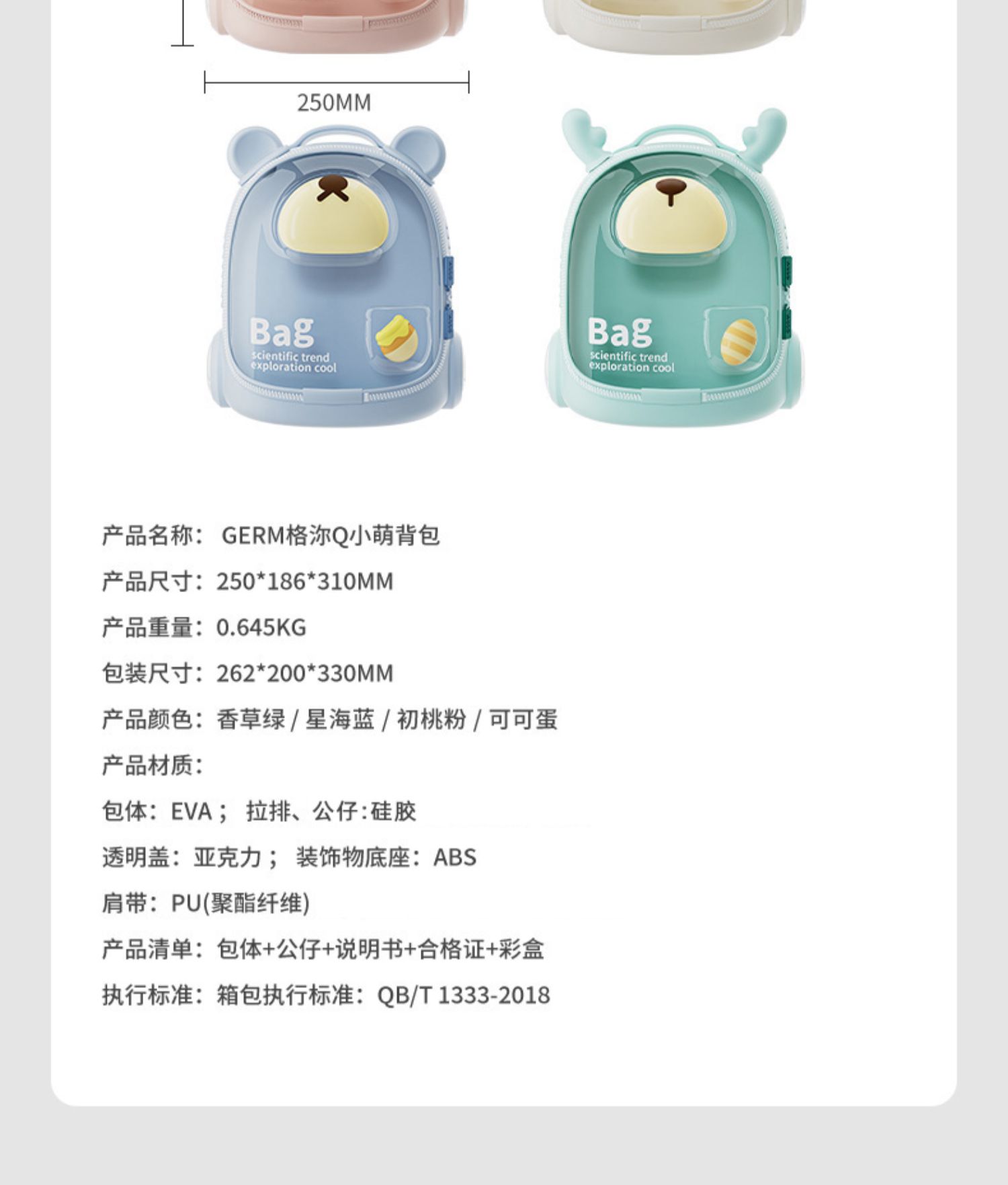 GERM儿童书包女孩幼儿园男孩防水护脊双肩包一到三年级宝宝背包 月销 80
