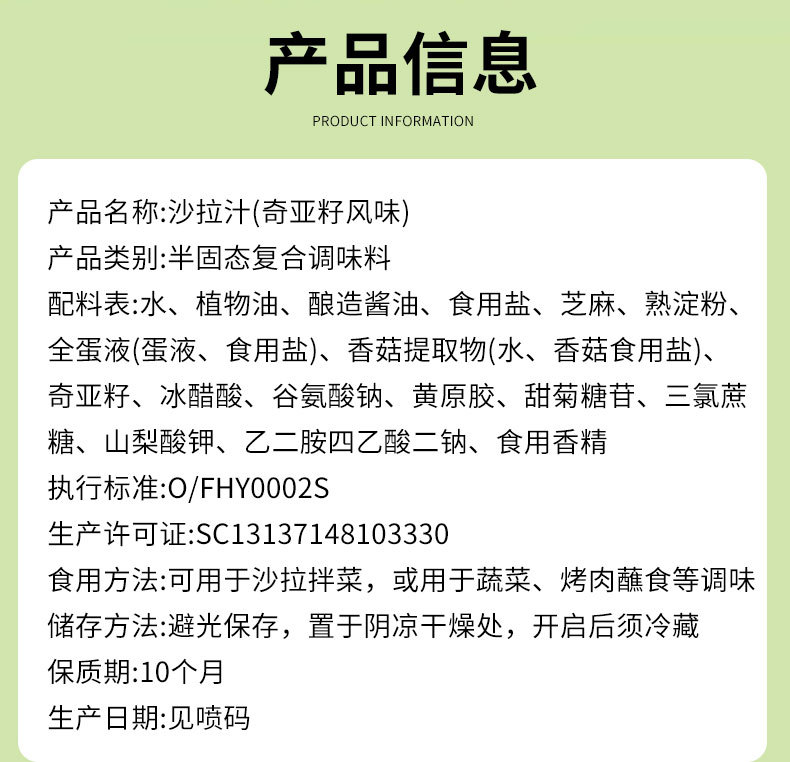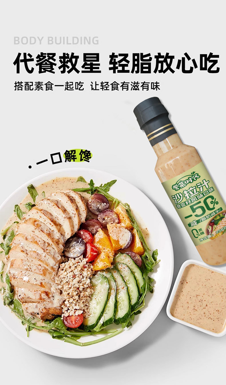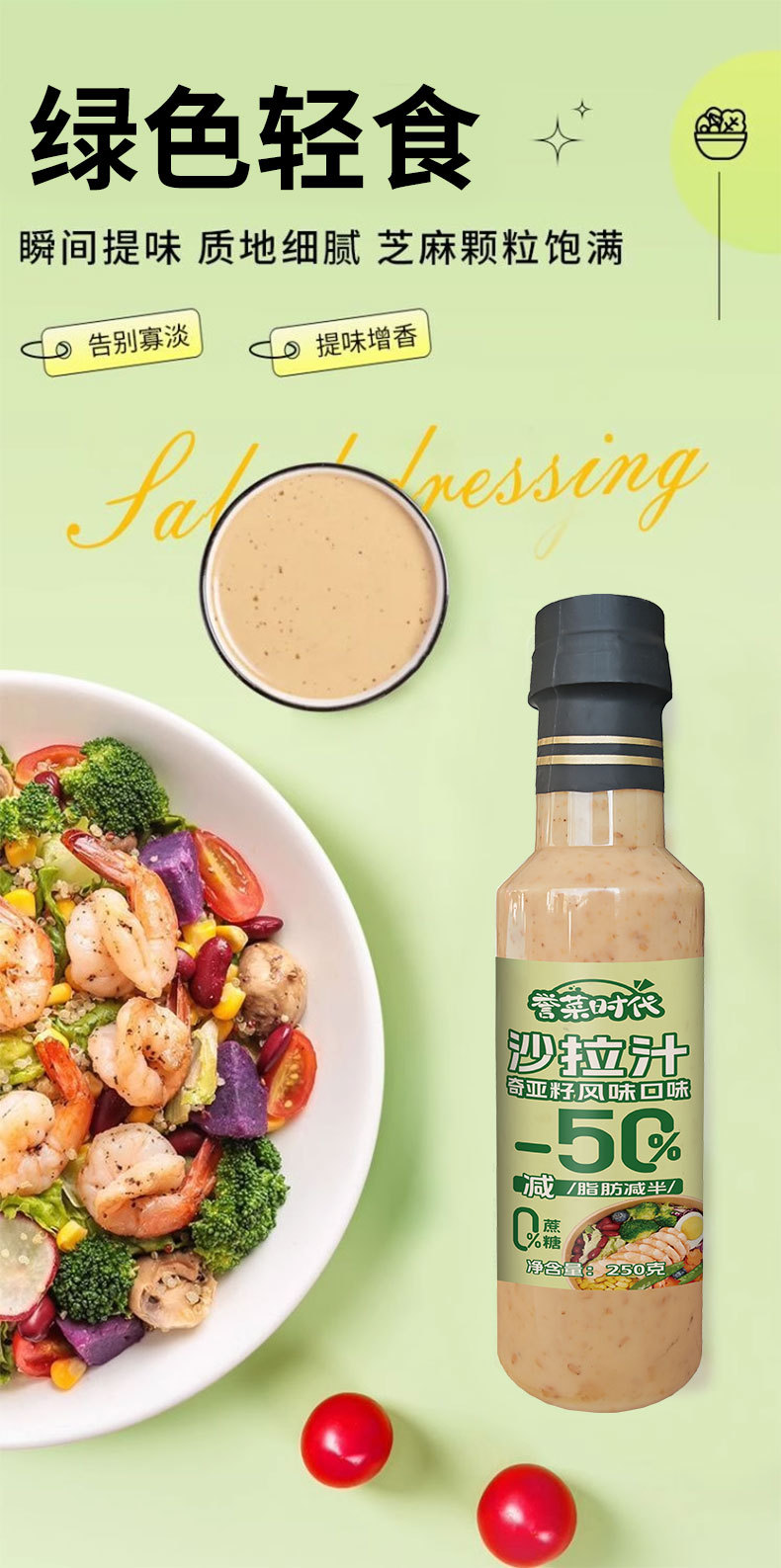 奇亚籽沙拉汁蔬菜沙拉酱大拌菜水果芝麻味千岛酱奇亚籽芝麻沙拉汁轻食餐酱料