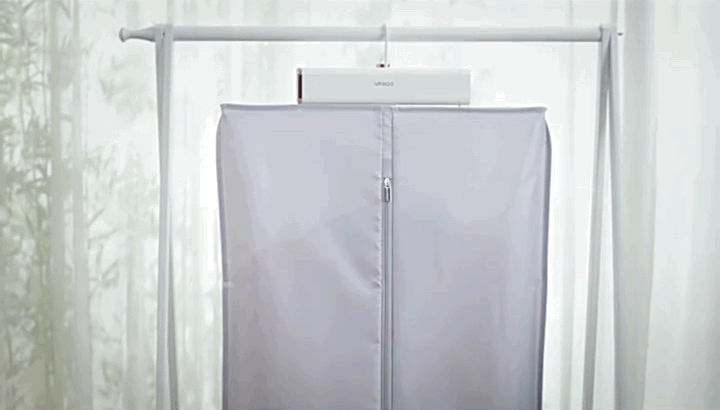 挂起来之后,一键启动,30min自动烘干,衣物干爽舒适直接就能穿上身。