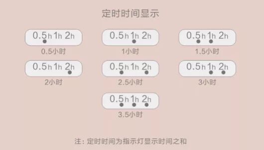 它有0.5-3.5h之间的七个档位定时,到点自动断电。