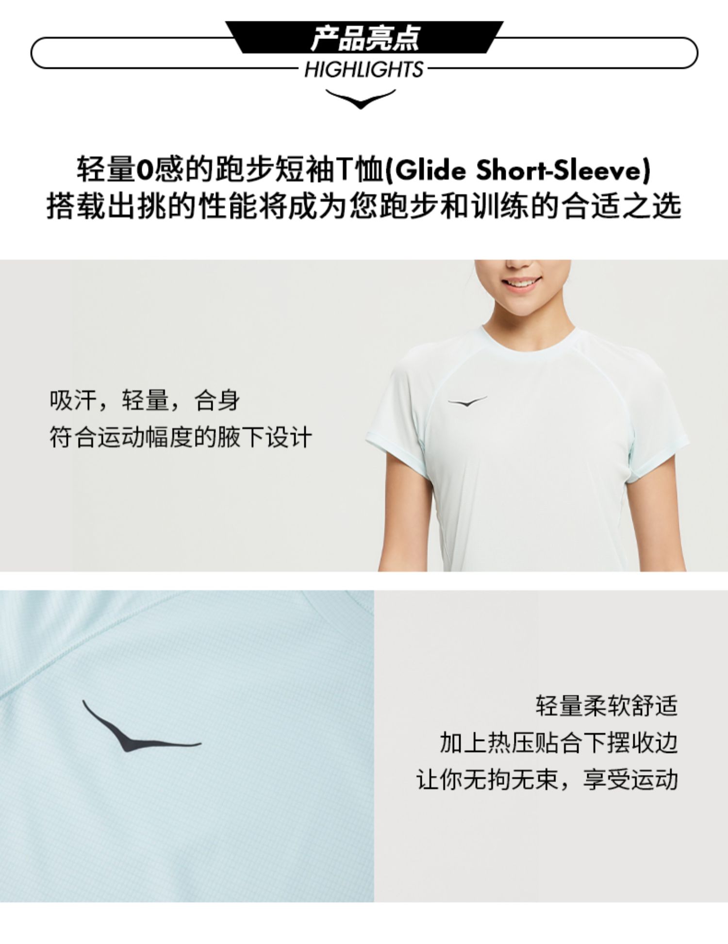 HOKA ONE ONE 女款短袖运动T恤Glide Short Sleeve吸湿透气舒适