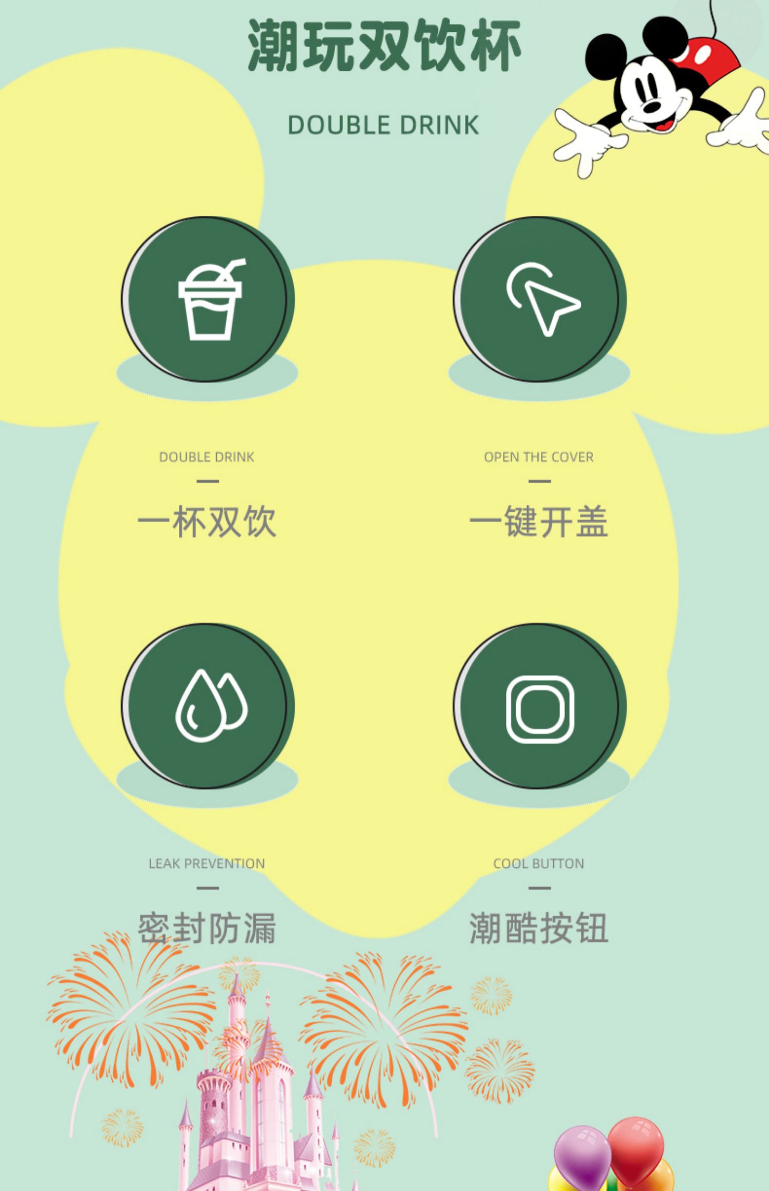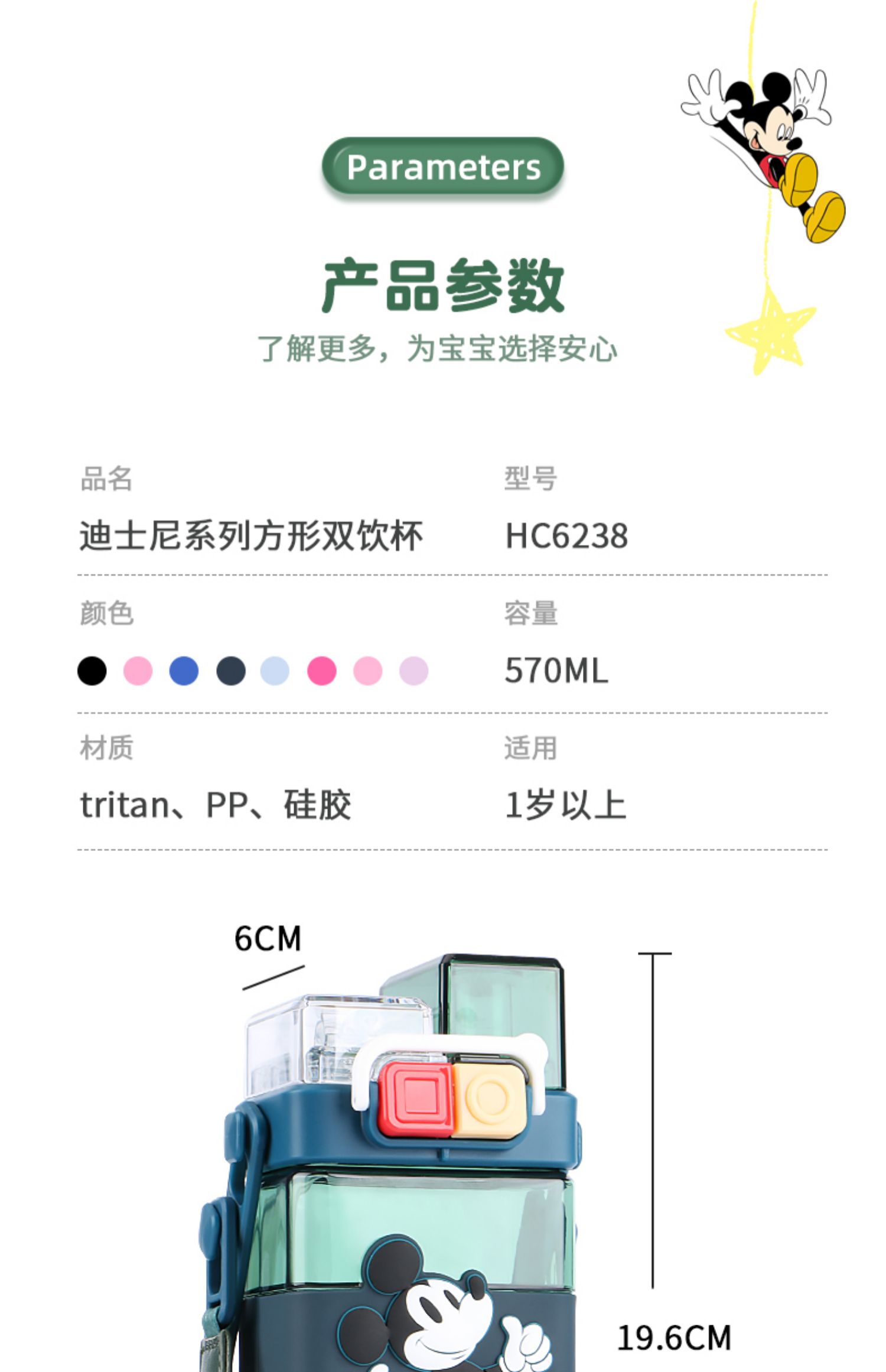 迪士尼系列方形双饮杯570ml