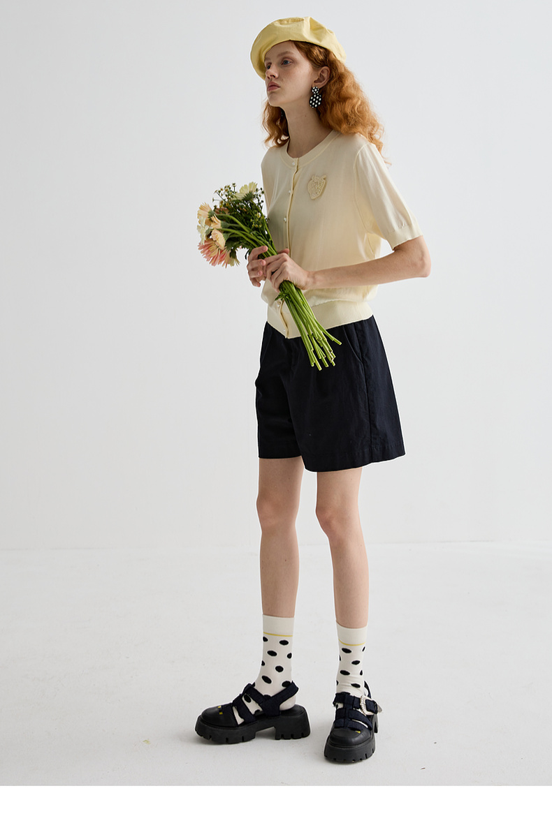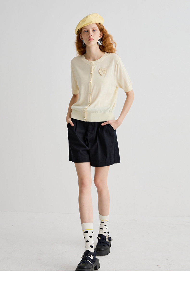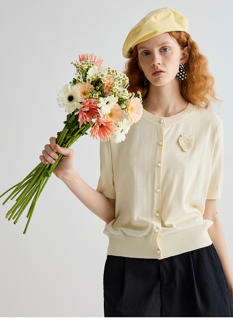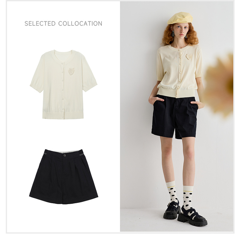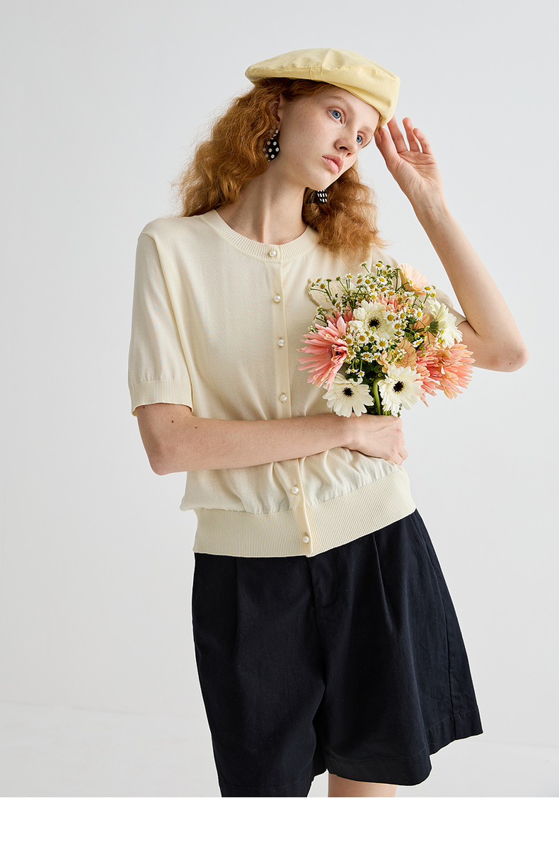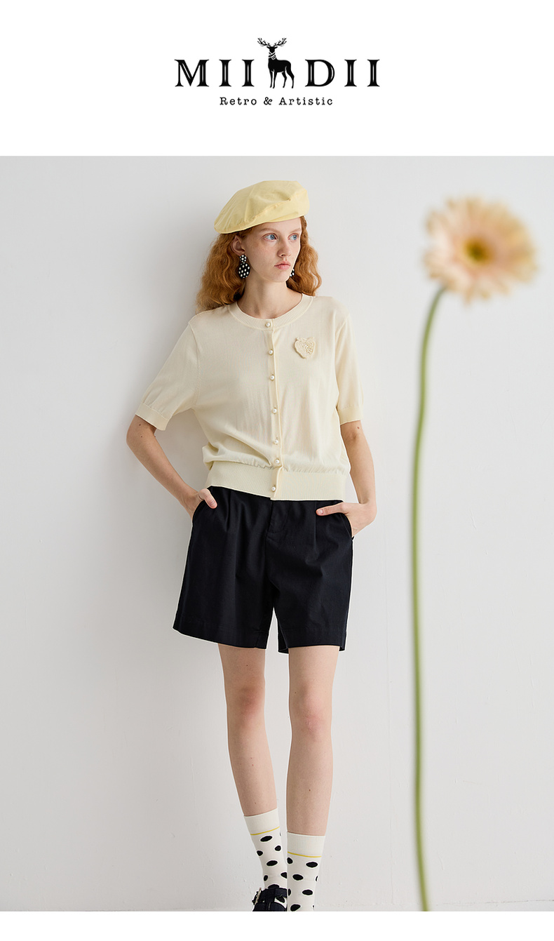 谜底针织开衫短袖女2025夏季新品复古文艺宽松T型短毛衣252MZ0863