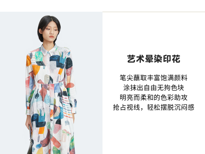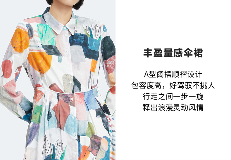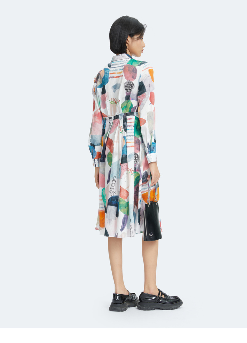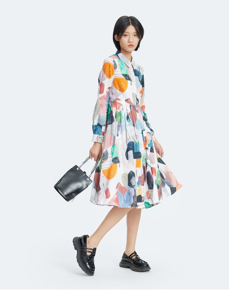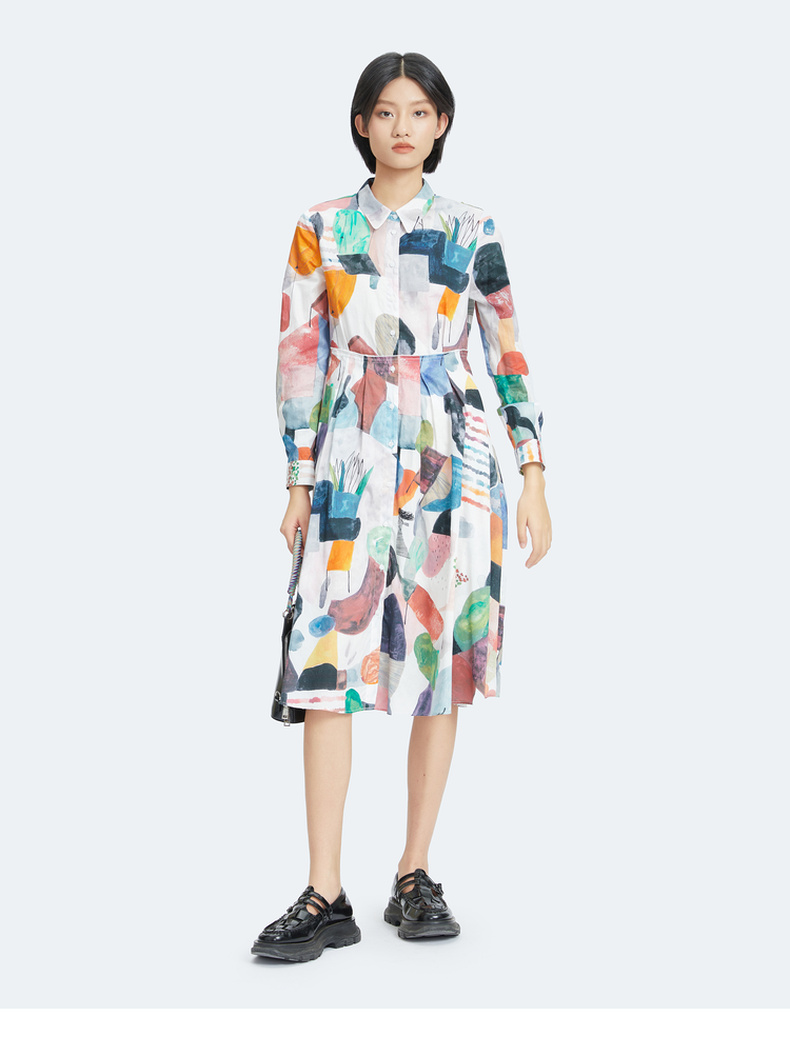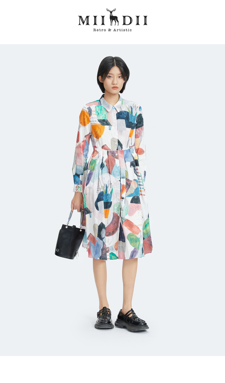 【不规则印花】谜底2022秋季印花文艺长袖纯棉连衣裙227ML6128