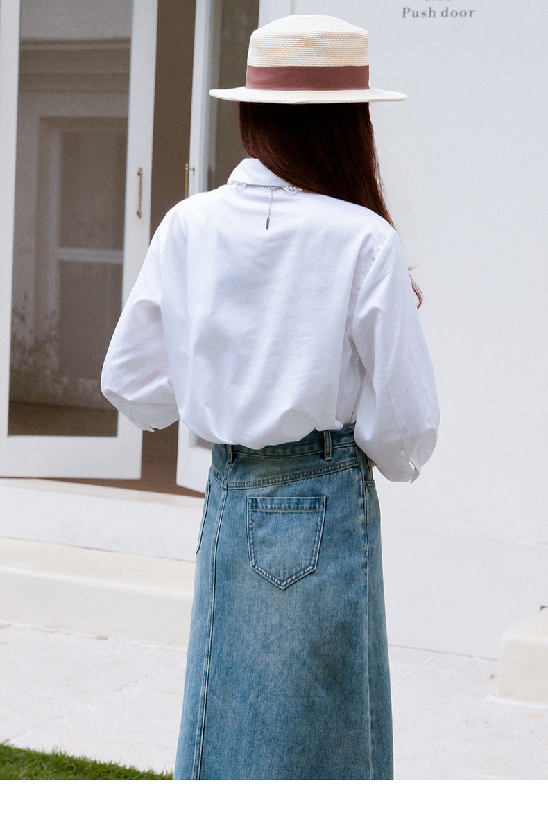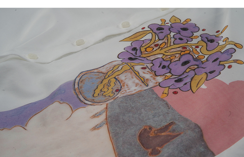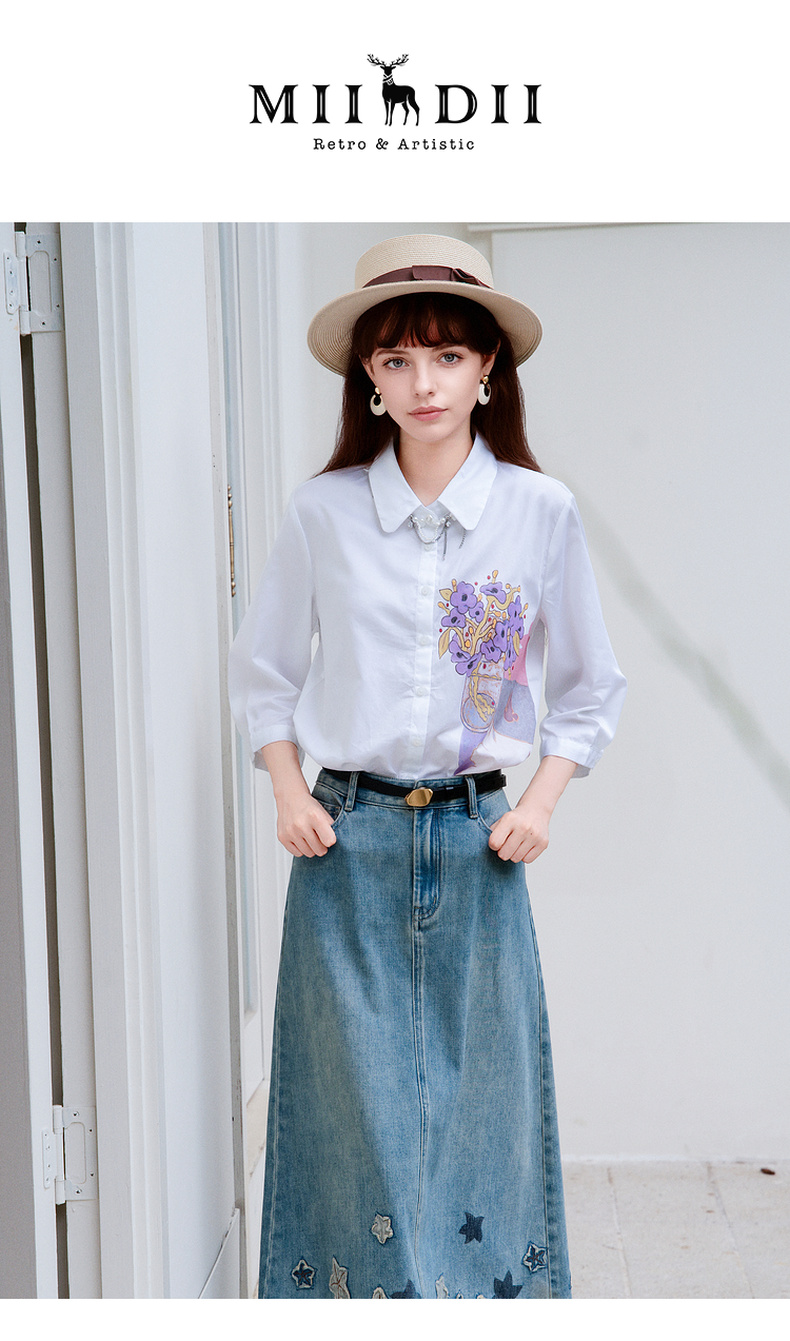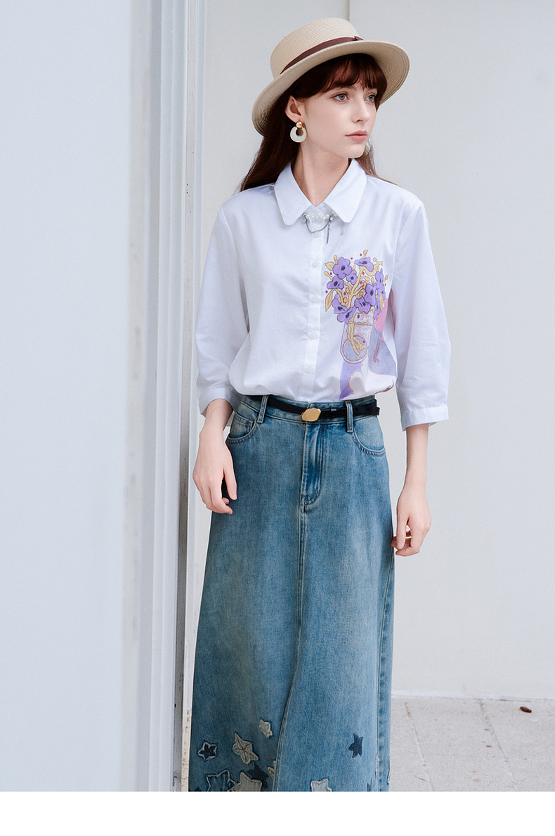 谜底白衬衫七分袖女士2025夏季新款通勤风印花合体衬衣256MC6246