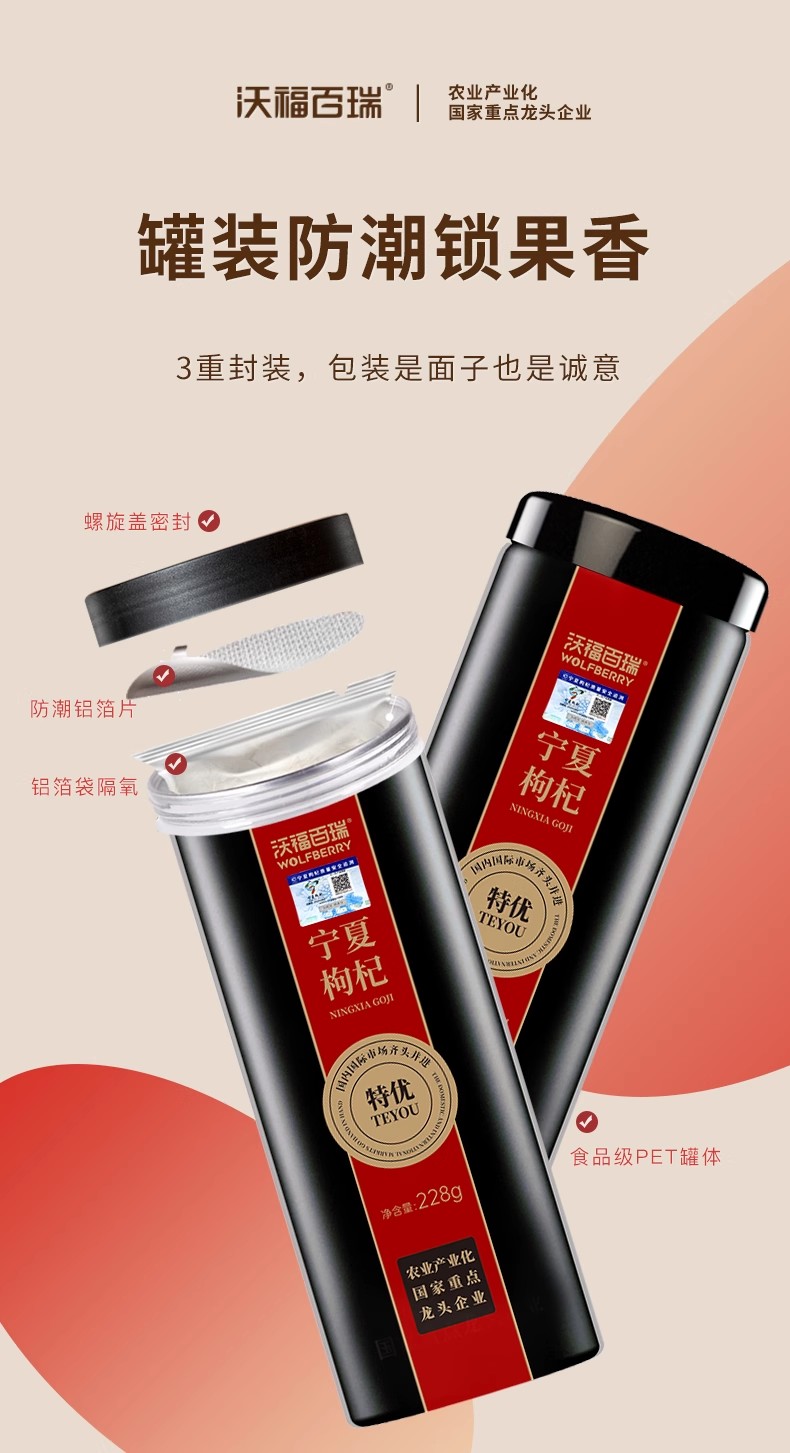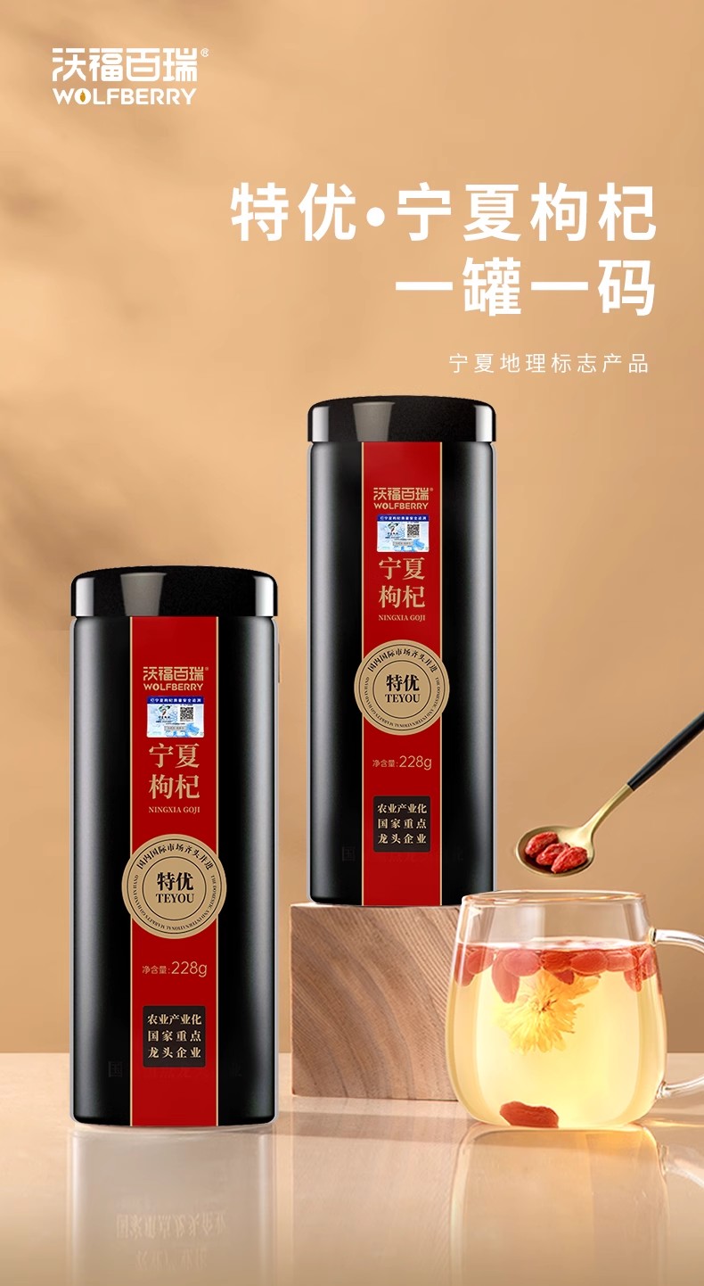 沃福百瑞宁夏枸杞特优大果228g罐装