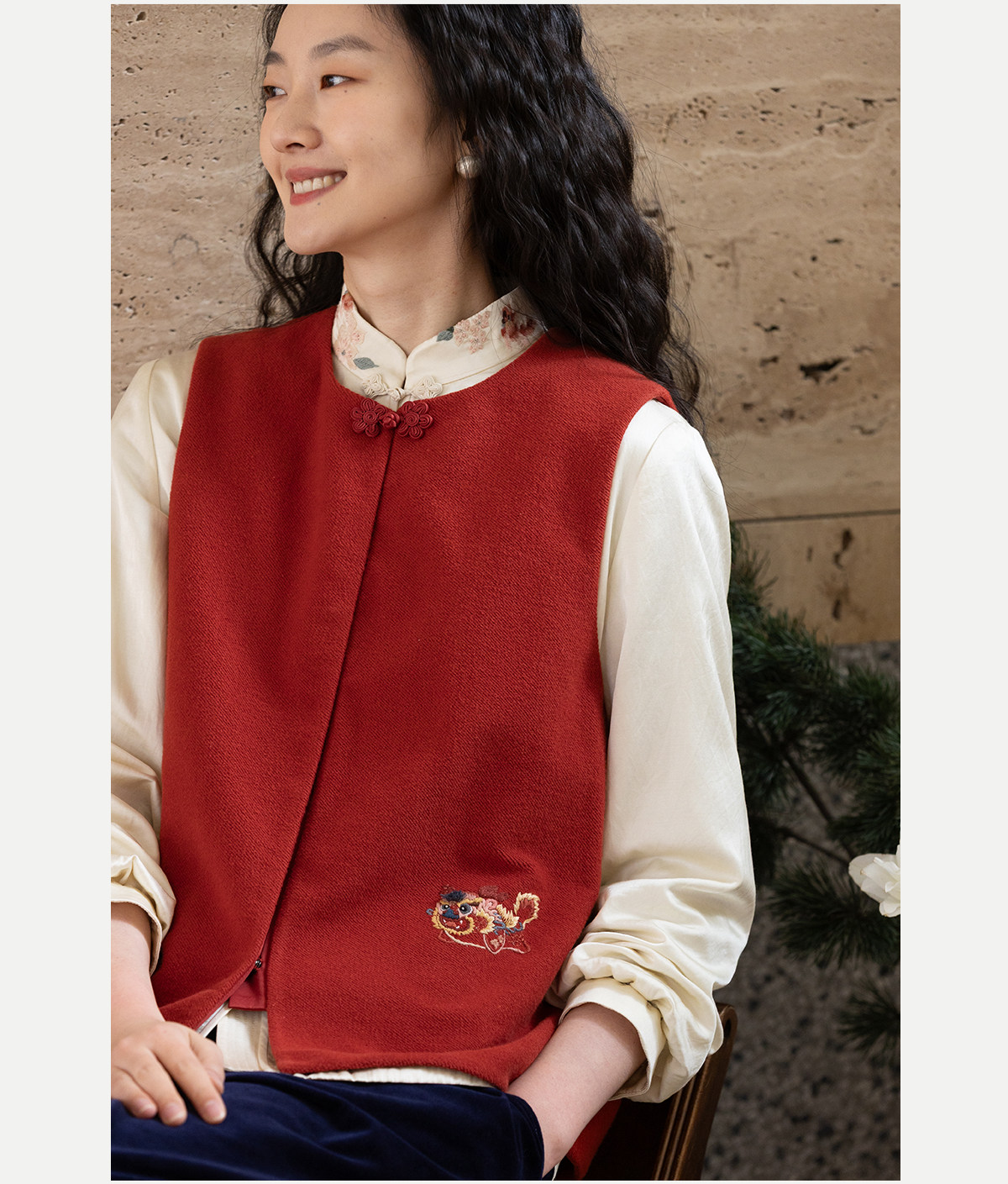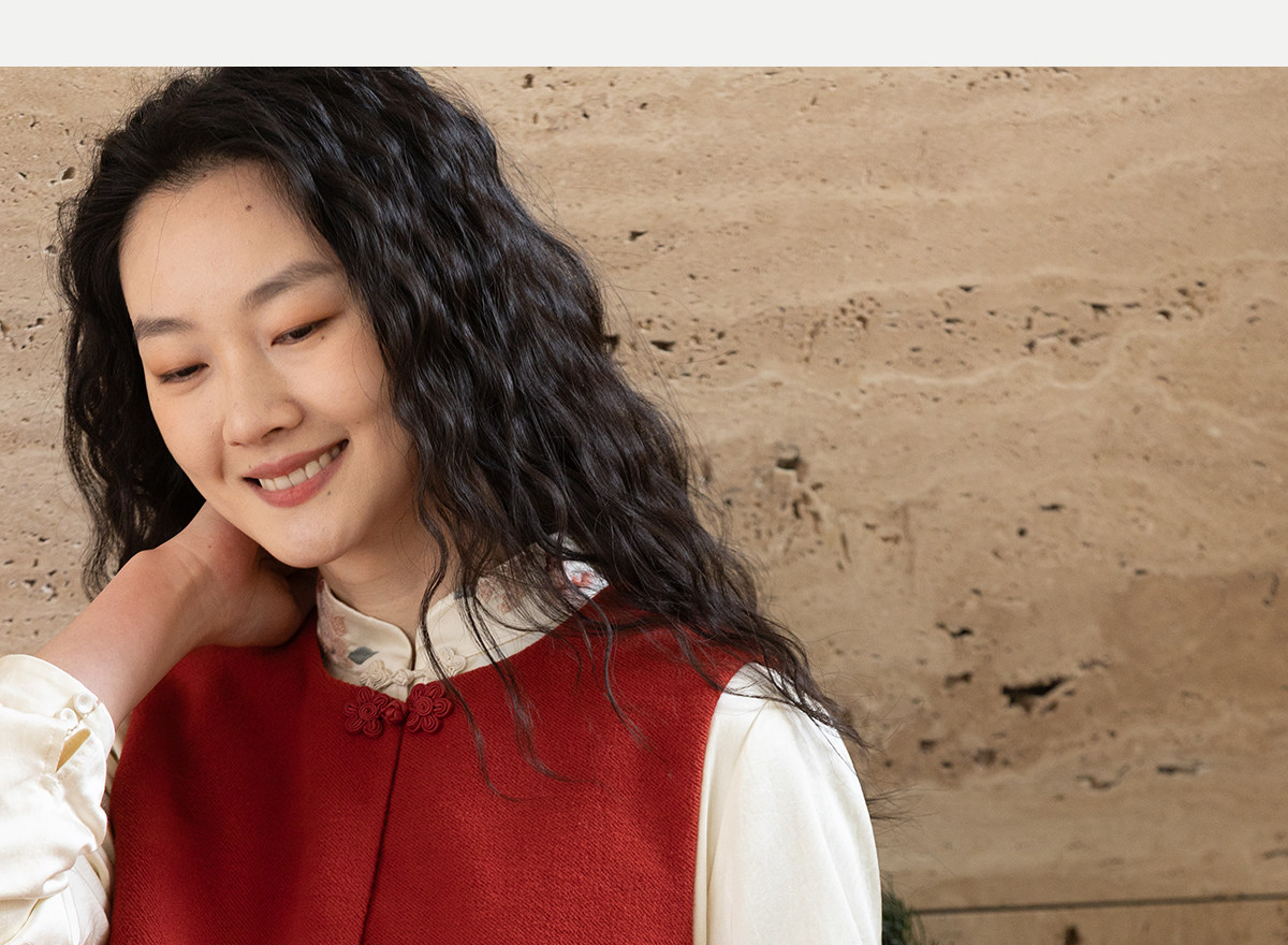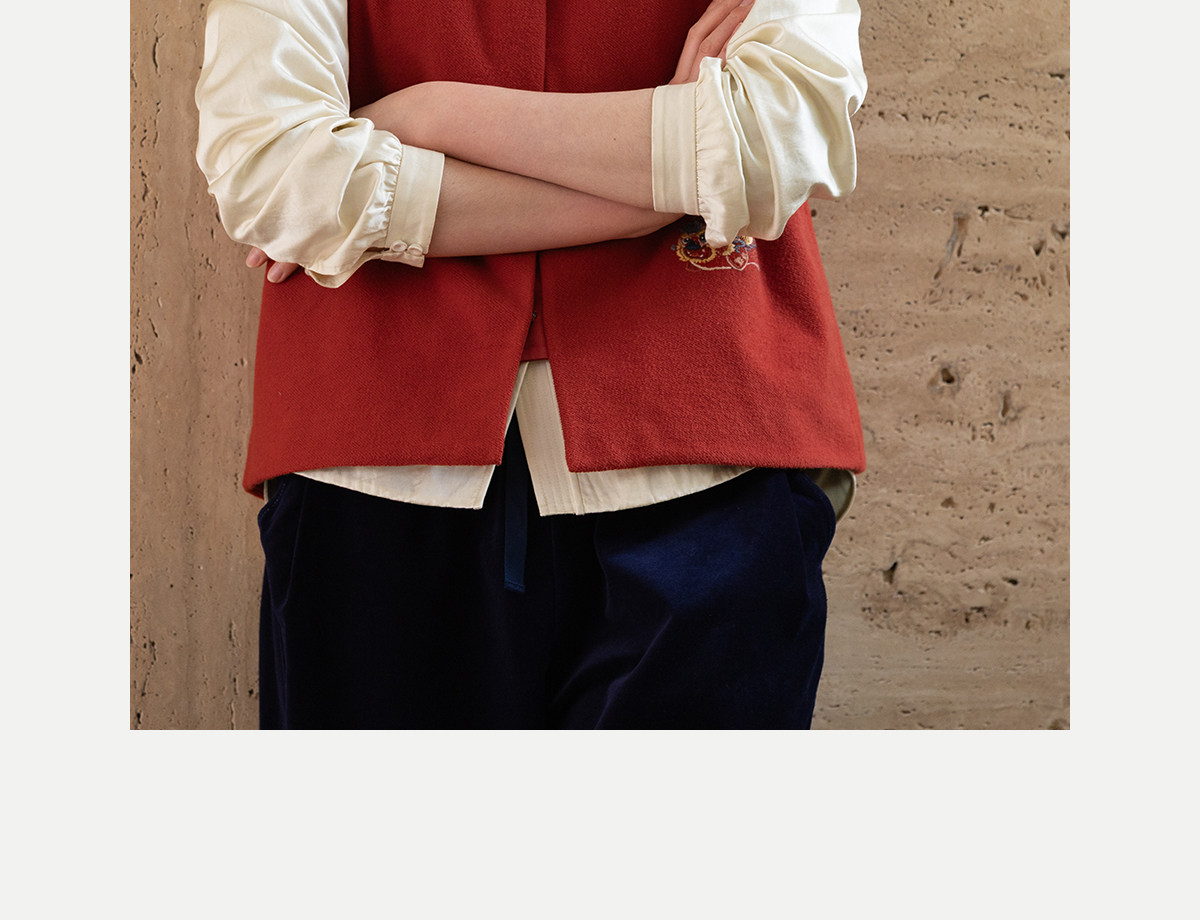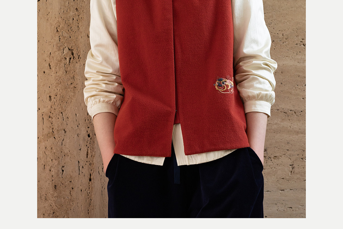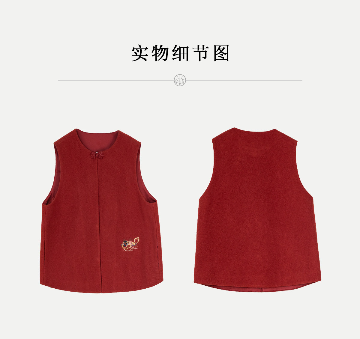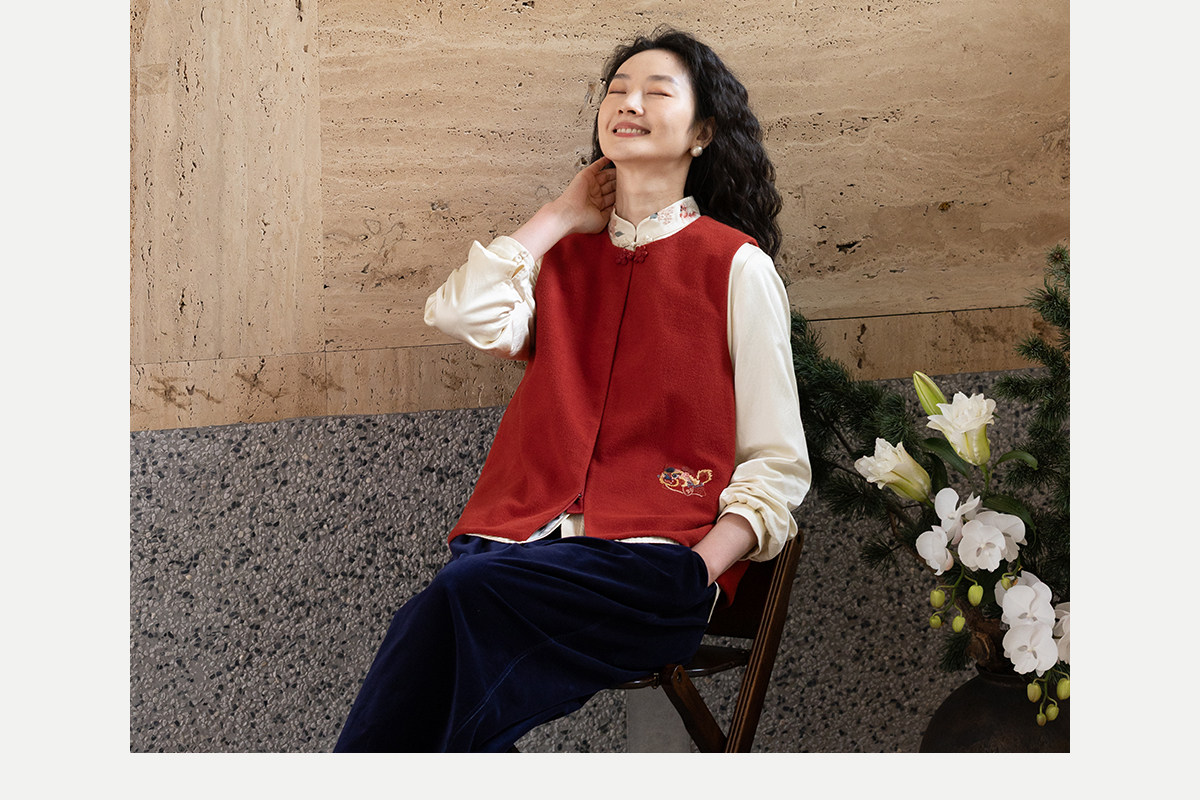 牧衣游原创 32支手工刺绣纯棉马夹红色氛围感百搭中式开衫 春风萃