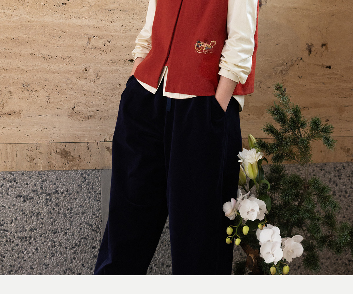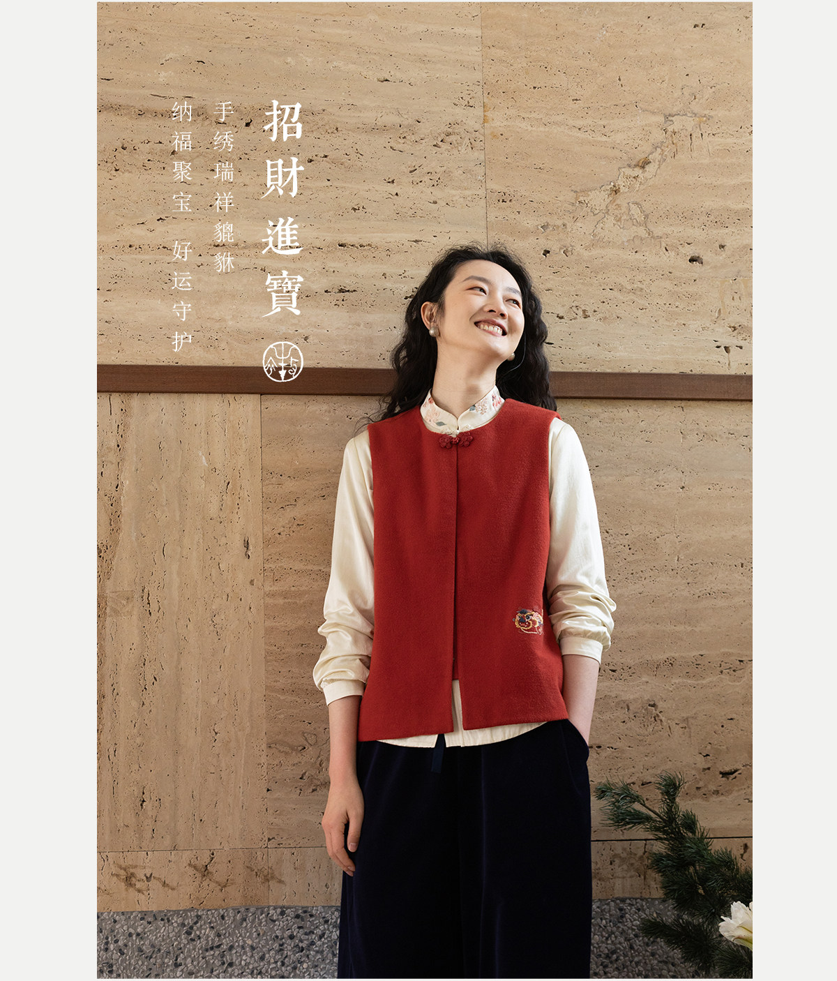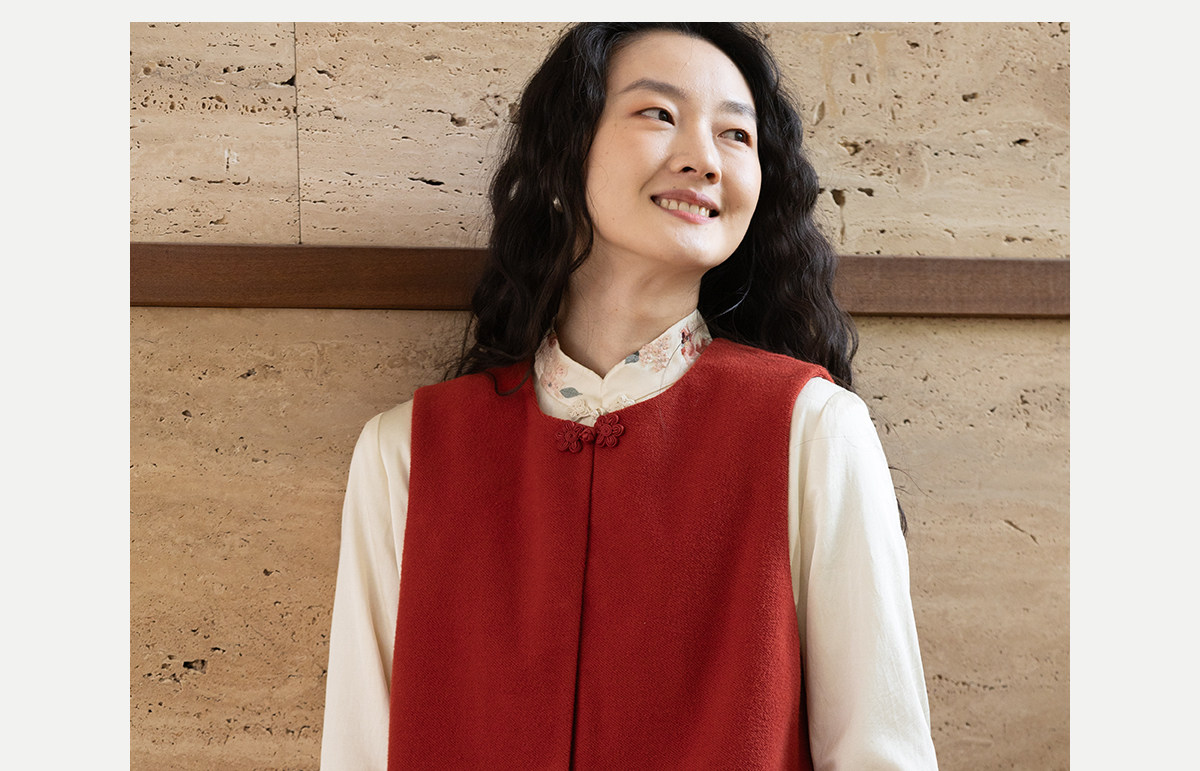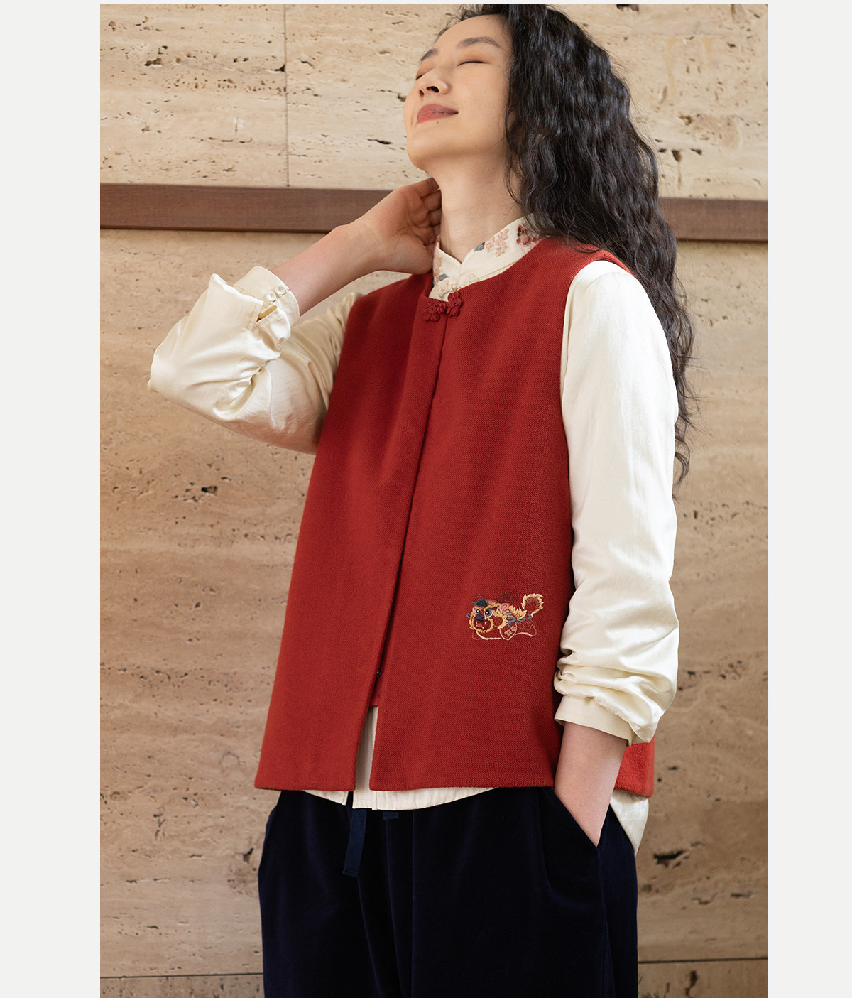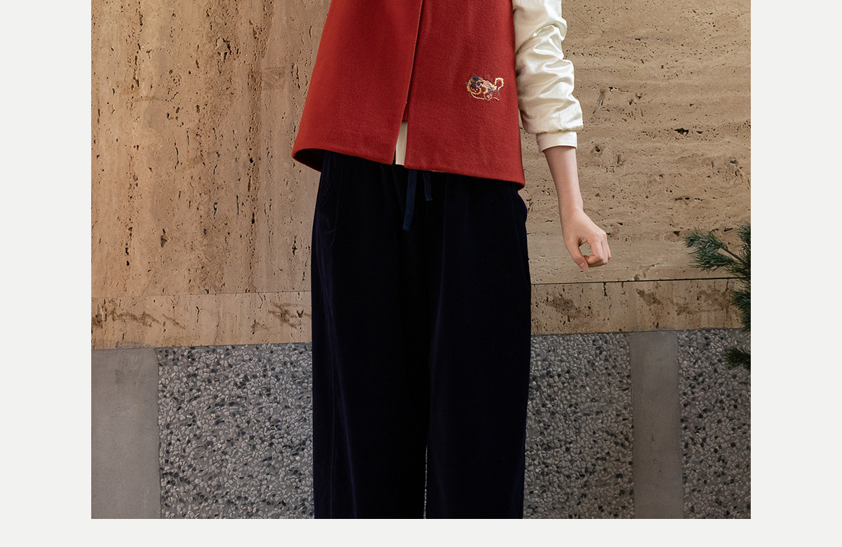 牧衣游原创 32支手工刺绣纯棉马夹红色氛围感百搭中式开衫 春风萃