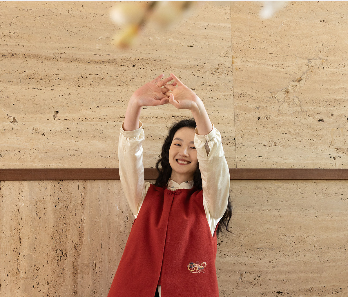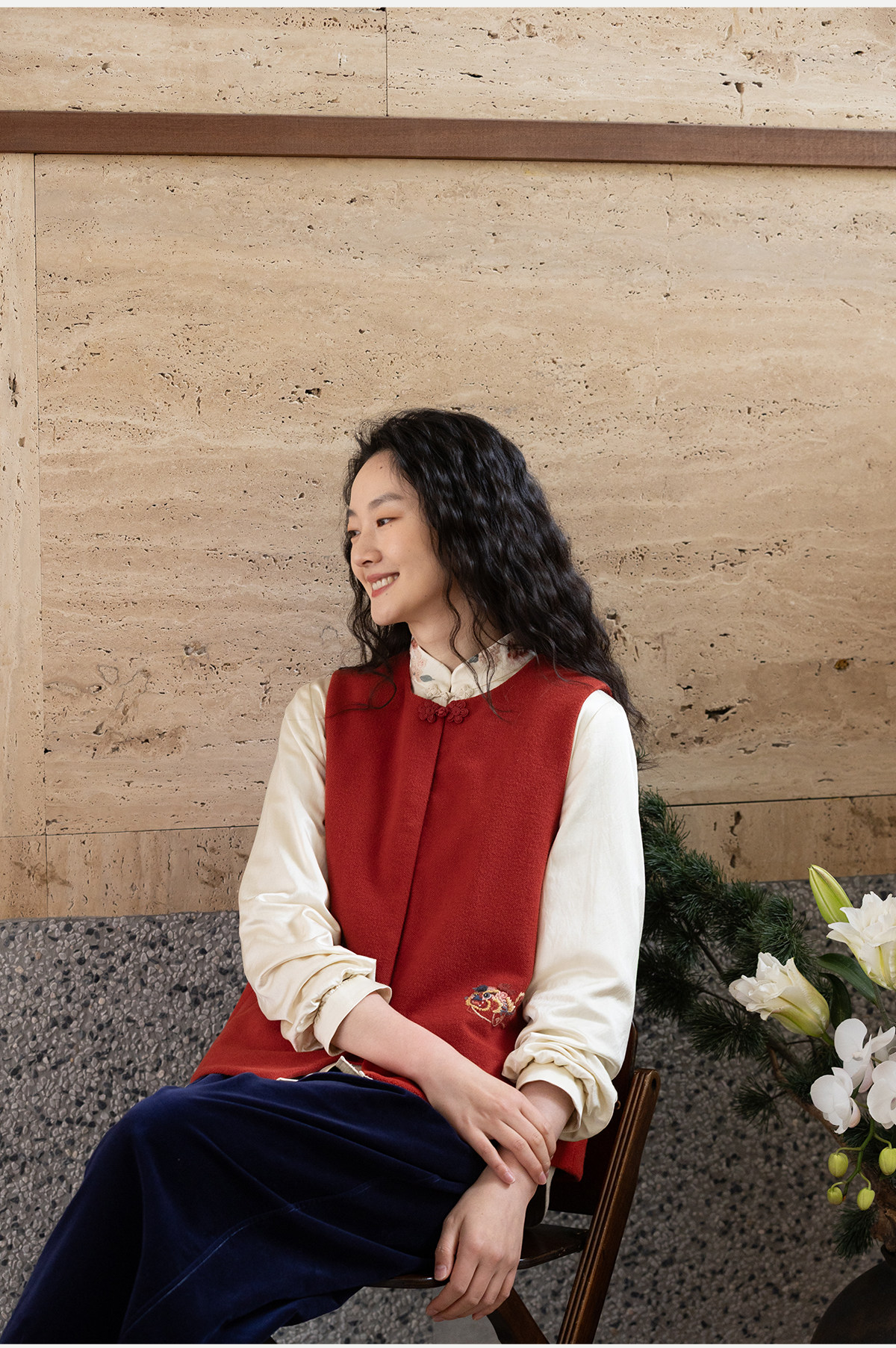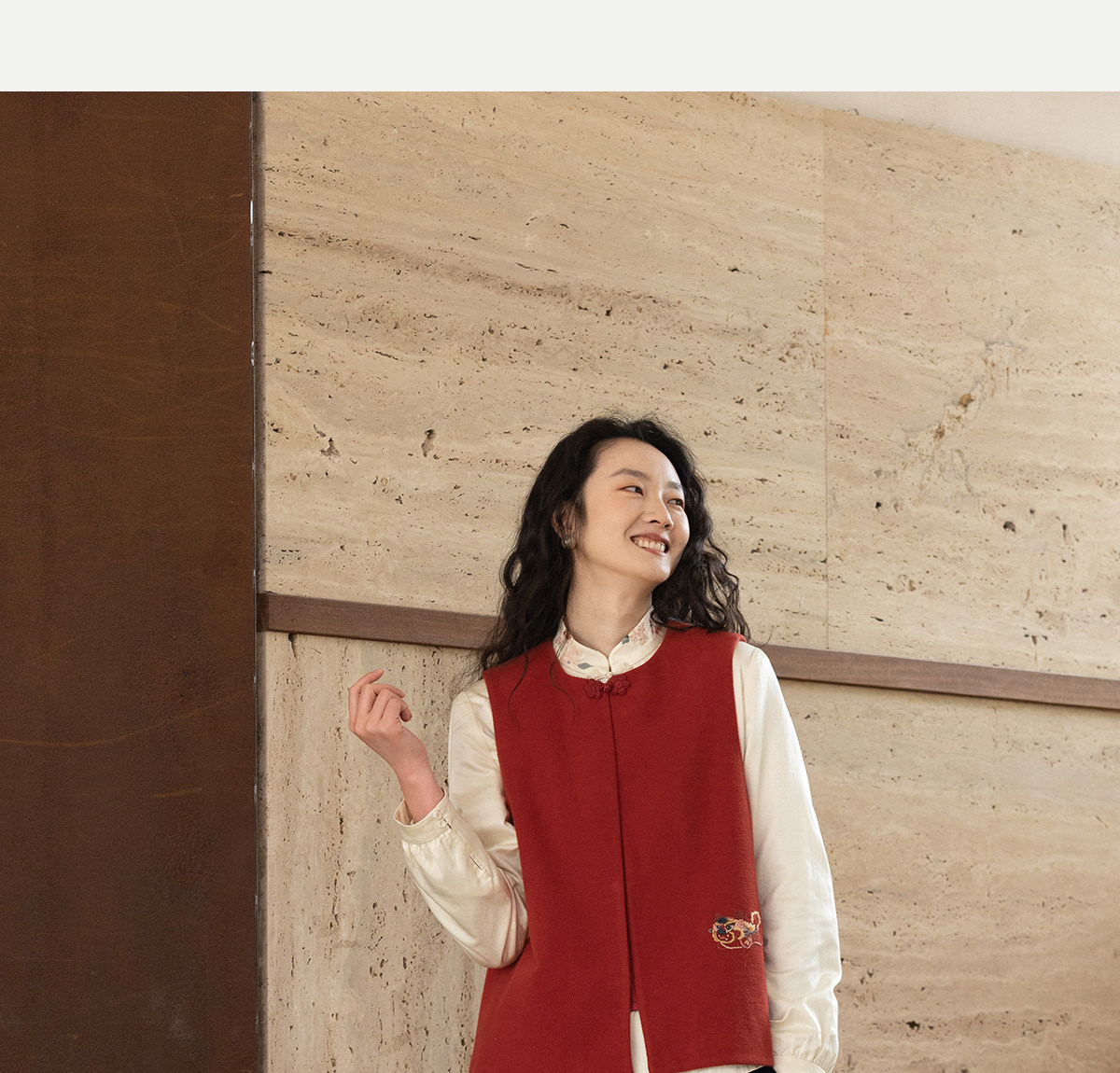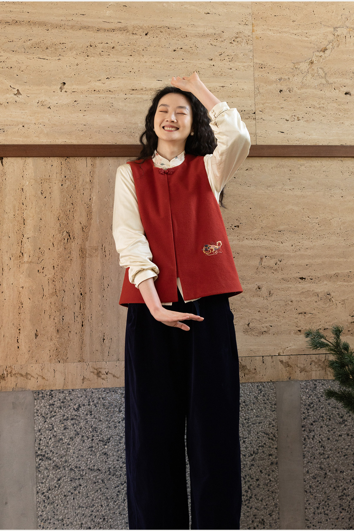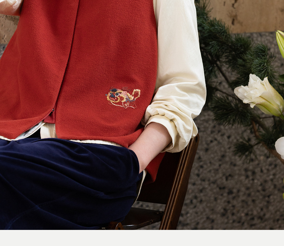 牧衣游原创 32支手工刺绣纯棉马夹红色氛围感百搭中式开衫 春风萃