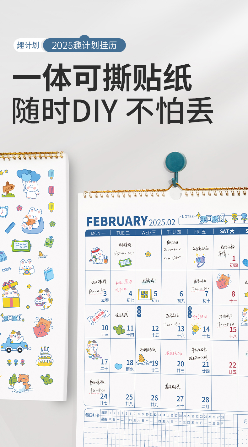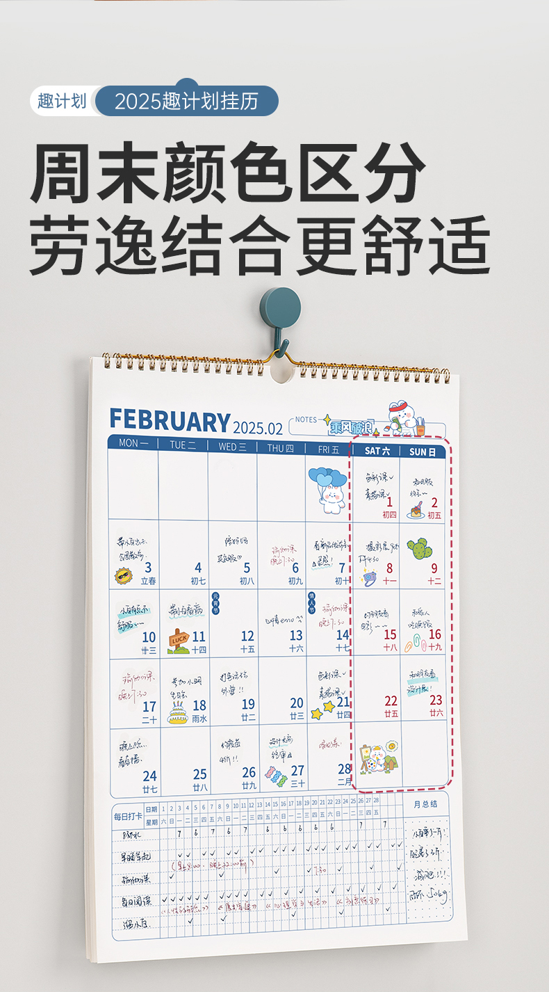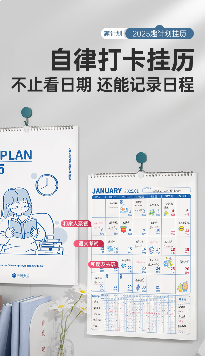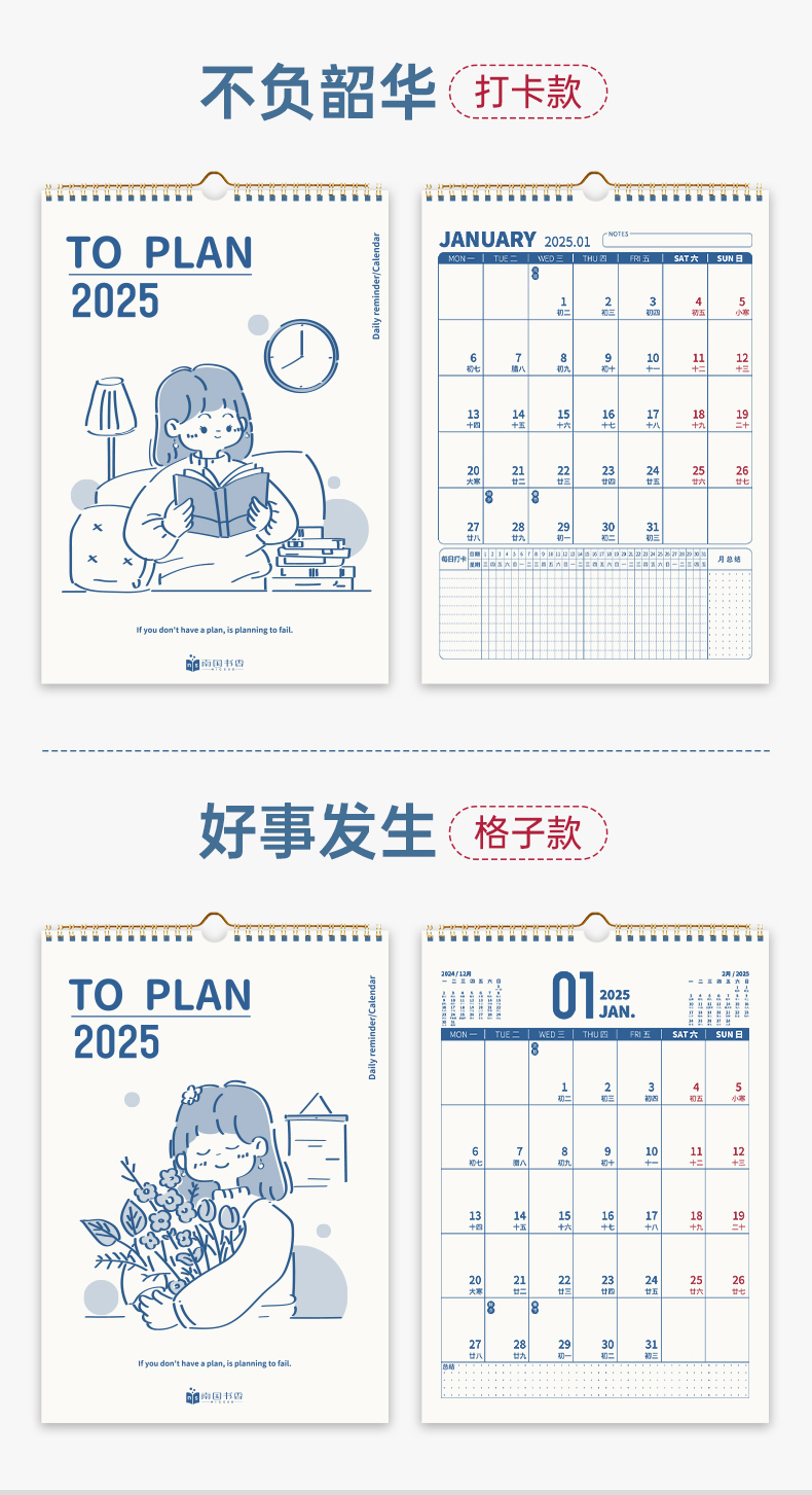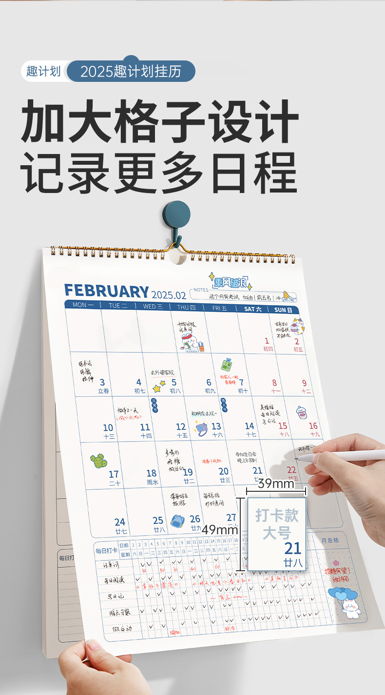 南国书香2025年挂历新款日历大格子卡通挂历ins风创意装饰家用挂墙手撕月历备忘录大号年历自律打卡本记事本