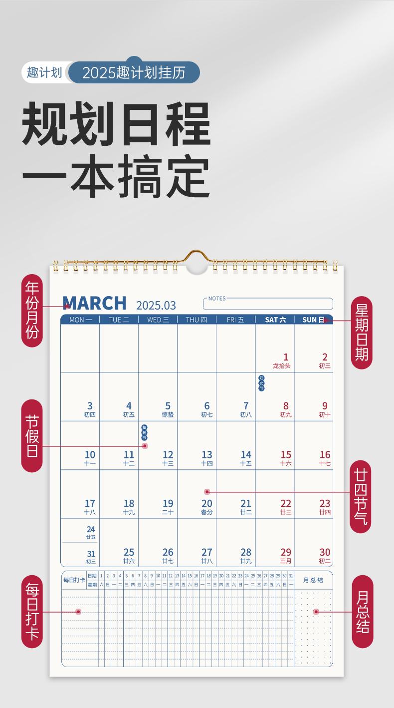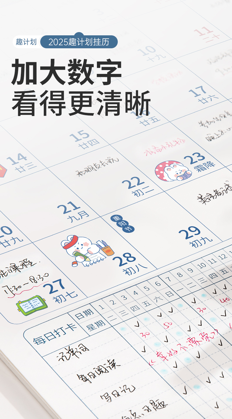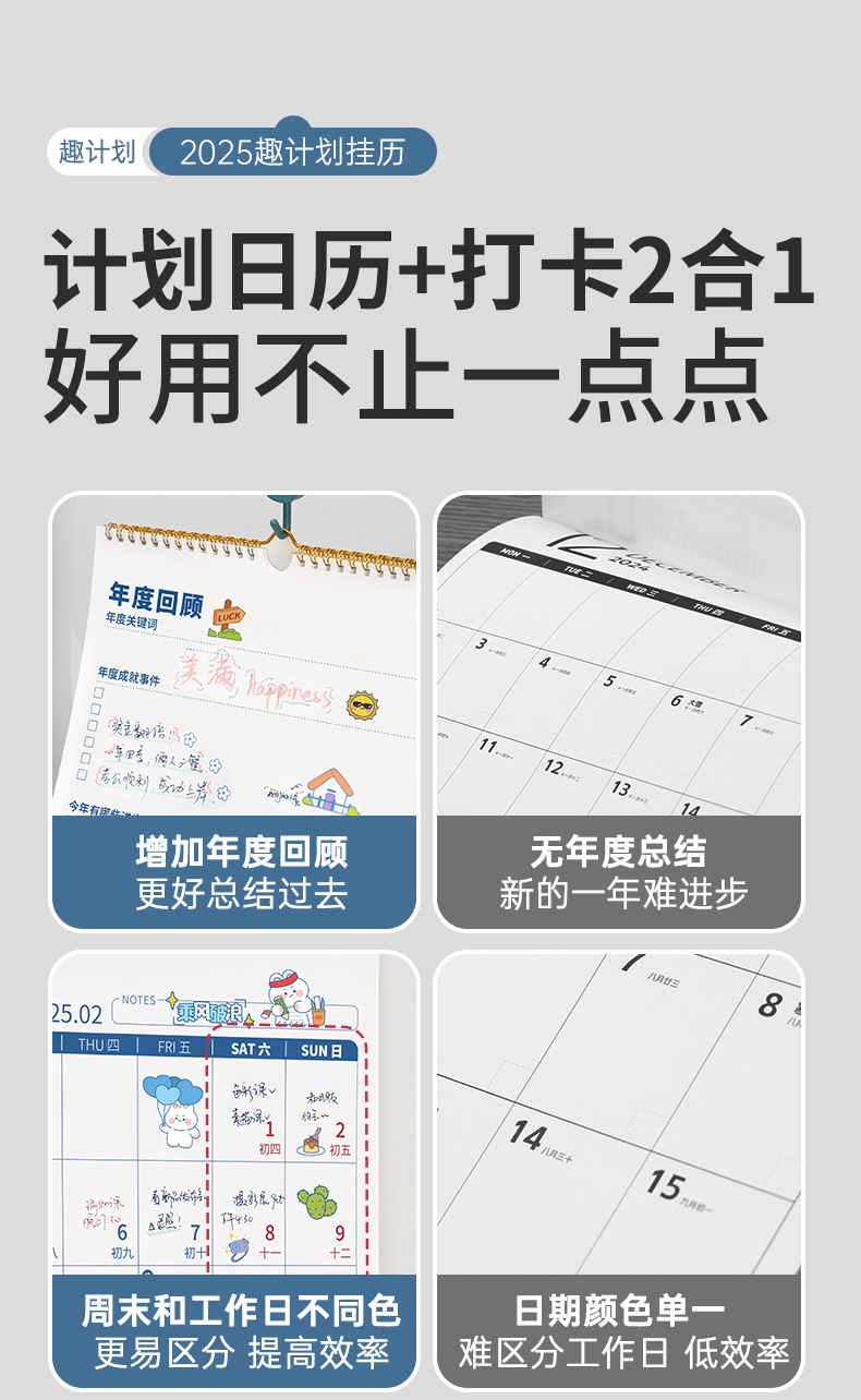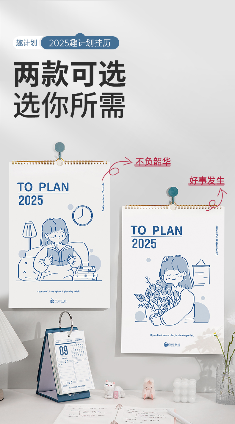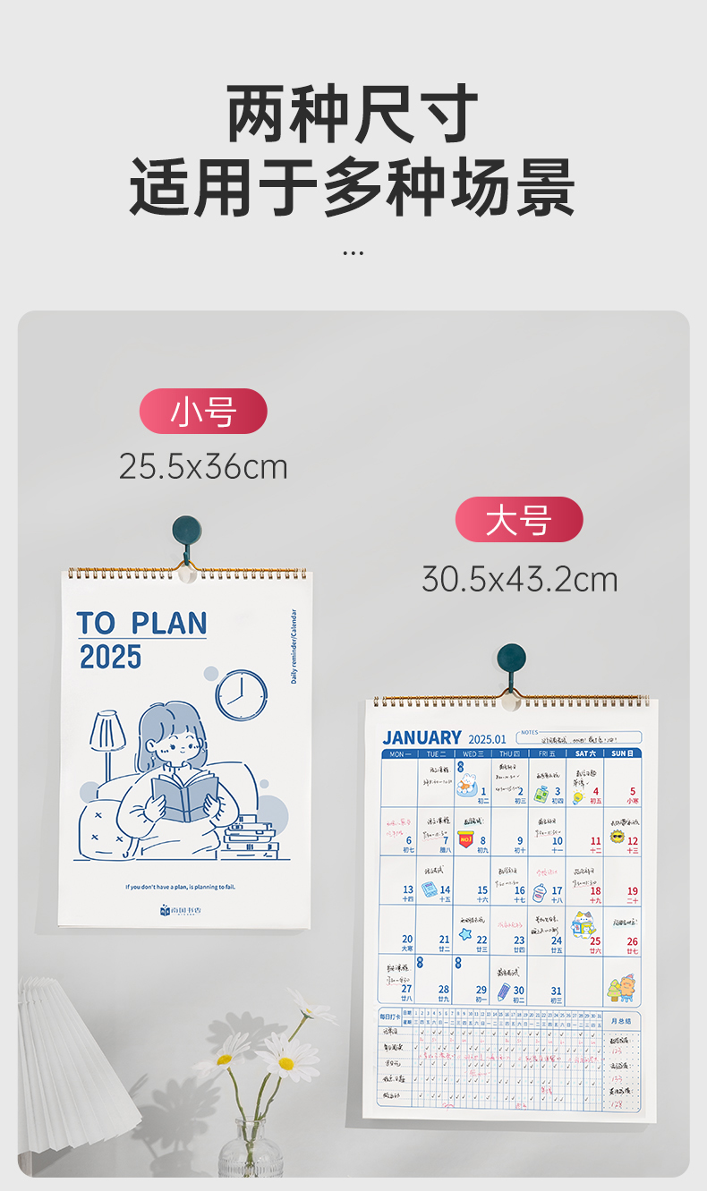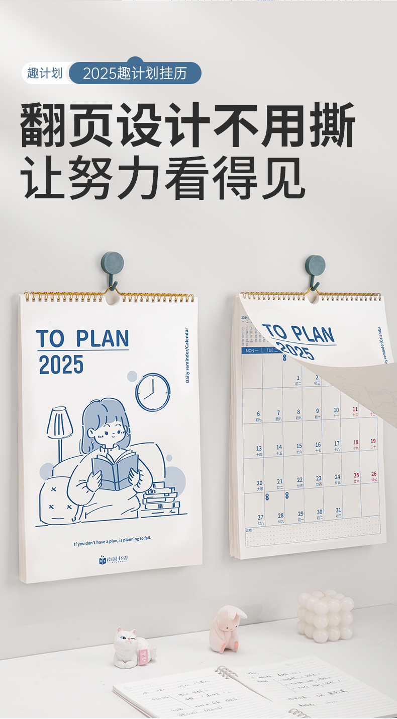 南国书香2025年挂历新款日历大格子卡通挂历ins风创意装饰家用挂墙手撕月历备忘录大号年历自律打卡本记事本