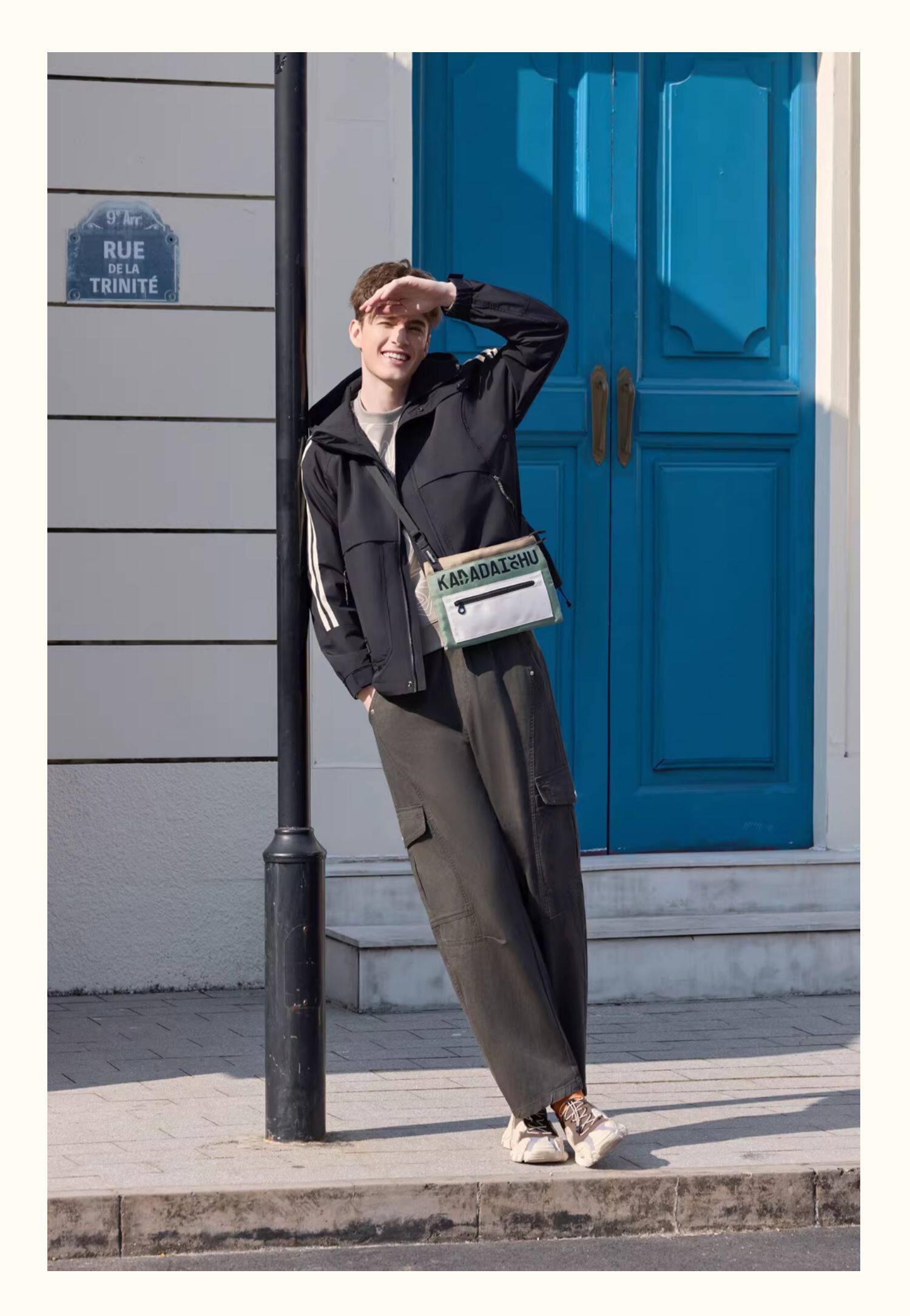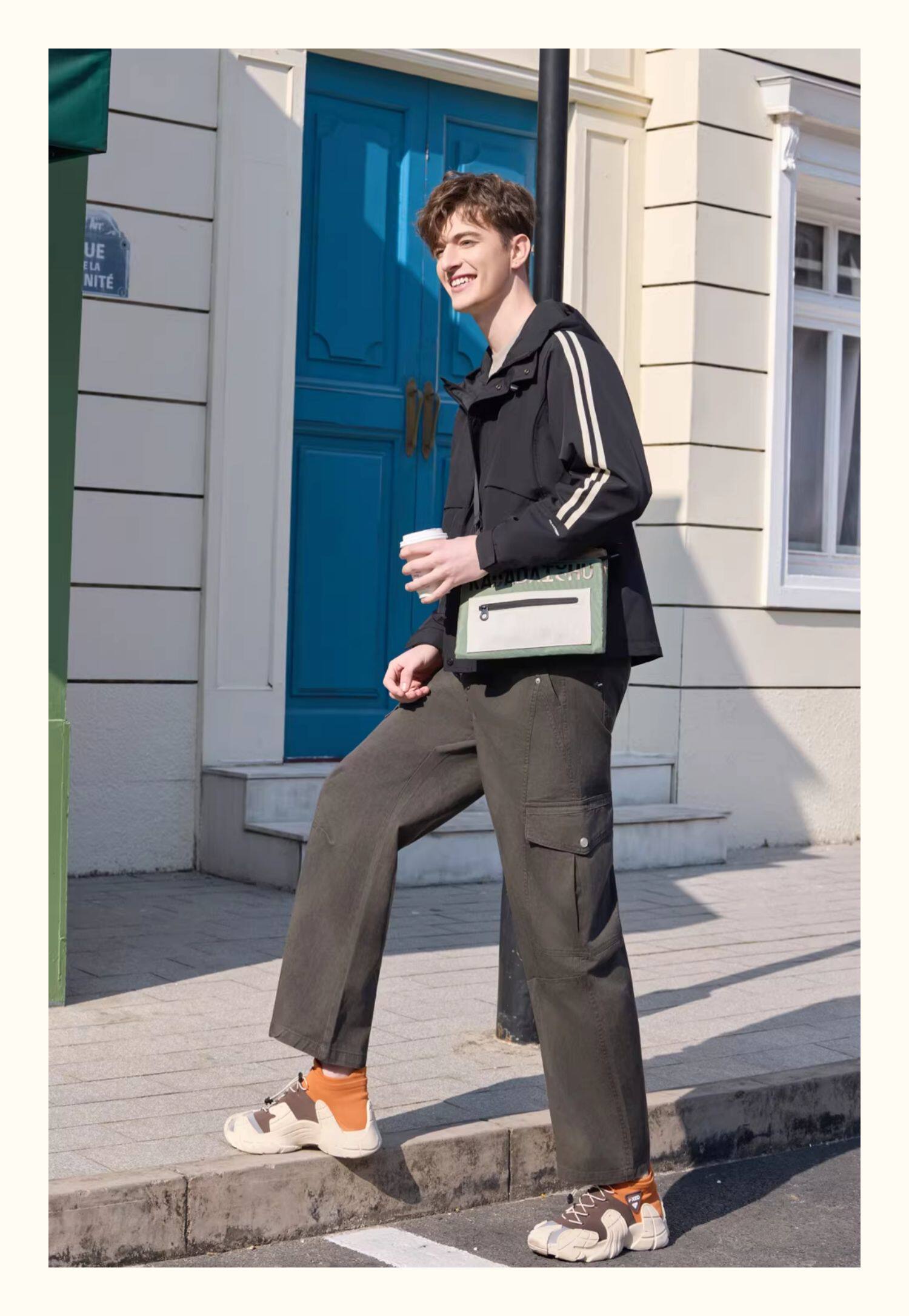 半身缘男装 春季简约宽松轻便面料条纹连帽夹克261112P01310225