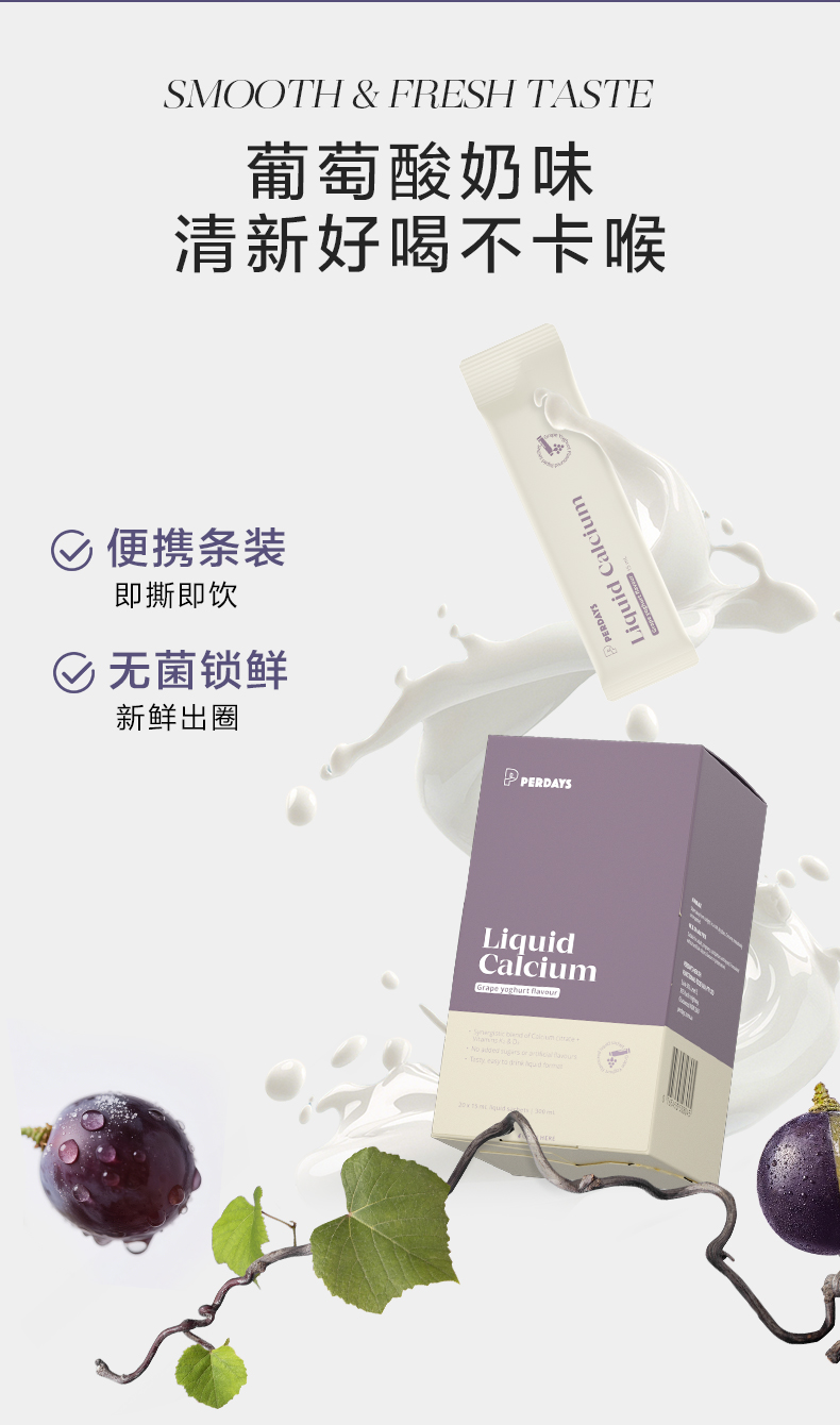 【1盒尝新】PERDAYS液体钙柠檬酸钙酸奶味孕妇孕产妇20条装