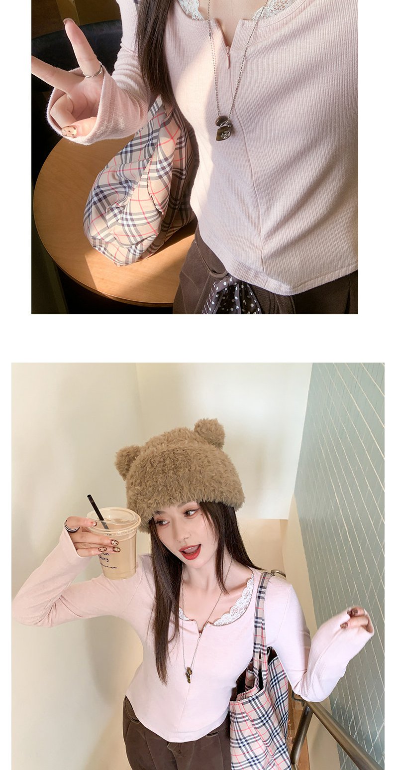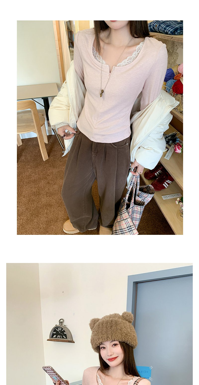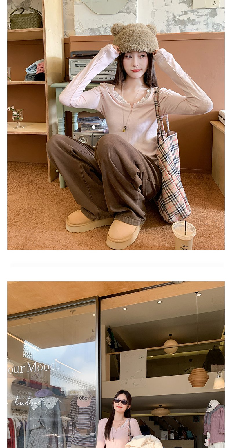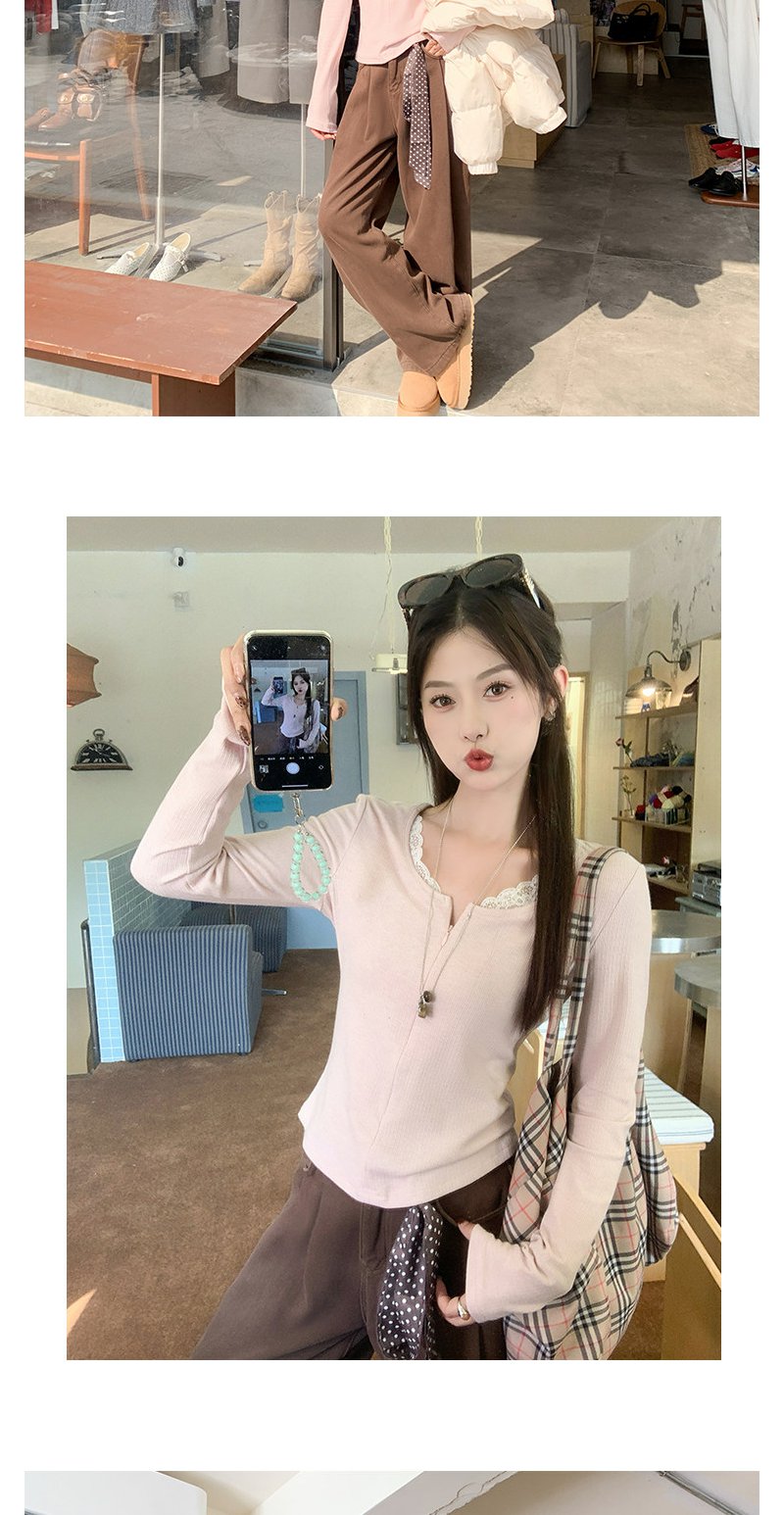 【129元任选2件】现货韩系粉色蕾丝边长袖t