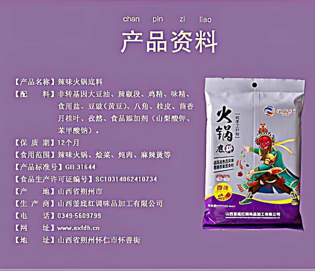 【釜底红】火锅底料微辣口味