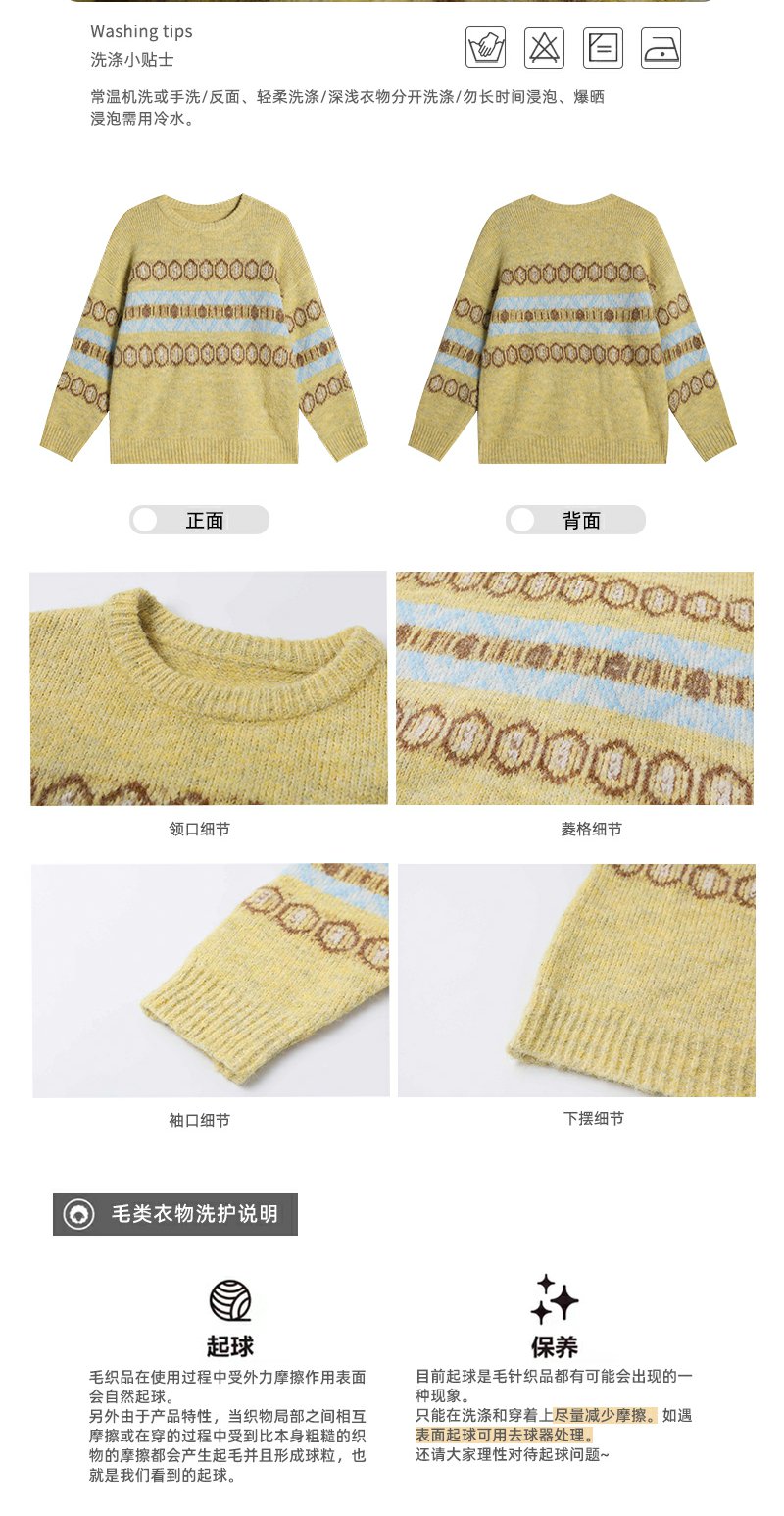 【149元任选2件】现货!黄色圆领咖蓝毛衣