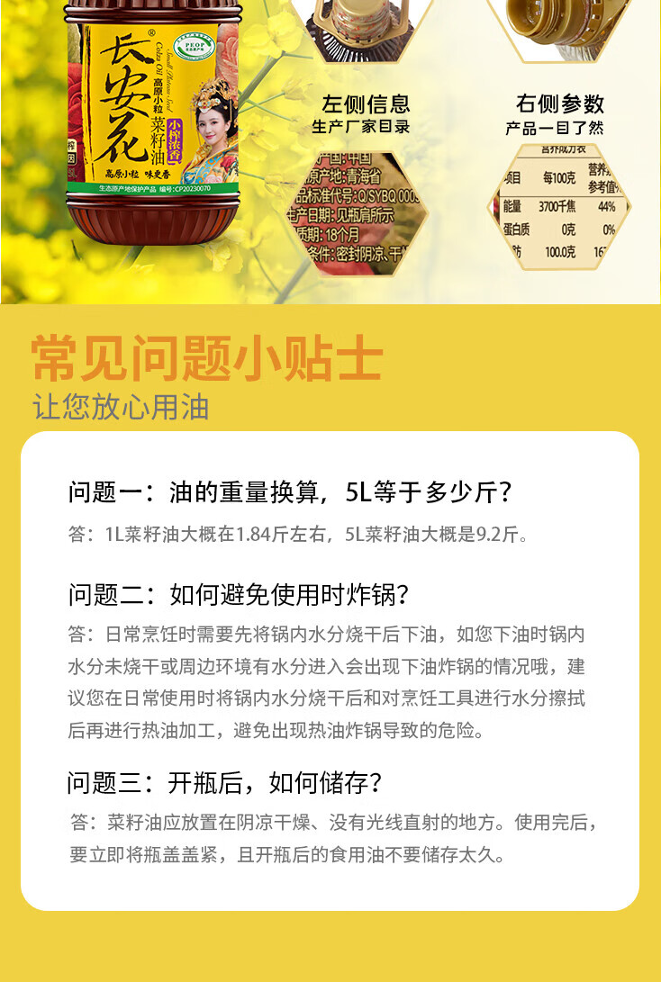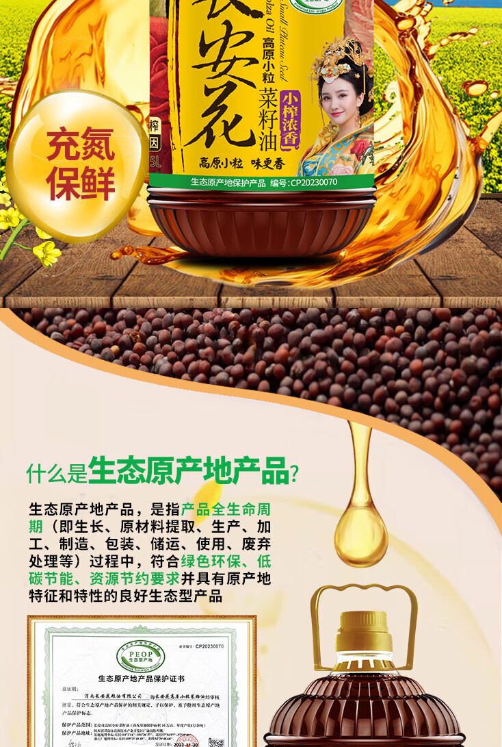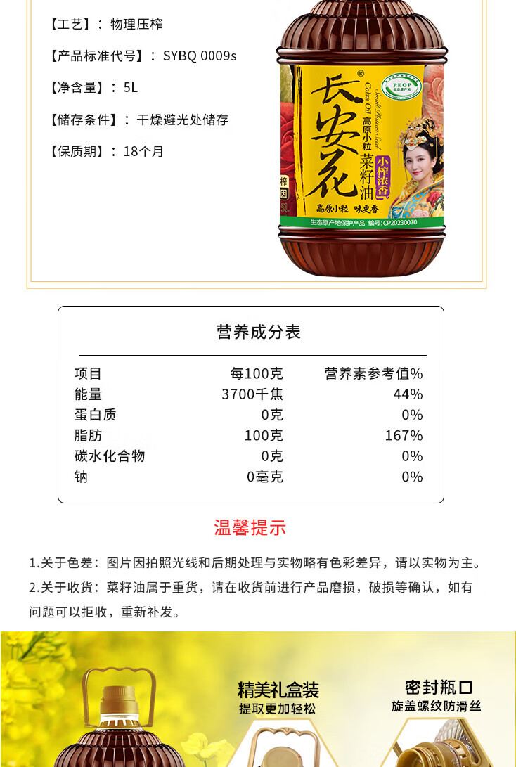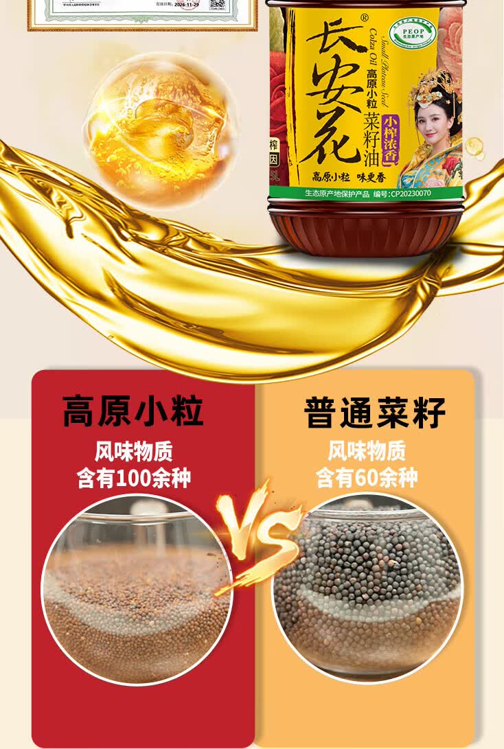 长安花小榨浓香菜籽油5L