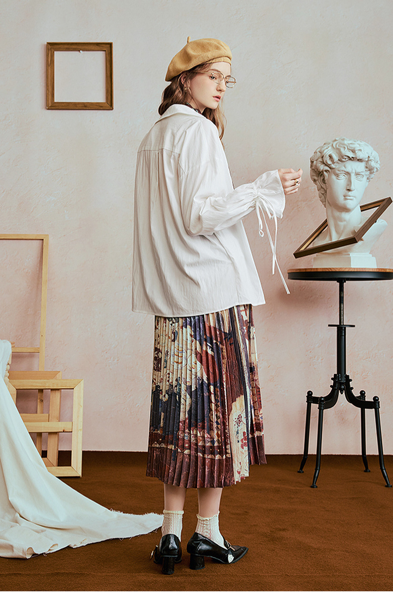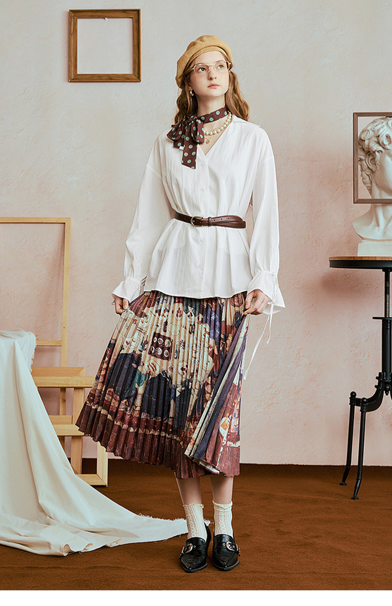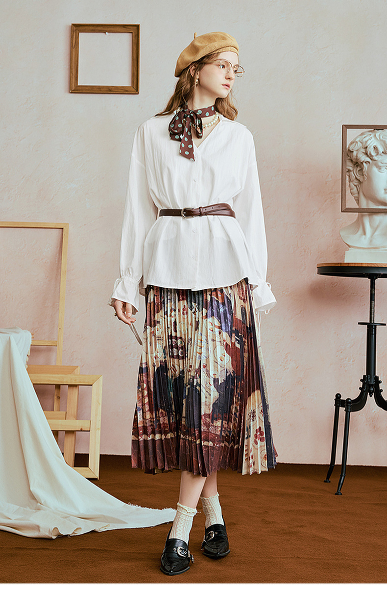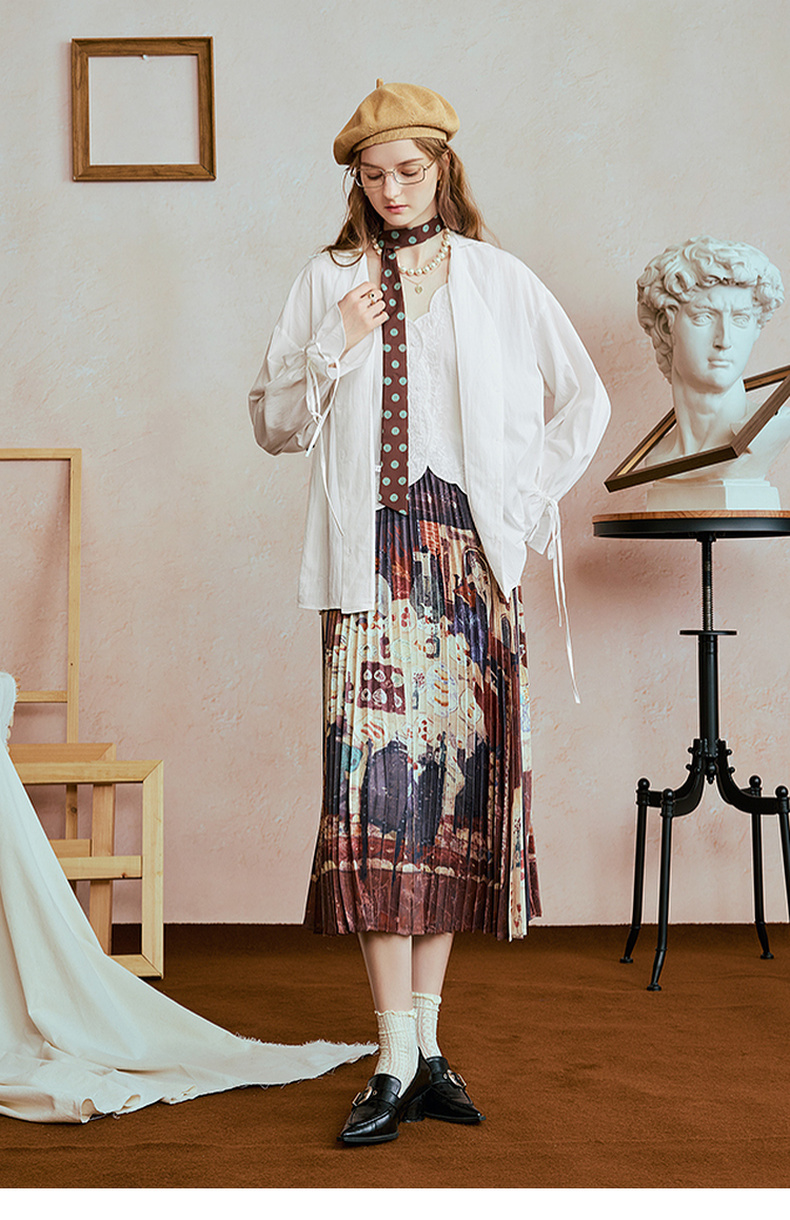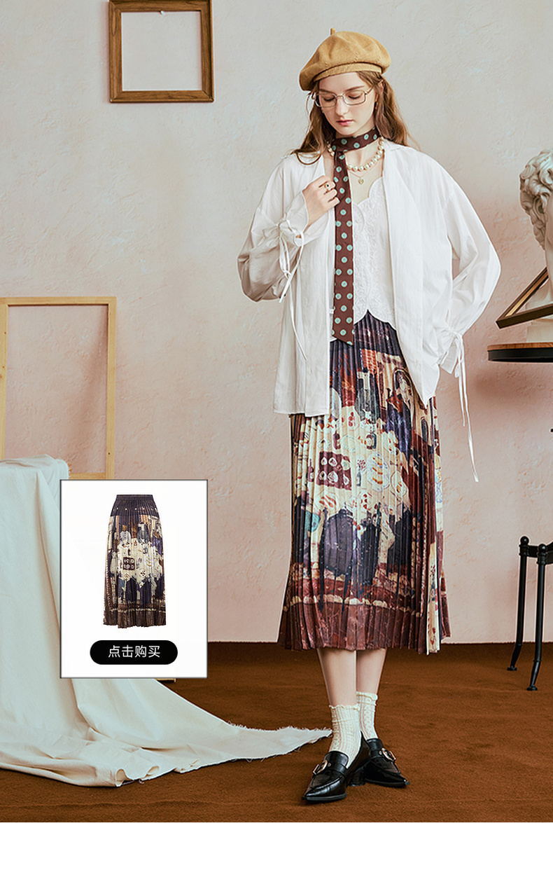 两三事 日光流年 2025秋季新款复古刺绣拼接假两件绑带长袖衬衫女