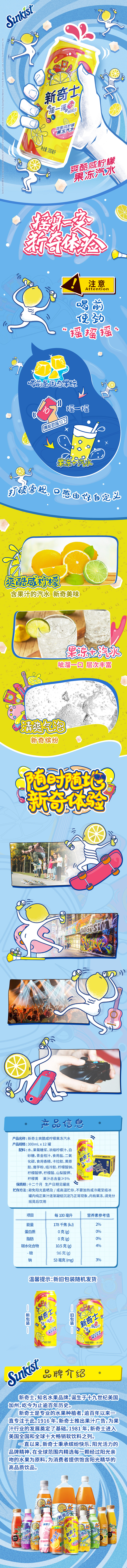 屈臣氏新奇士爽酷咸柠檬果冻汽水清爽气泡水300ml*12罐 整箱装
