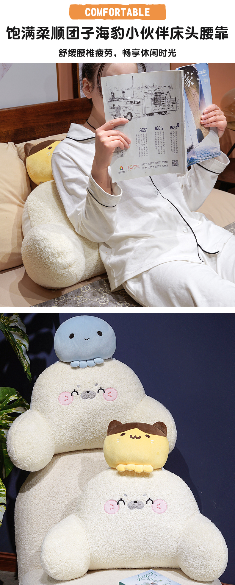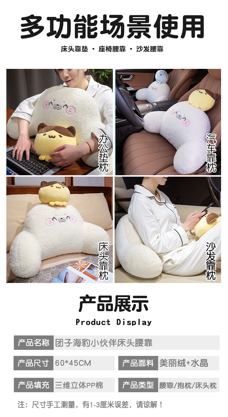 自然醒团子海豹小伙伴拥抱式腰靠QYL