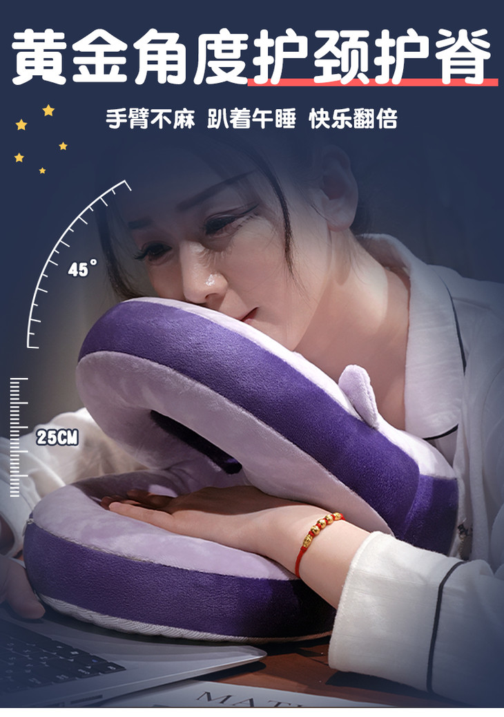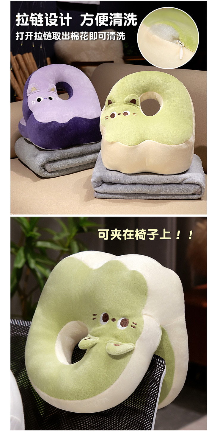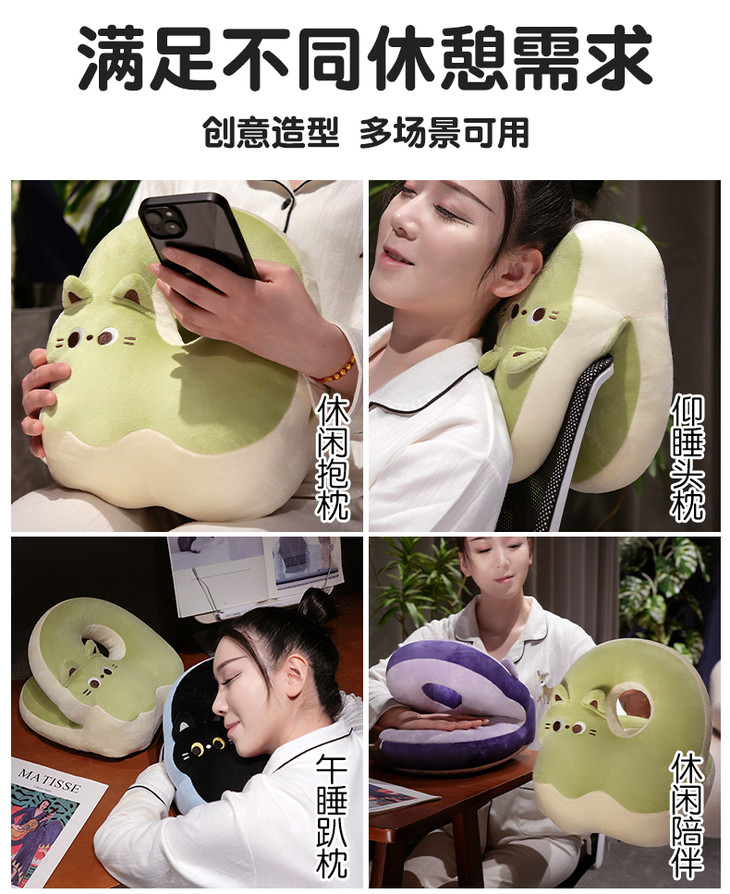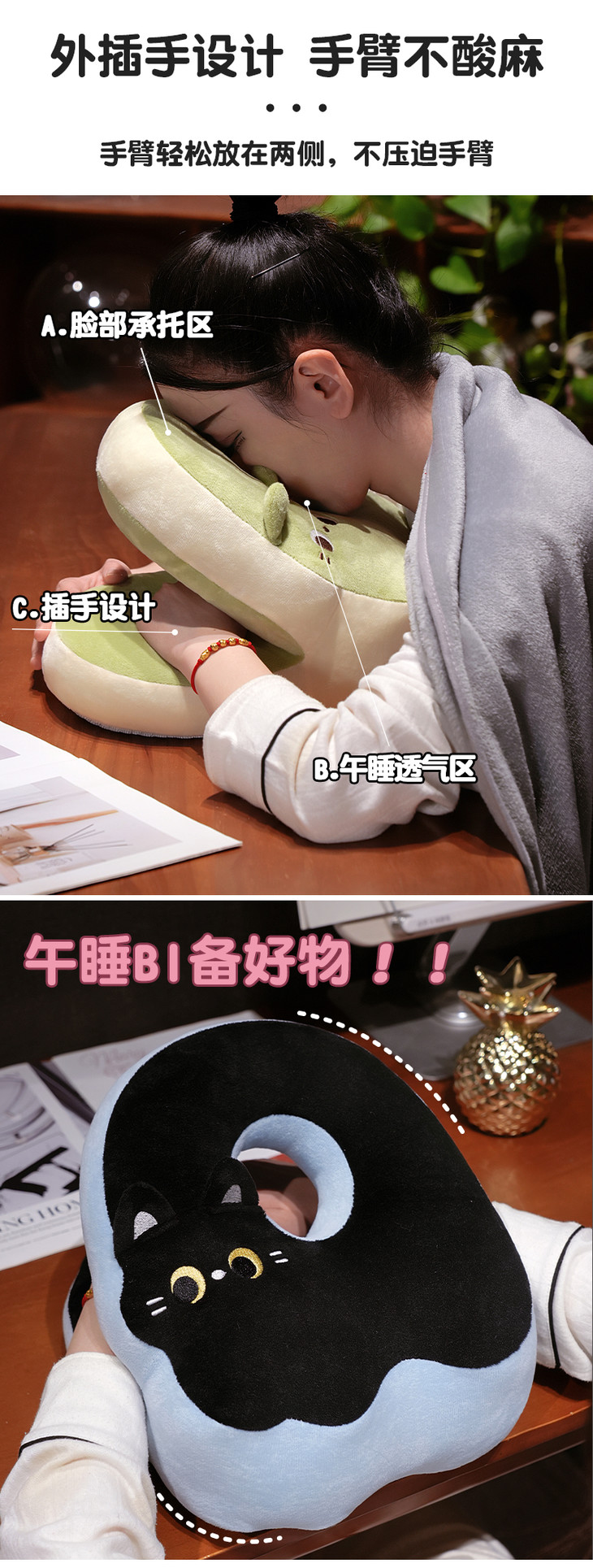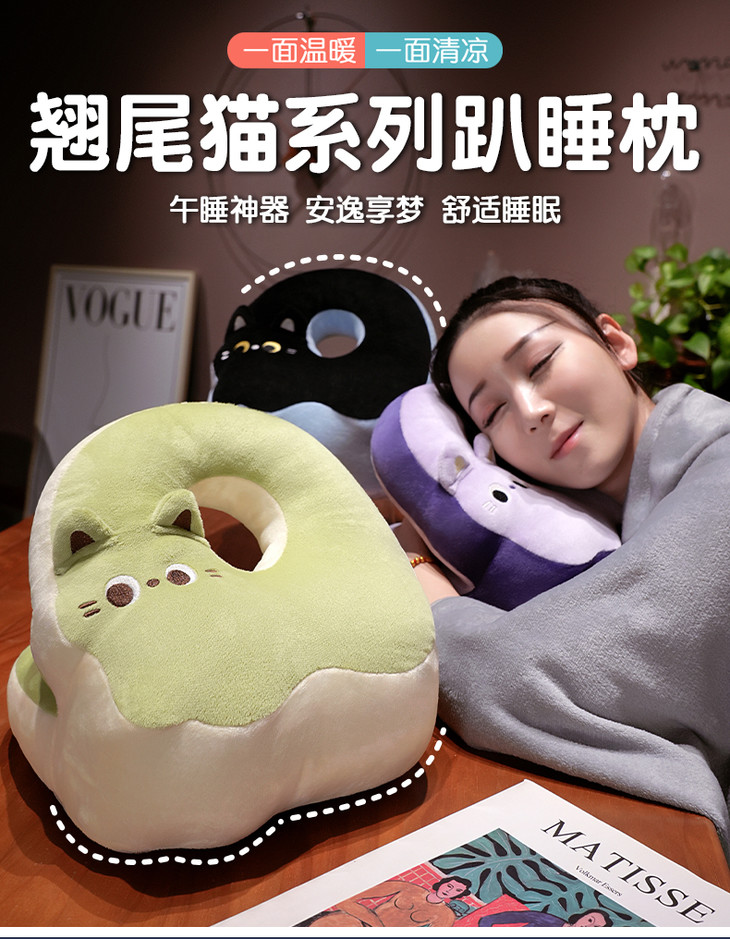 自然醒翘尾猫冰丝豆豆双面午睡枕学生桌上趴趴枕儿童抱枕办公室大人午休神器QYL