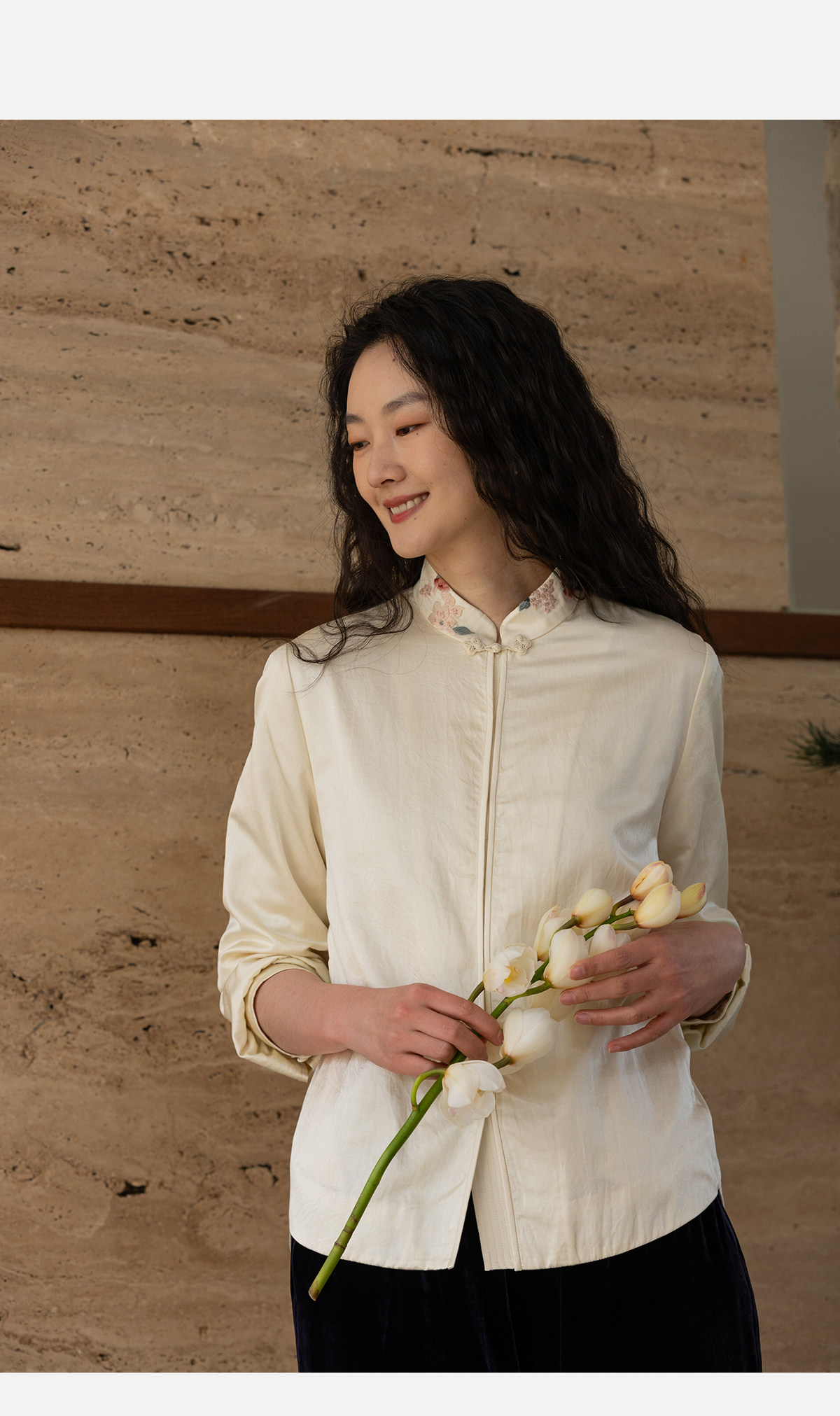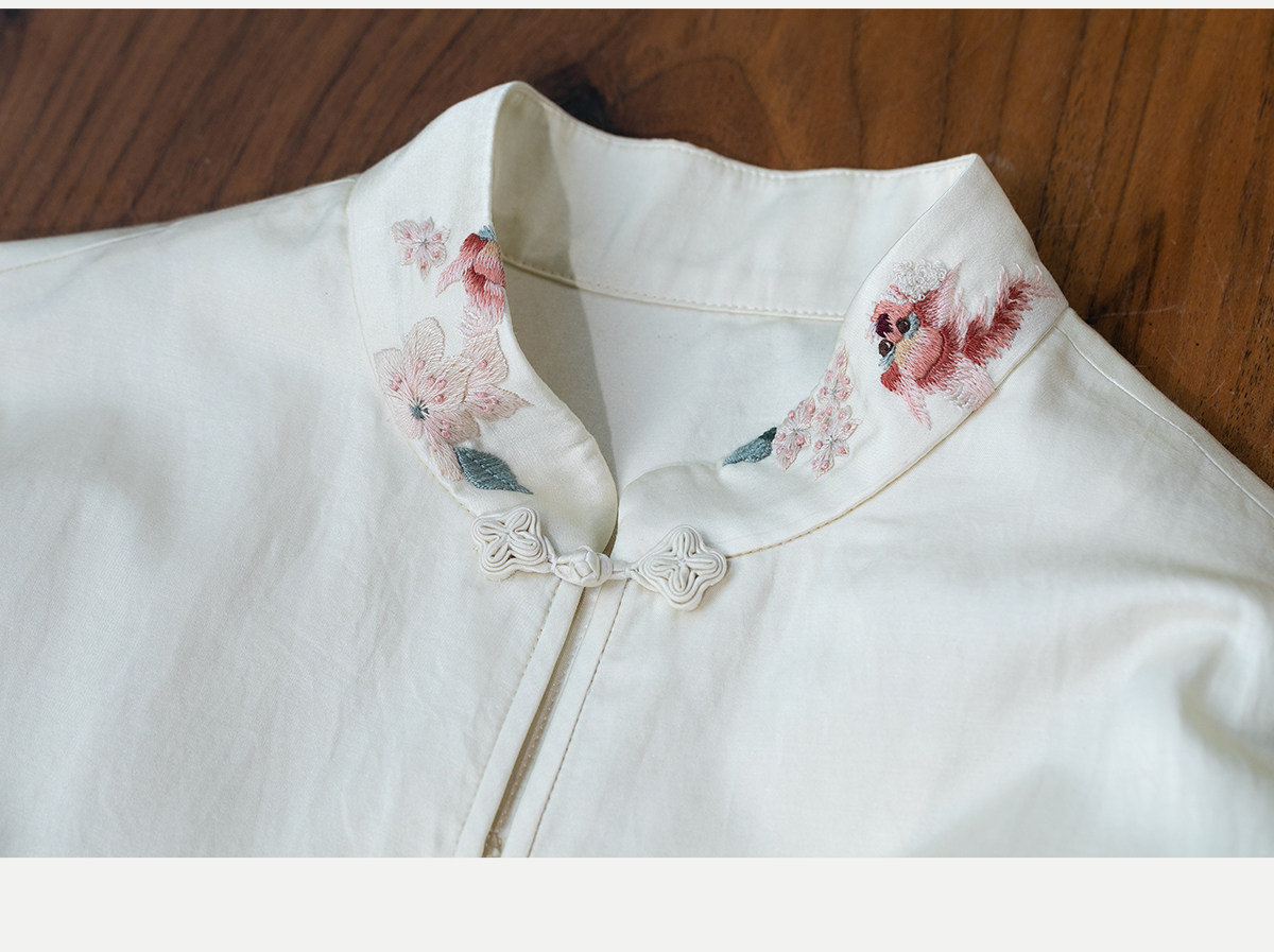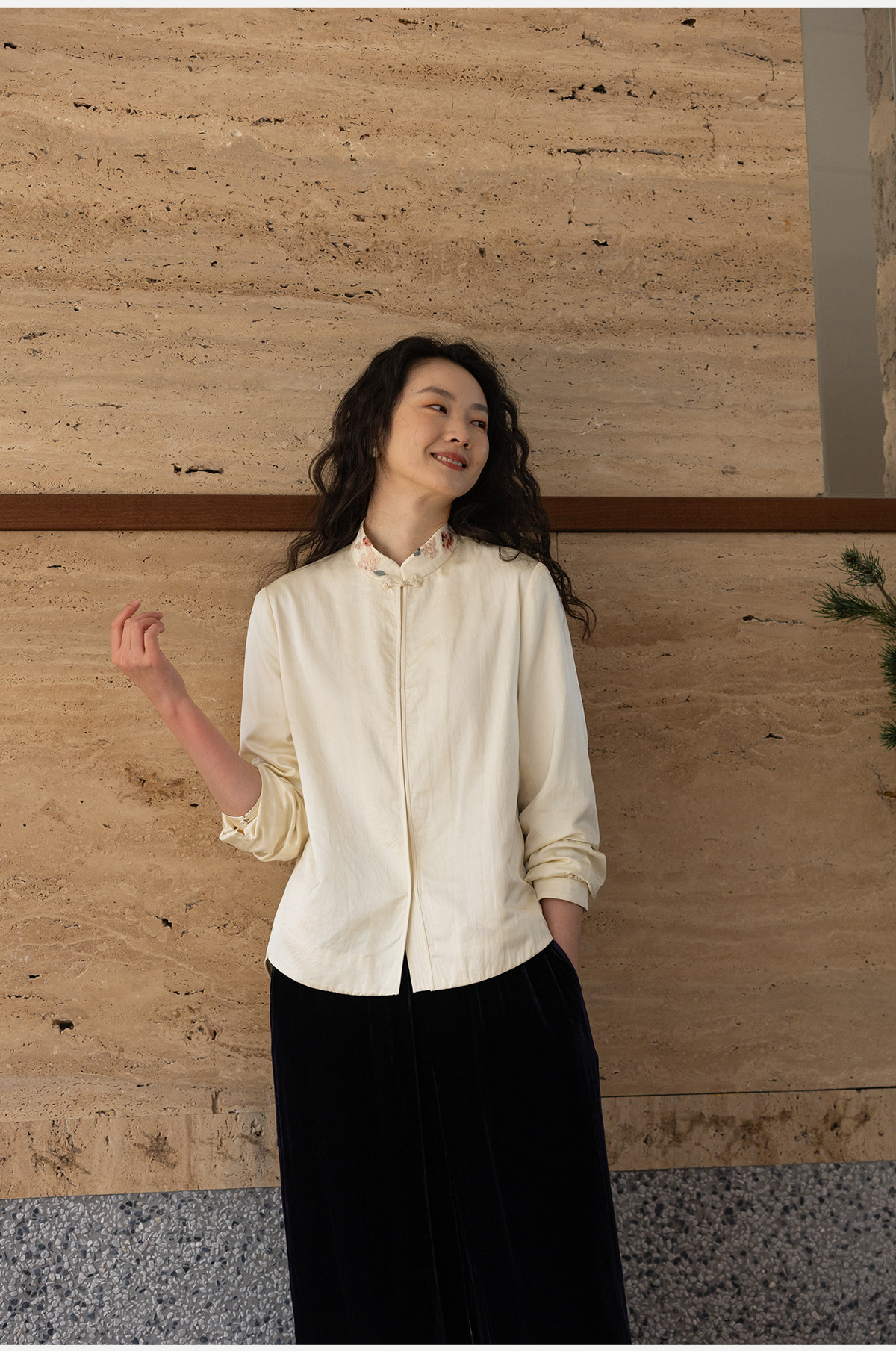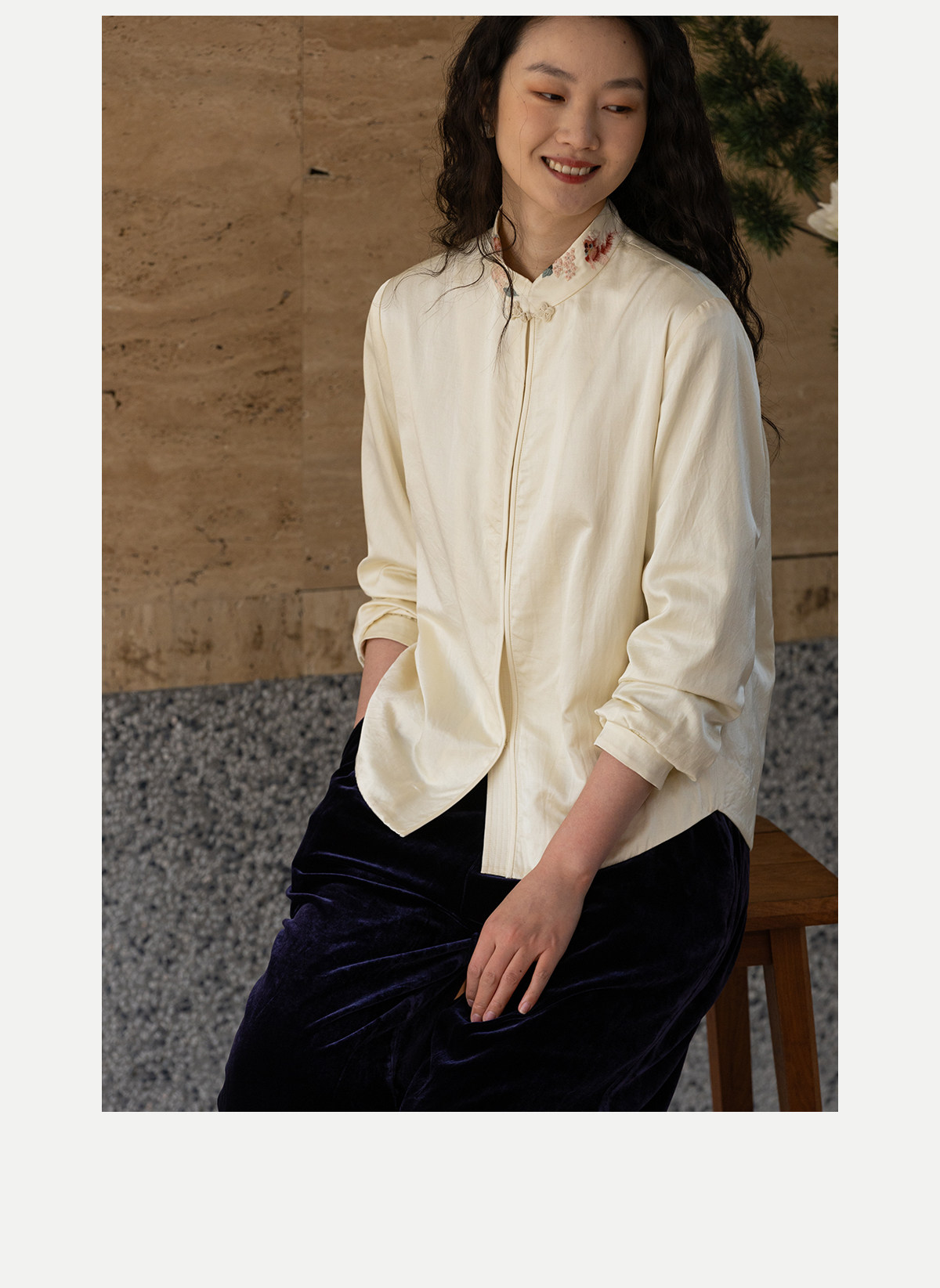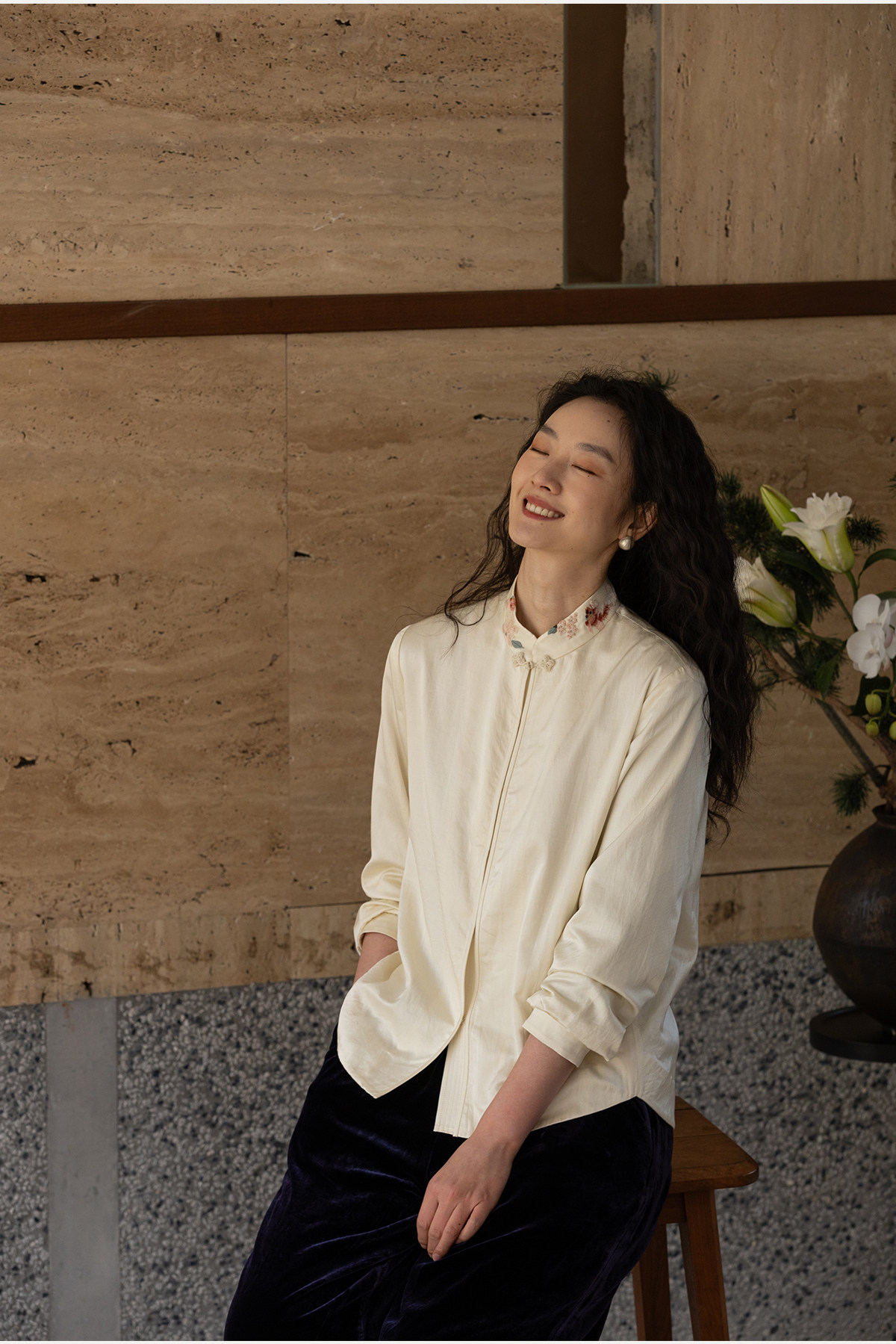 牧衣游原创 19姆米丝棉手工刺绣衬衫新款立领新中式上衣 明月歌