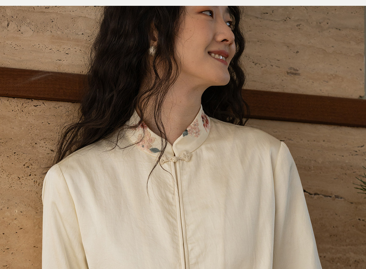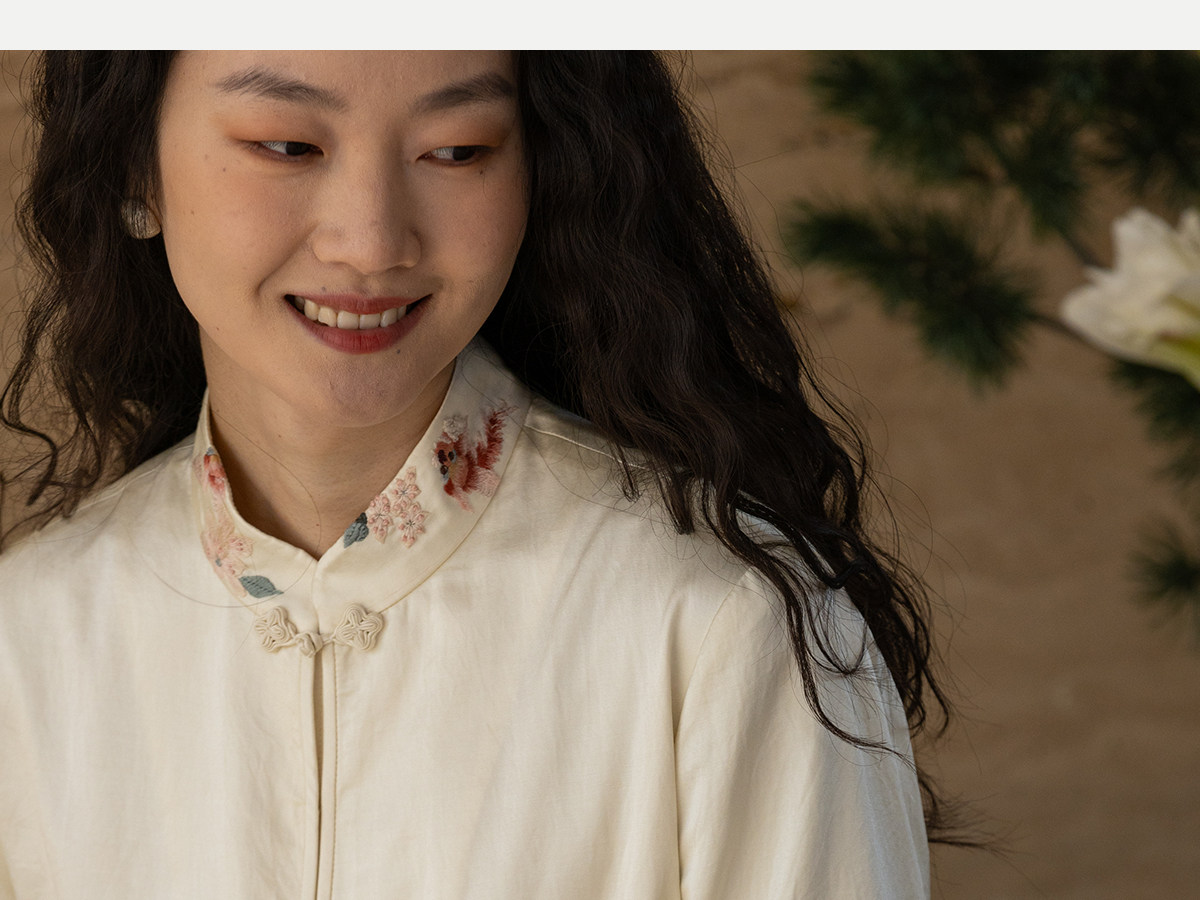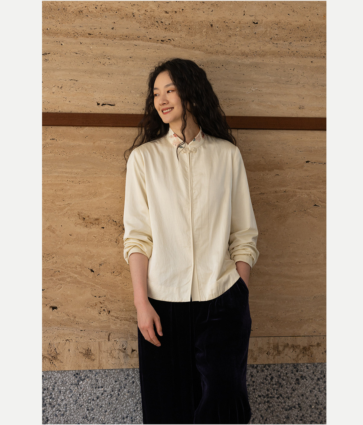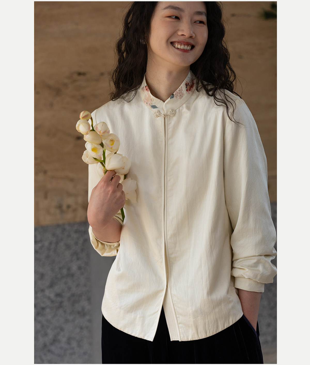 牧衣游原创 19姆米丝棉手工刺绣衬衫新款立领新中式上衣 明月歌