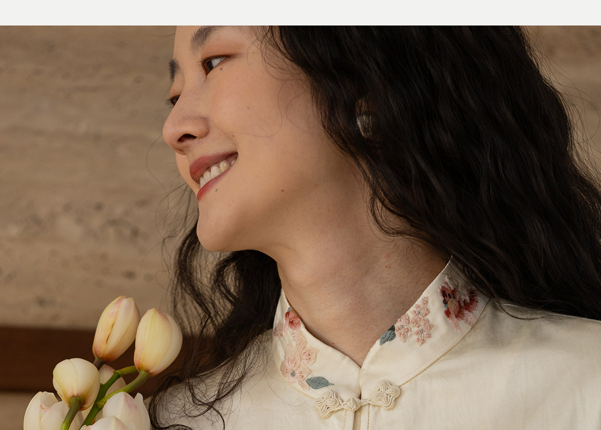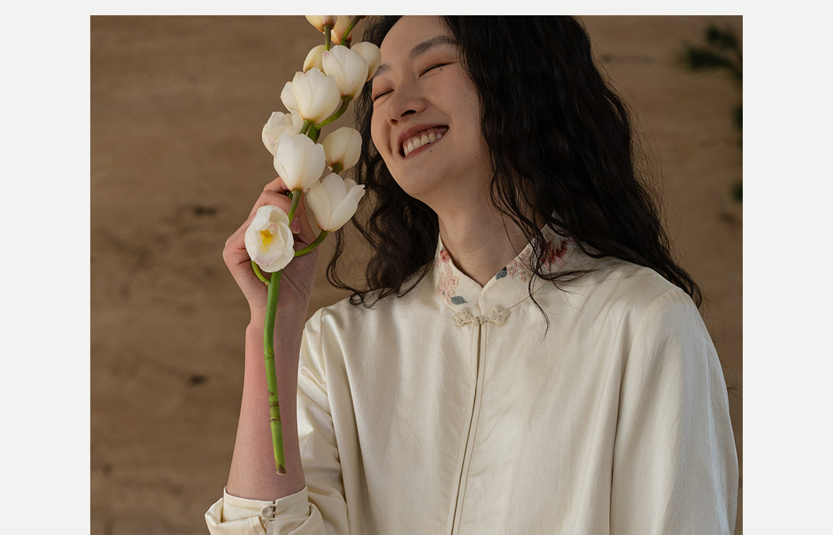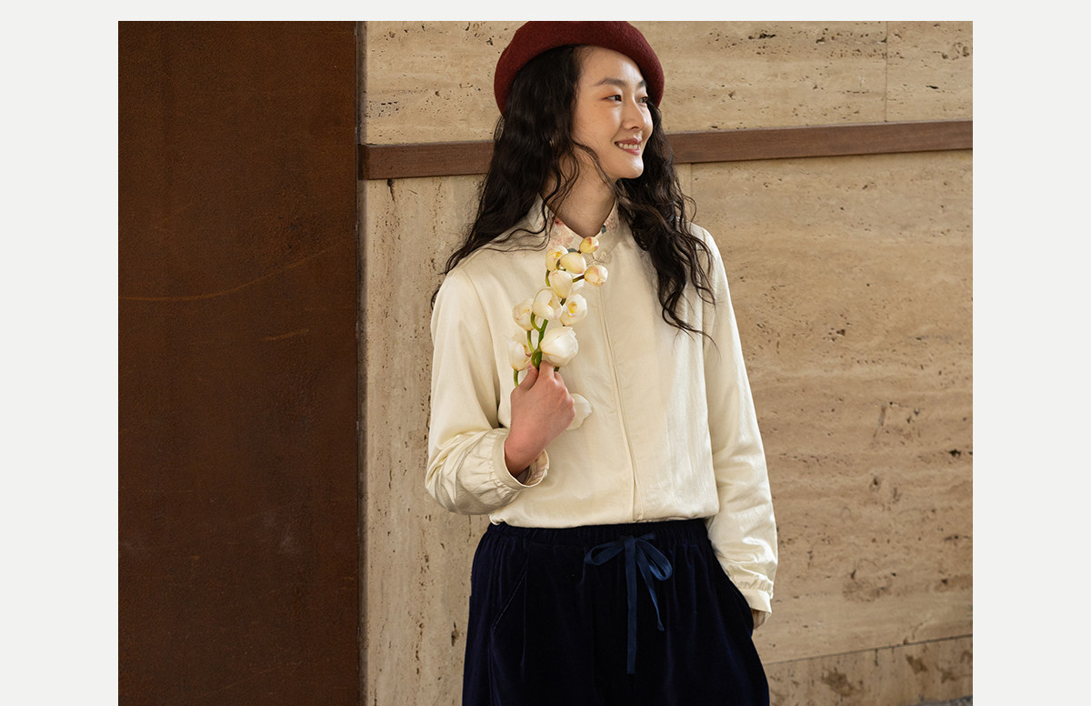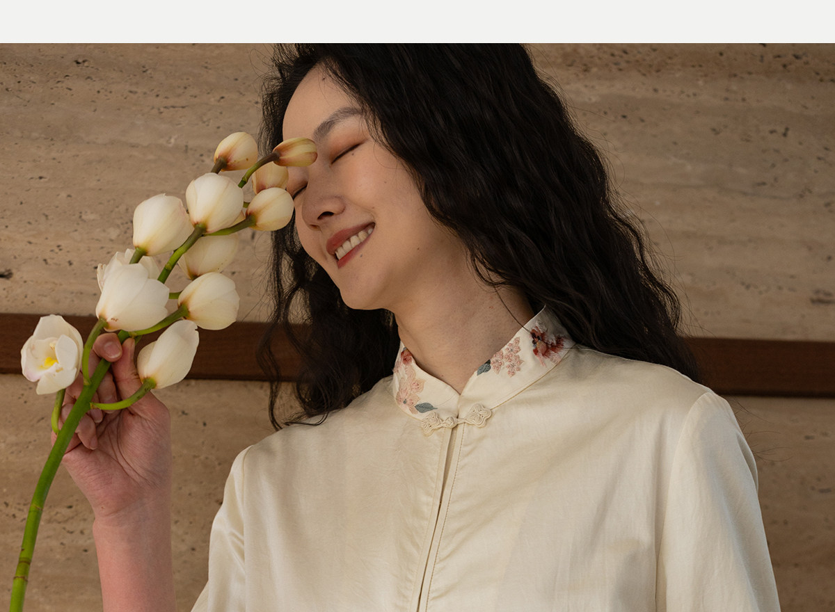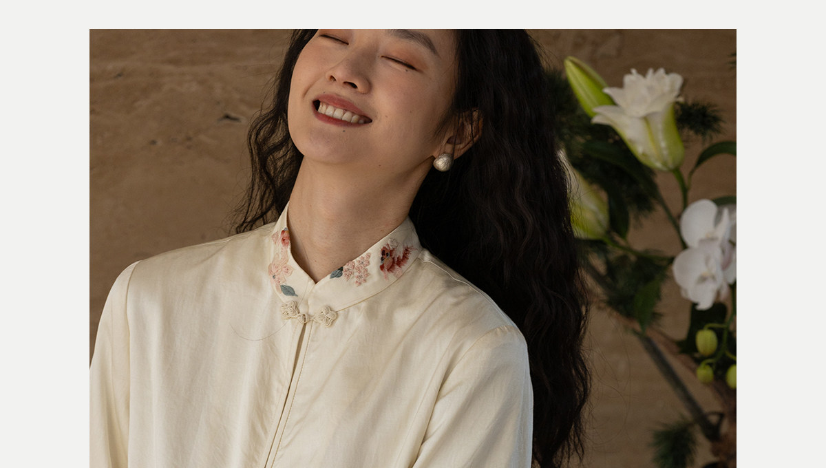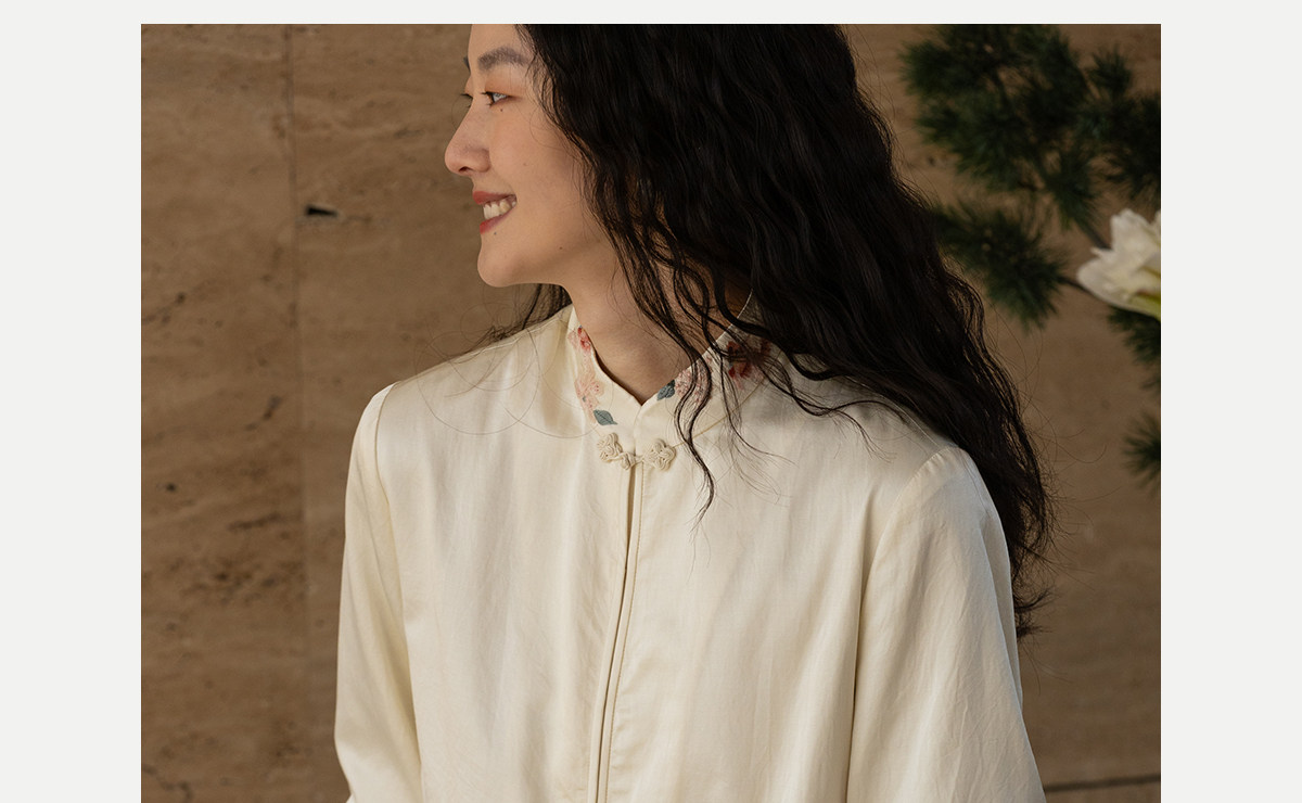 牧衣游原创 19姆米丝棉手工刺绣衬衫新款立领新中式上衣 明月歌